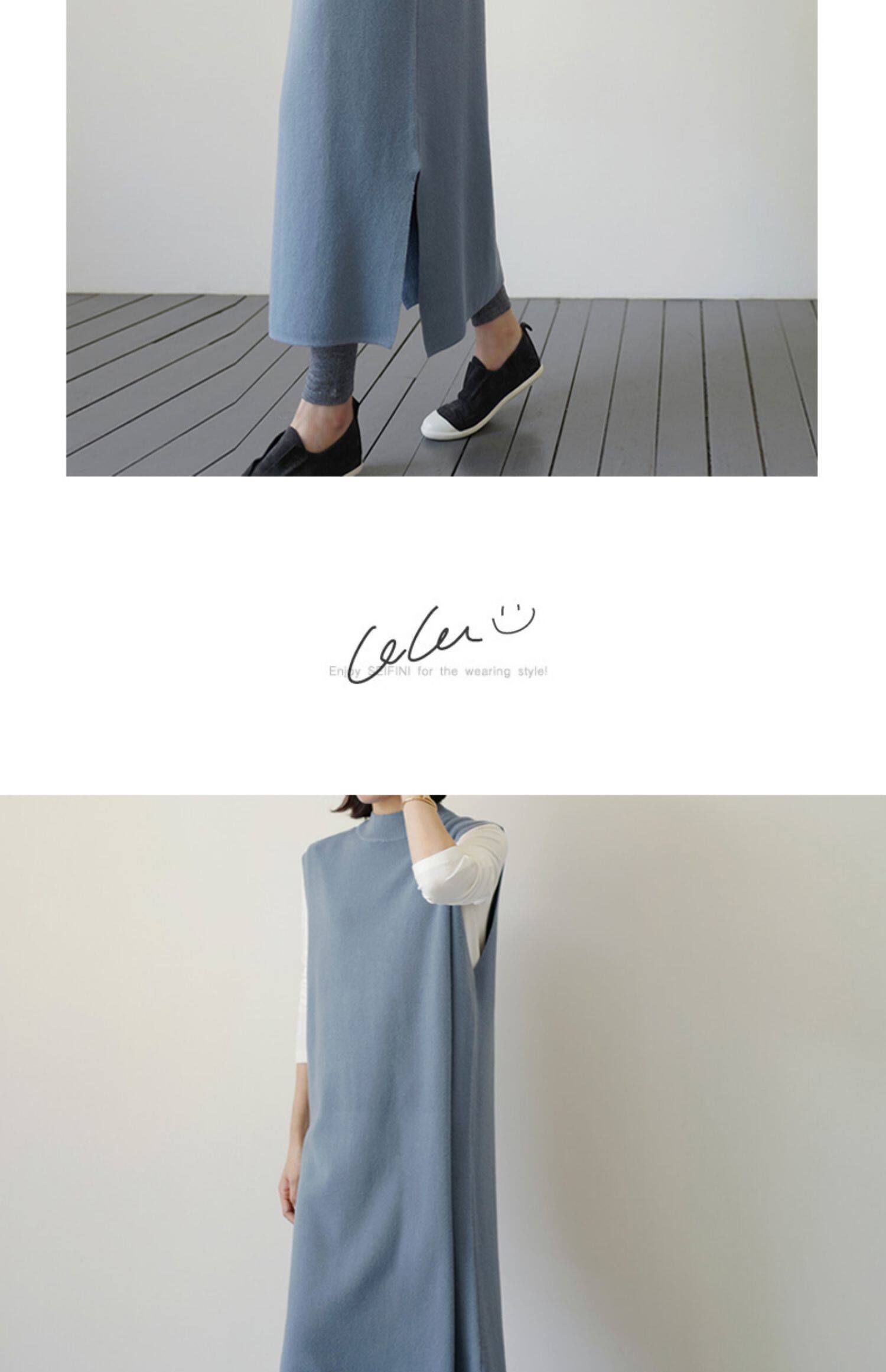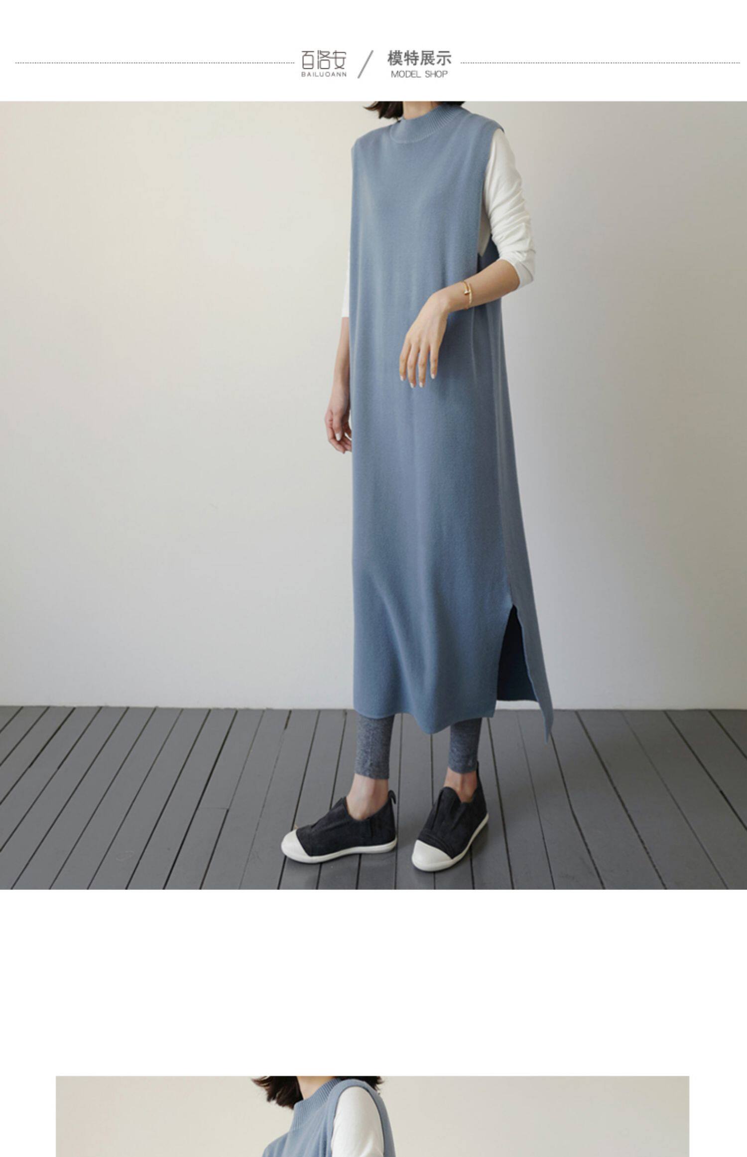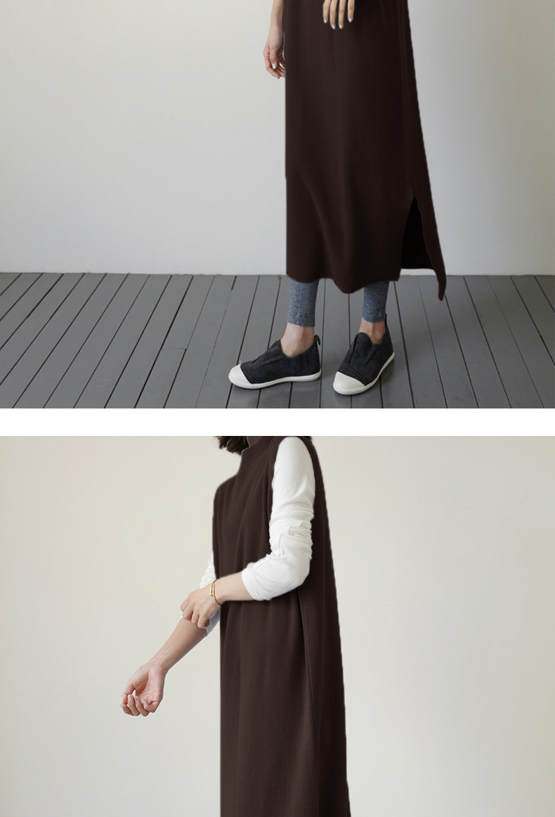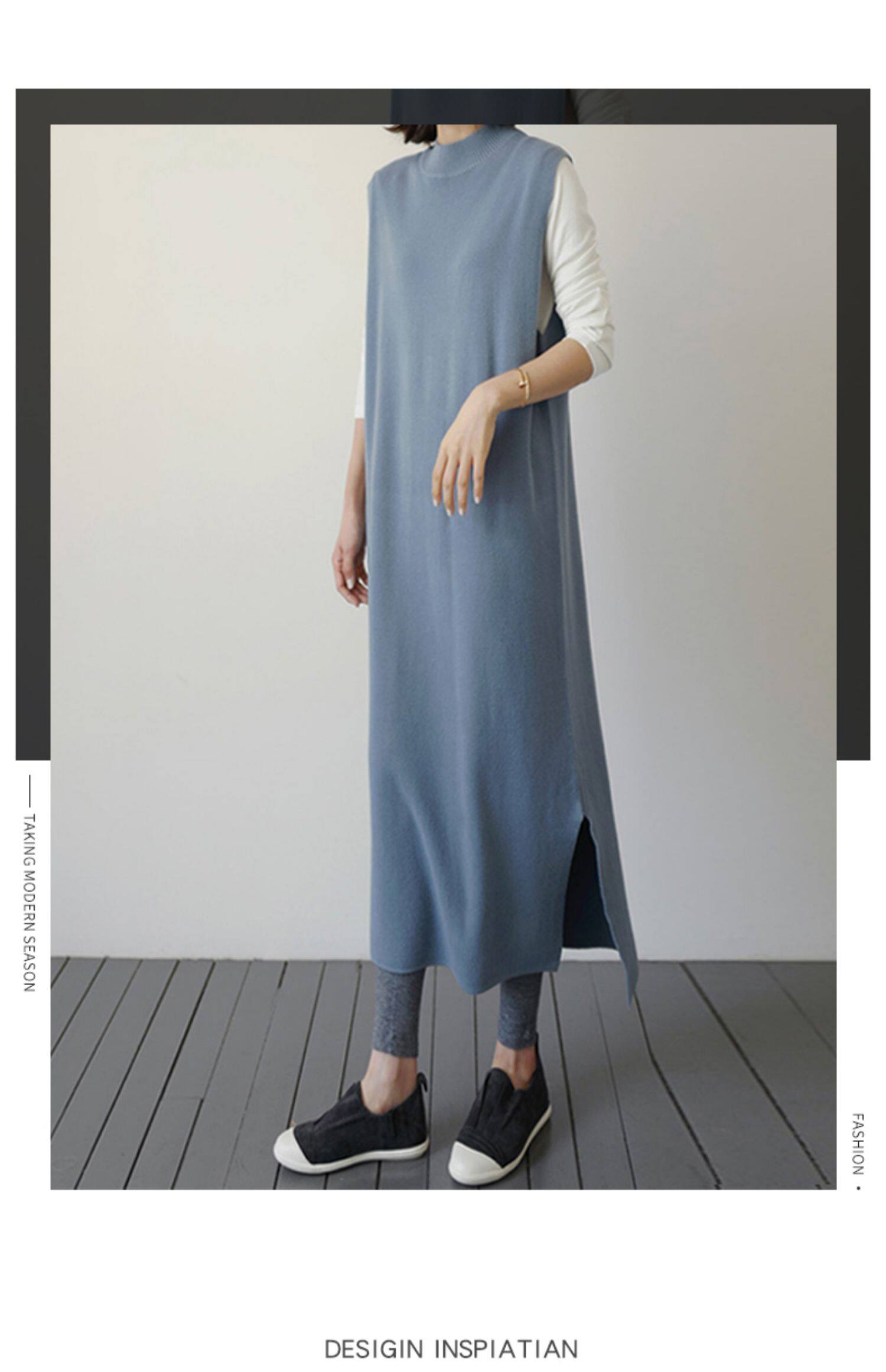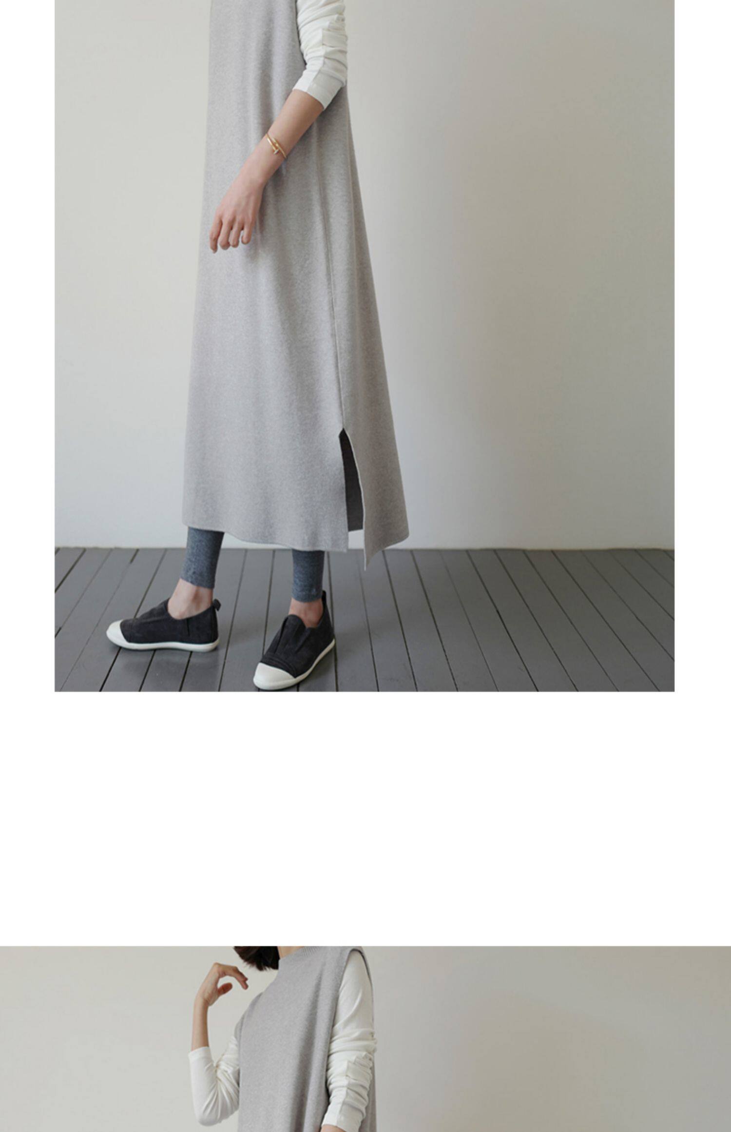 百洛安 Длинный трикотажный жилет, платье без рукавов, однотонная юбка, нарукавники с круглым воротником, свитер, длина макси, оверсайз
