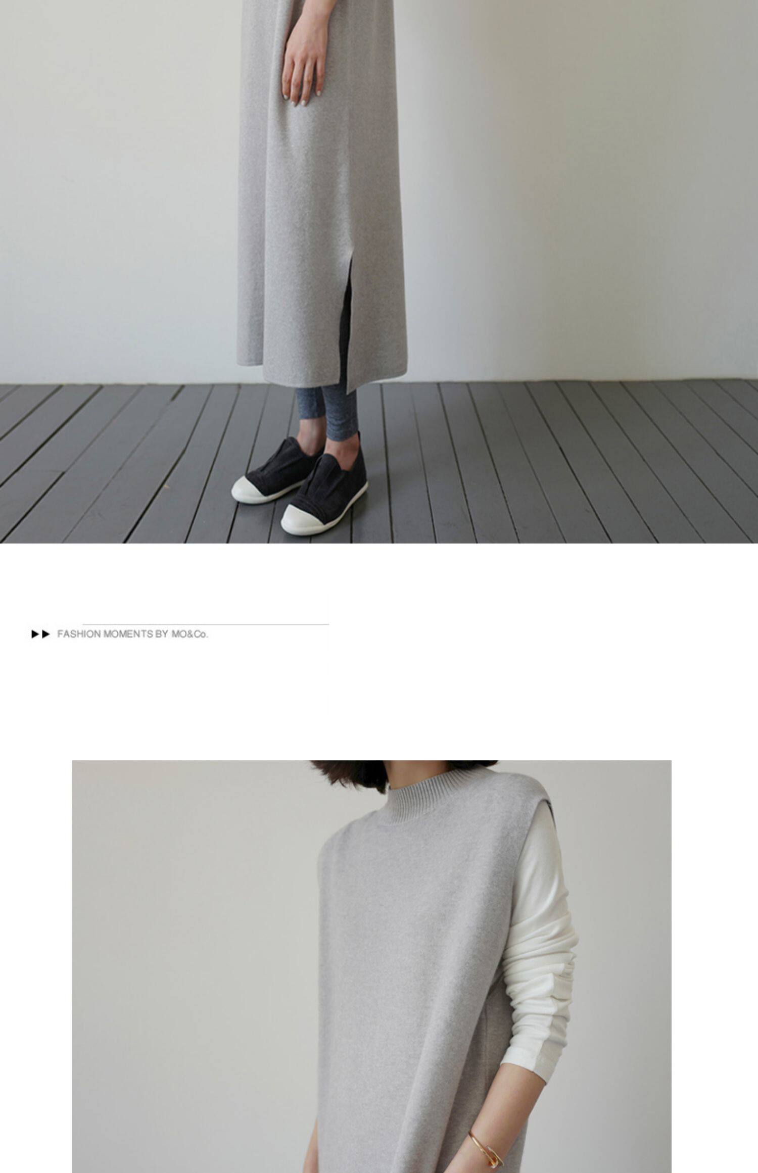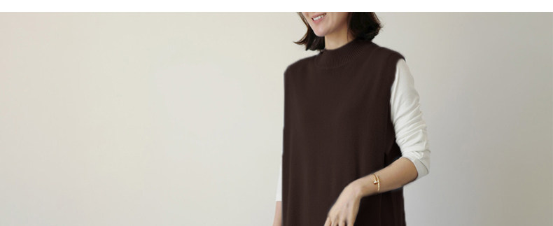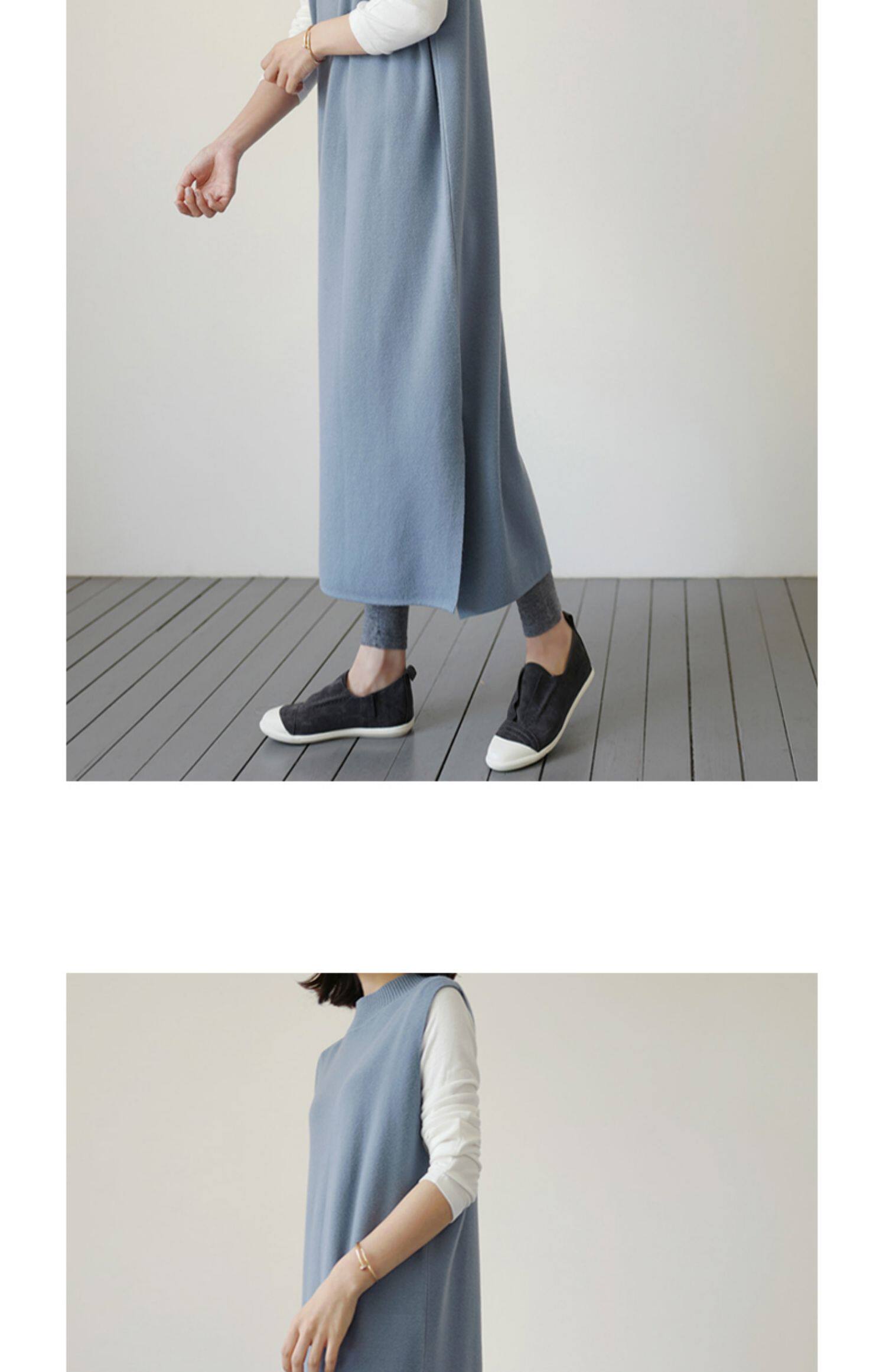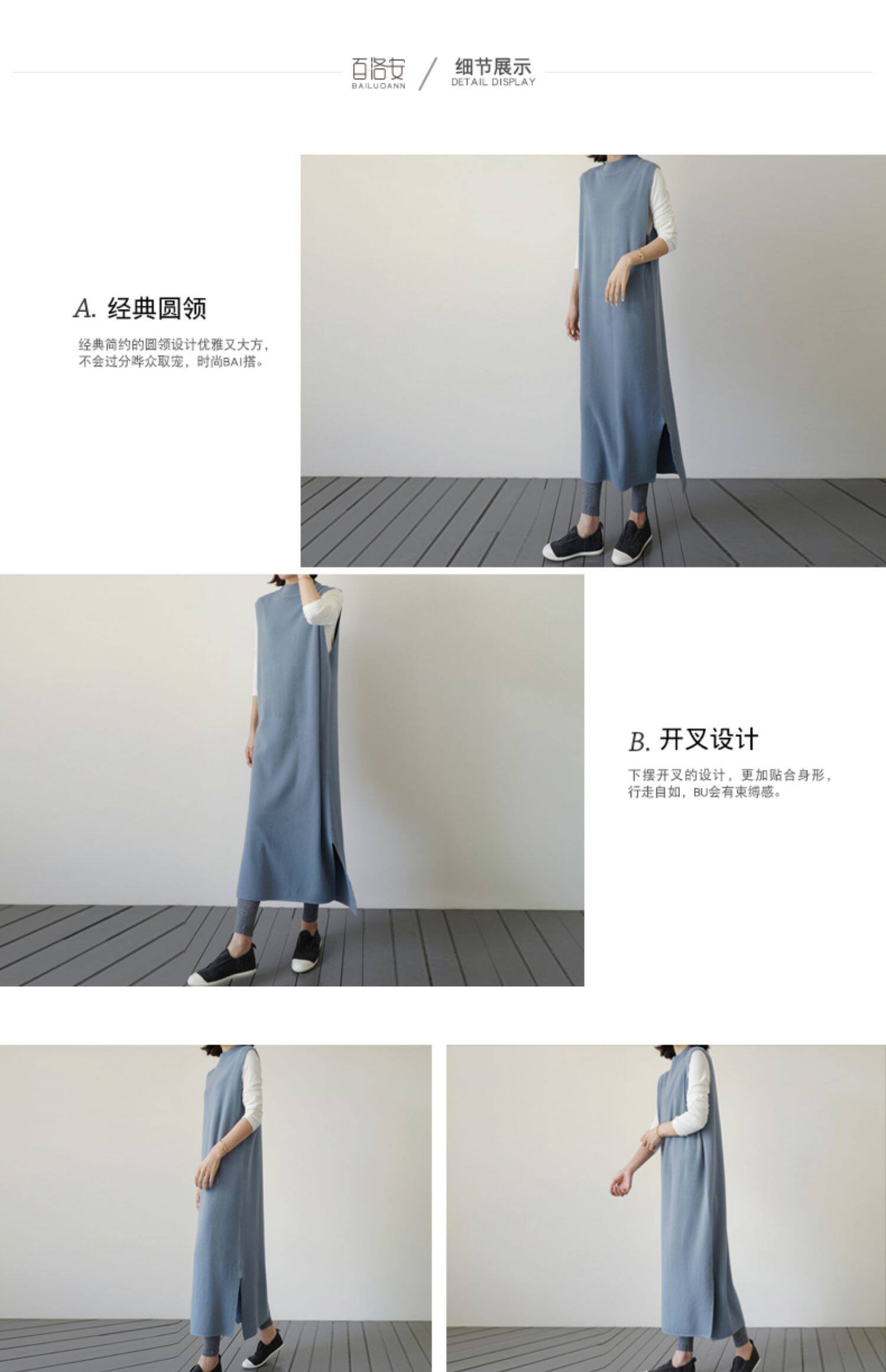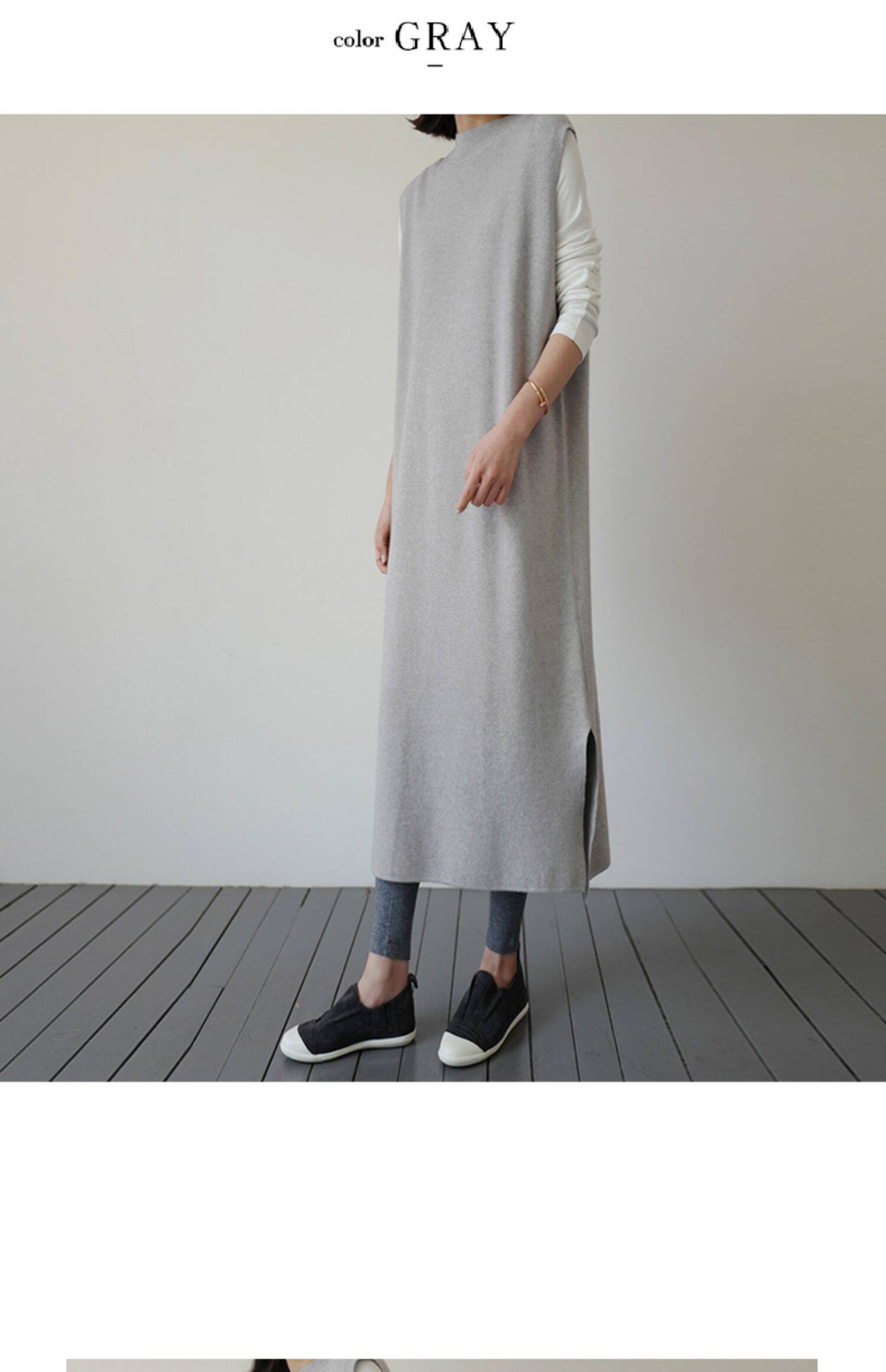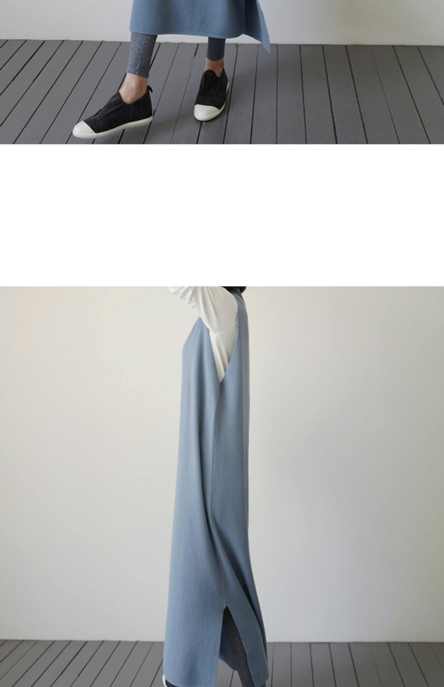 百洛安 Длинный трикотажный жилет, платье без рукавов, однотонная юбка, нарукавники с круглым воротником, свитер, длина макси, оверсайз