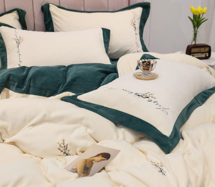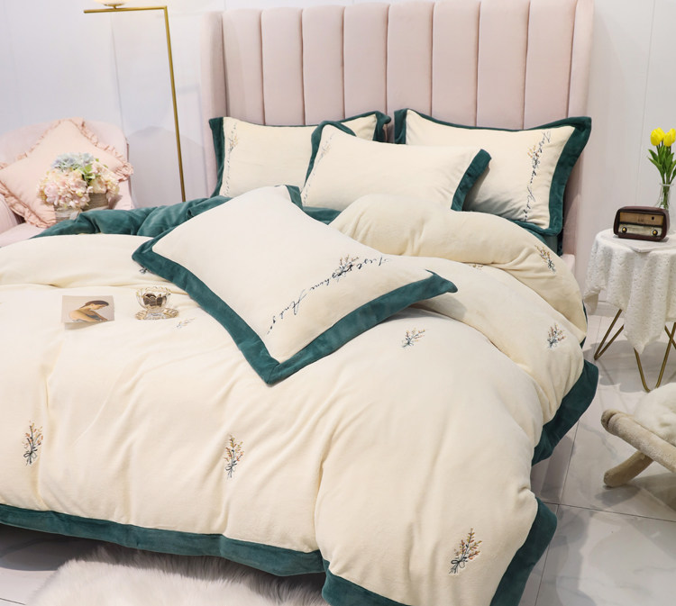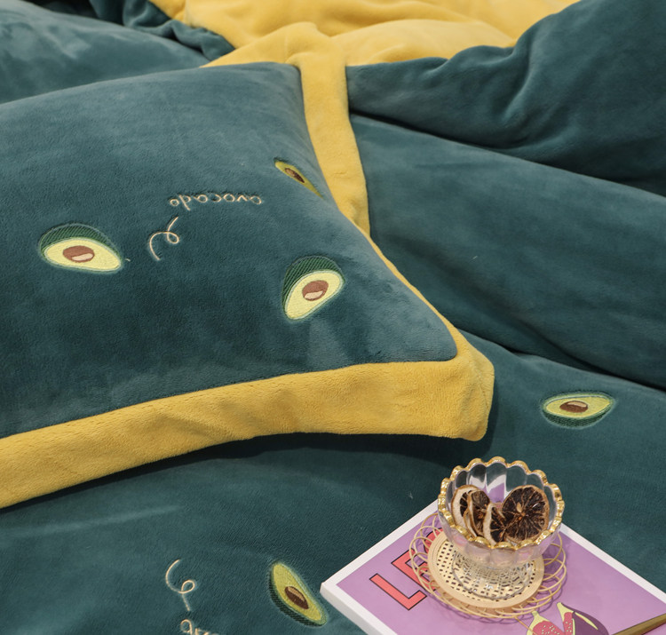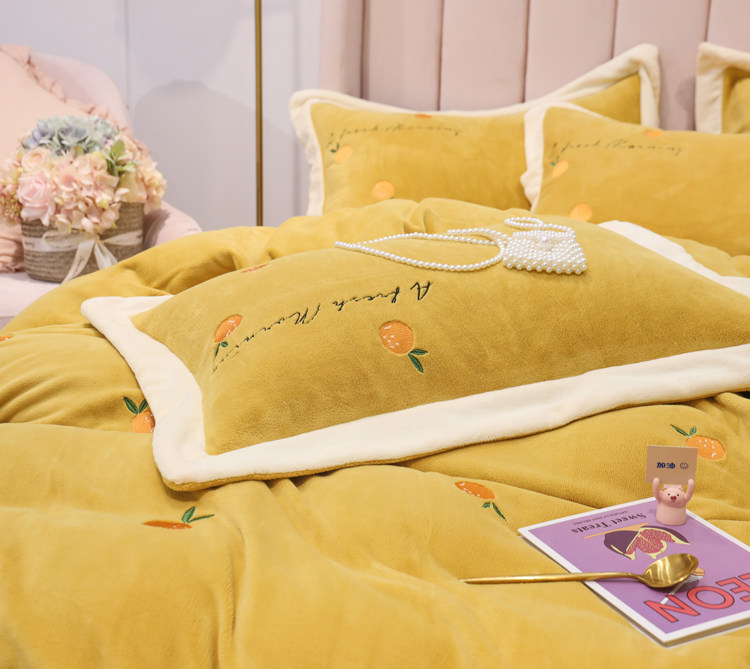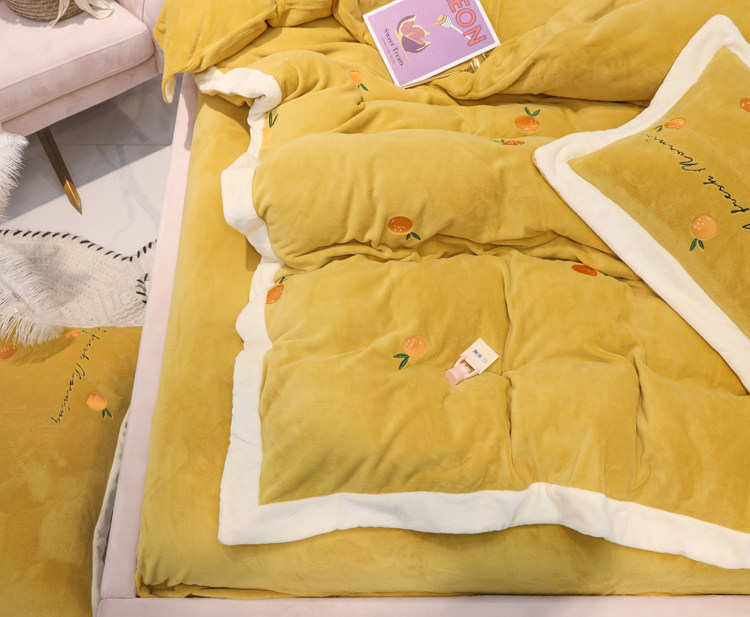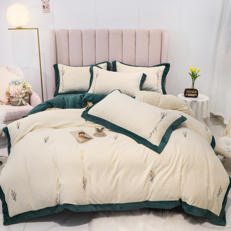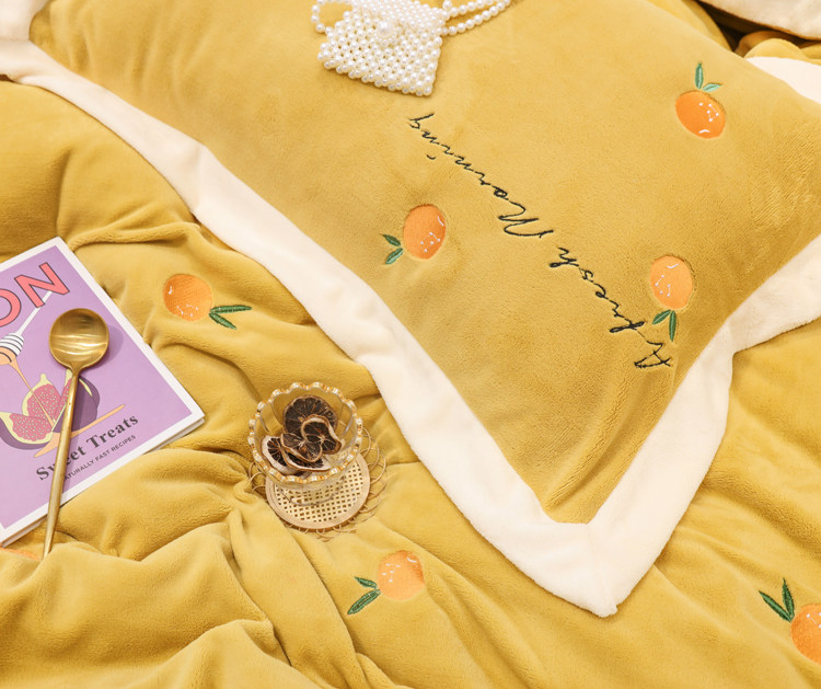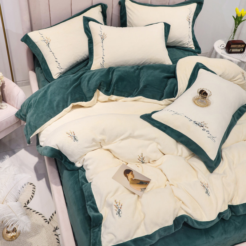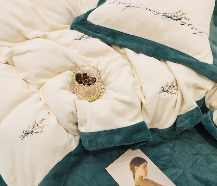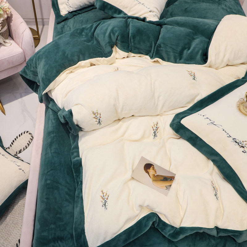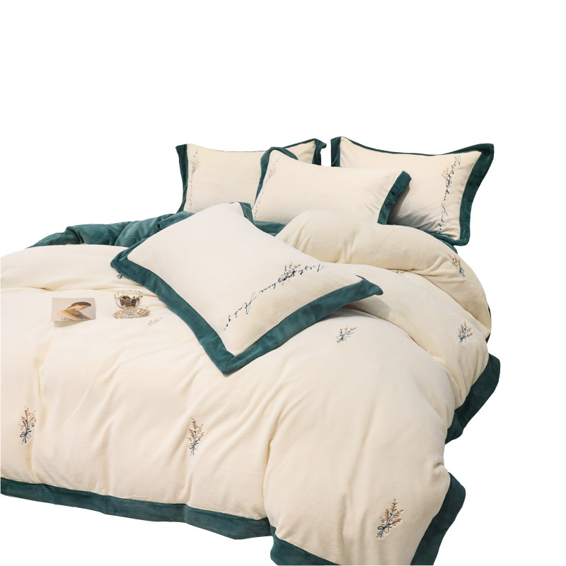 Свежий демисезонный комплект, двусторонний коралловый пододеяльник, фланелевое покрывало, с вышивкой, 4 предмета