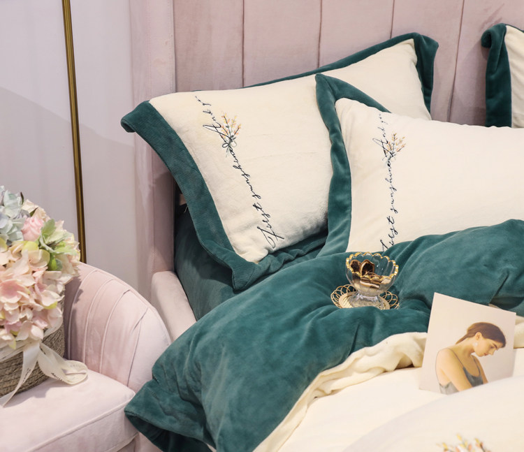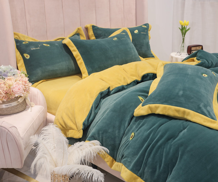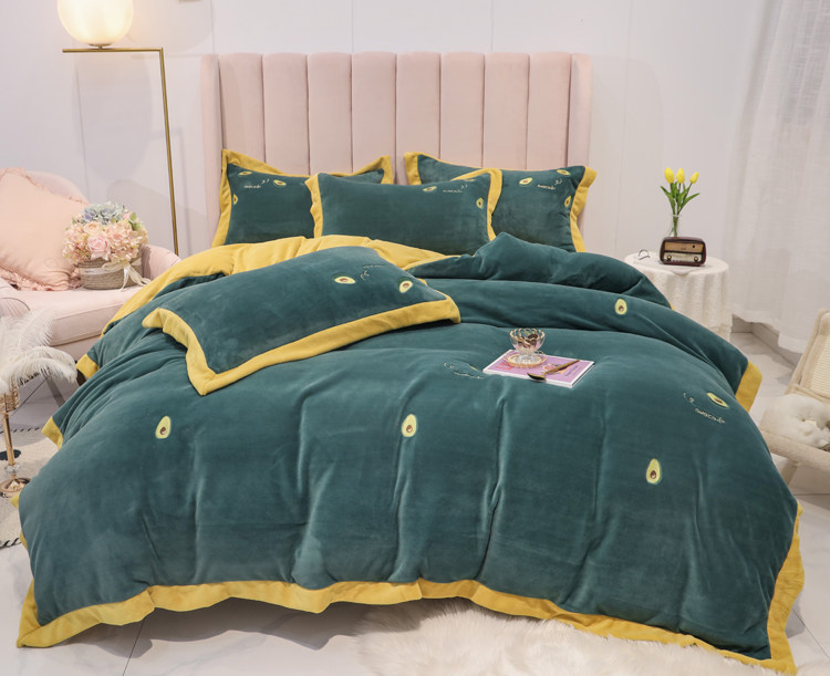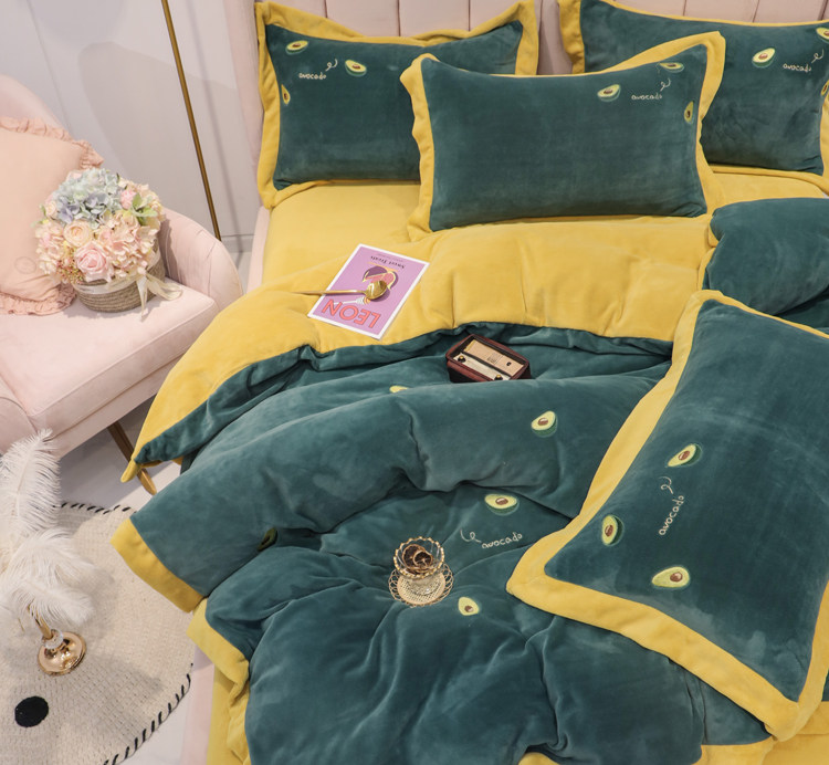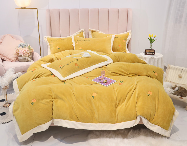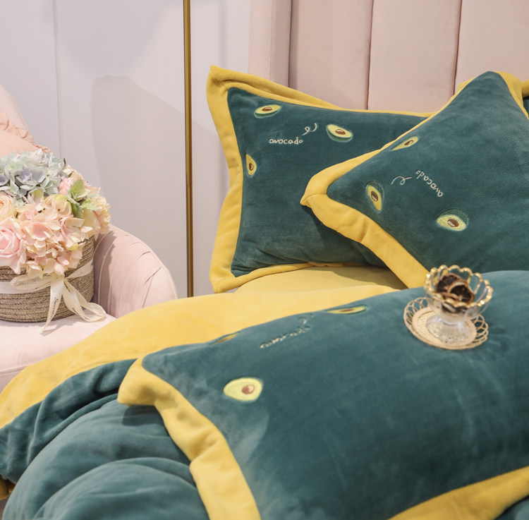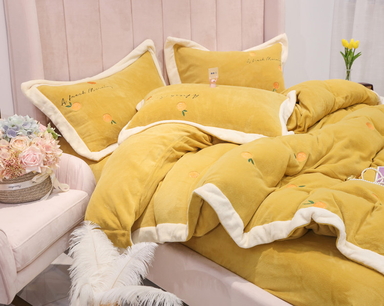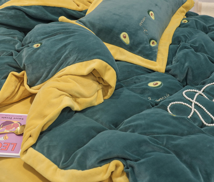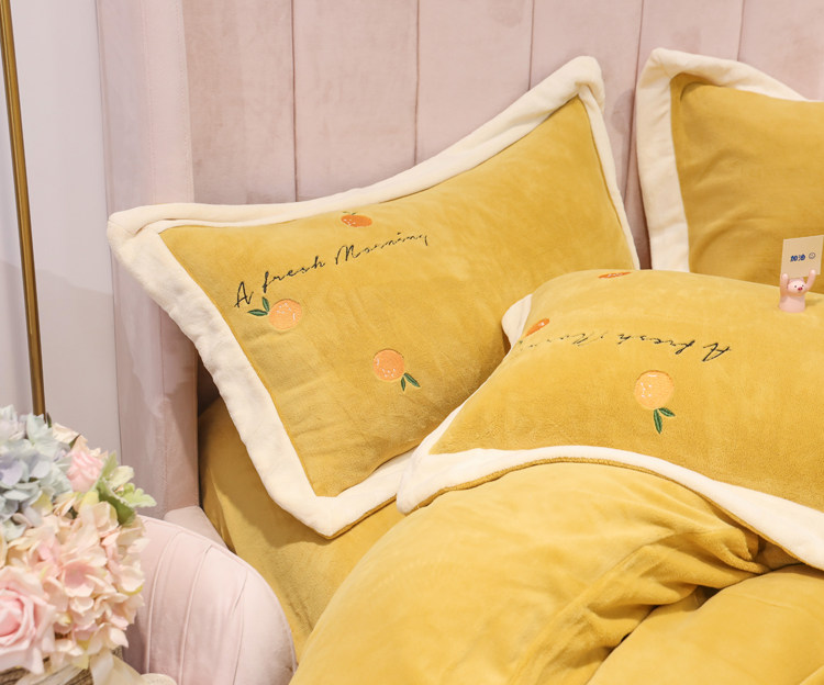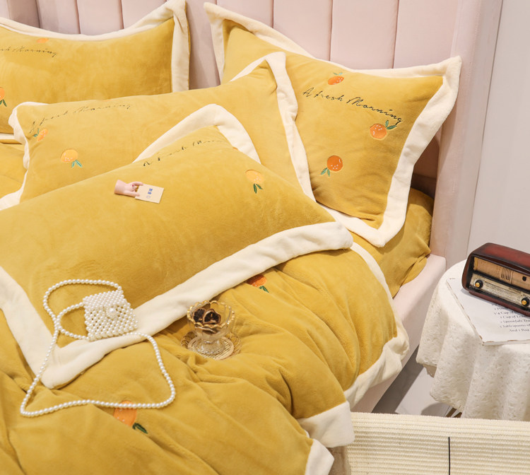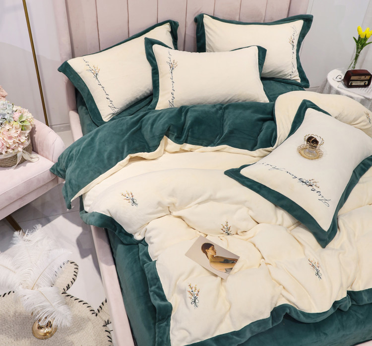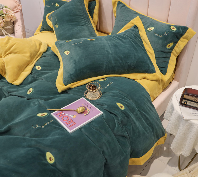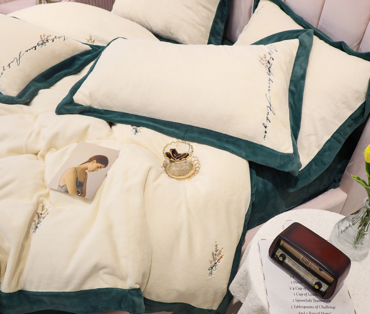 Свежий демисезонный комплект, двусторонний коралловый пододеяльник, фланелевое покрывало, с вышивкой, 4 предмета