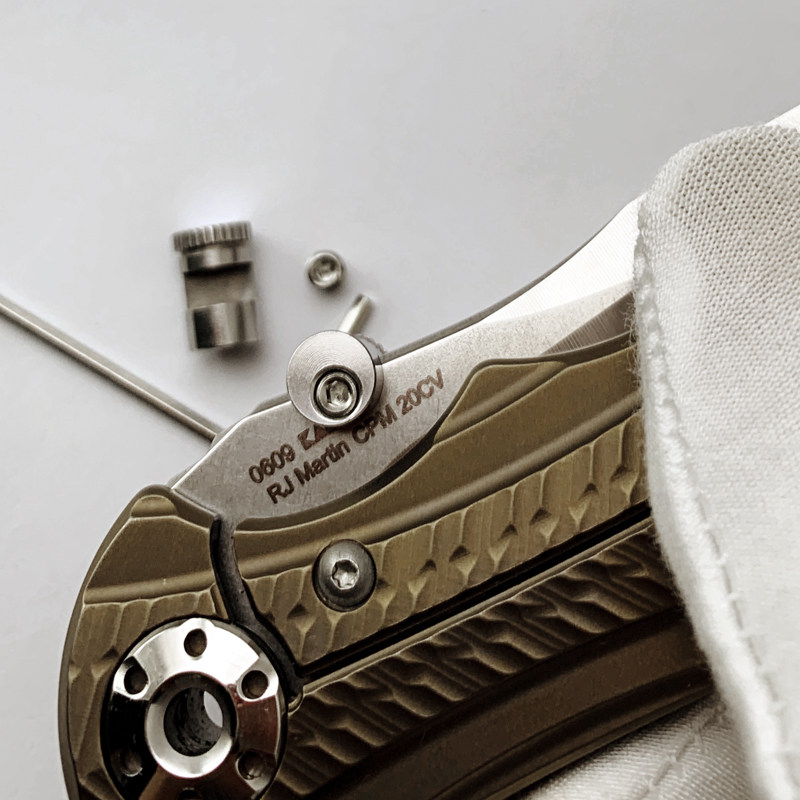 Изготовлен из латуни с ЧПУ и используется с шестигранным ключом и винтами, вы можете легко установить его и получить удовольствие от закрытия нажимного ножа.
