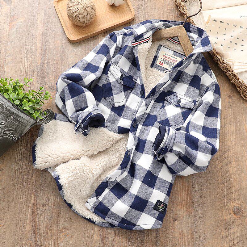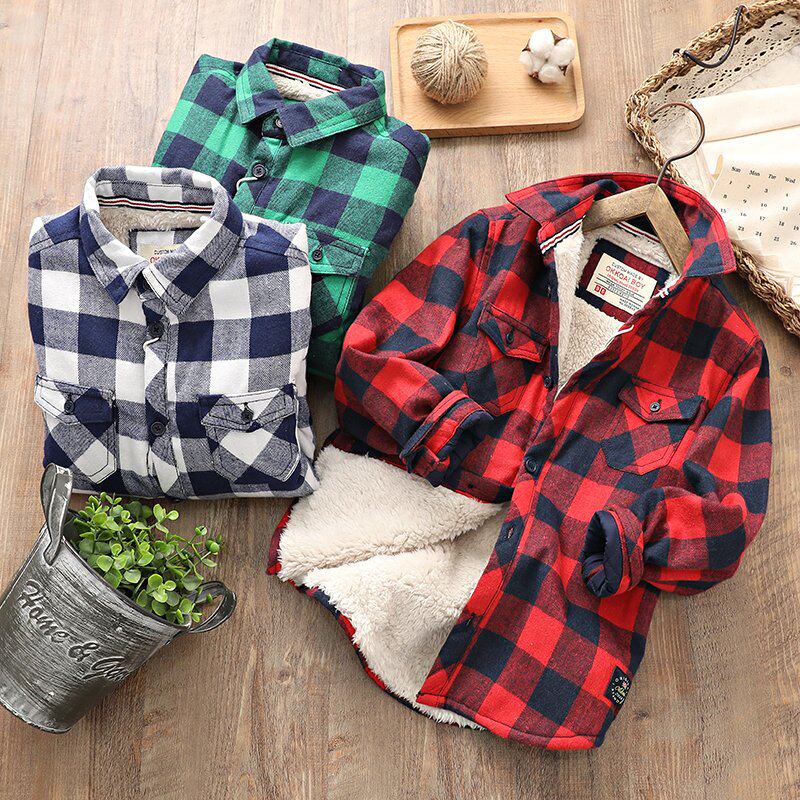 Зимняя бархатная хлопковая куртка для мальчиков, удерживающая тепло рубашка, подходит для подростков