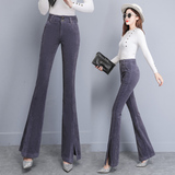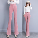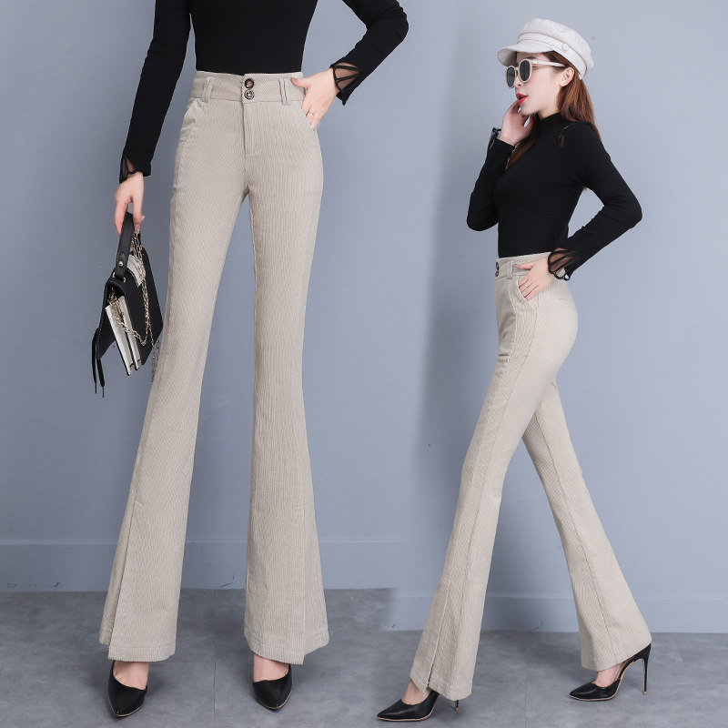 Вельветовые демисезонные штаны-клёш, приталенные леггинсы, бархатные штаны, высокая талия, свободный прямой крой