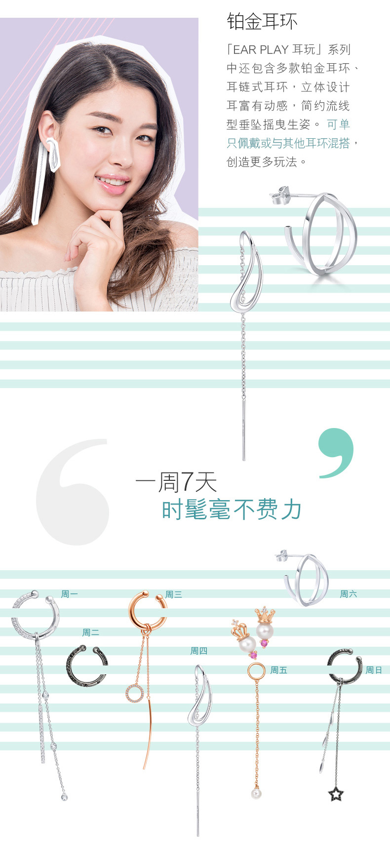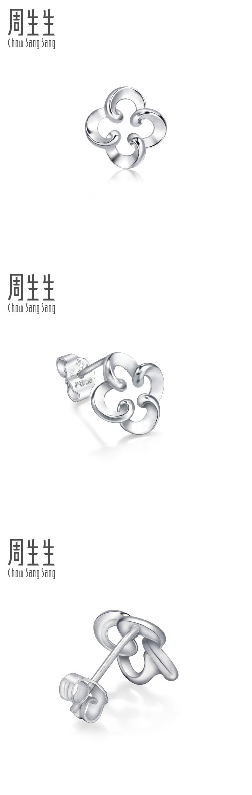 周生生 Платиновые серьги в форме цветка, платина 950 пробы