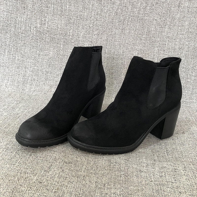 Европейские модные повседневные женские короткие сапоги без шнуровки на высоком каблуке, ботильоны, женские сапоги, женская обувь большого размера Q9711 Q4627