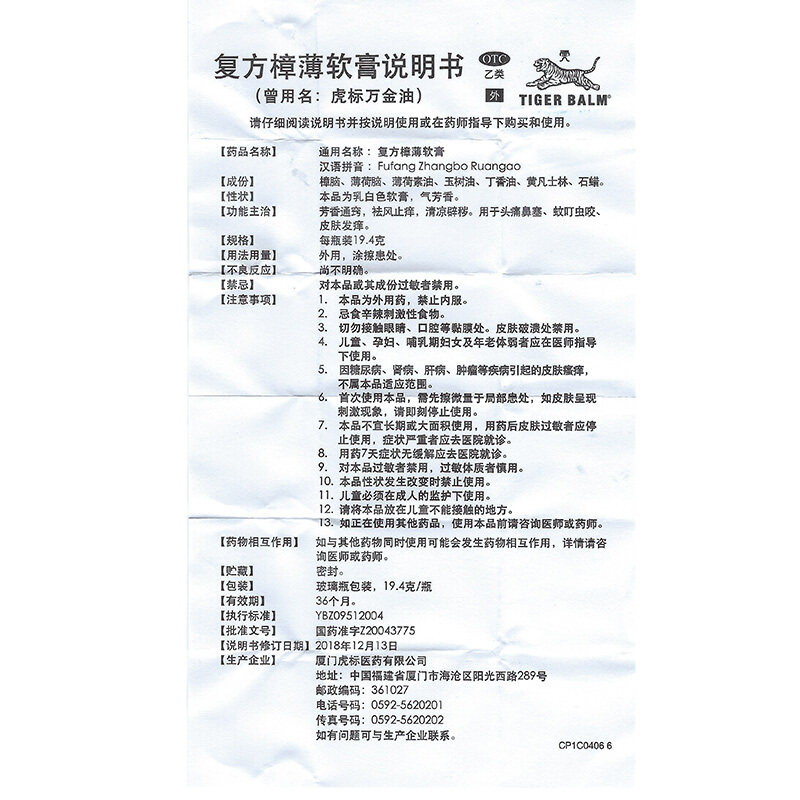 虎标 Fangfang sub -thin Мазь Wanjin Oil Tiger Tiger Tiger Гонконг составное масло -масля