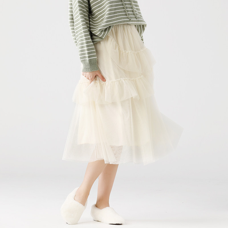 艾米恋 Шифоновая демисезонная длинная юбка, высокая талия, средней длины