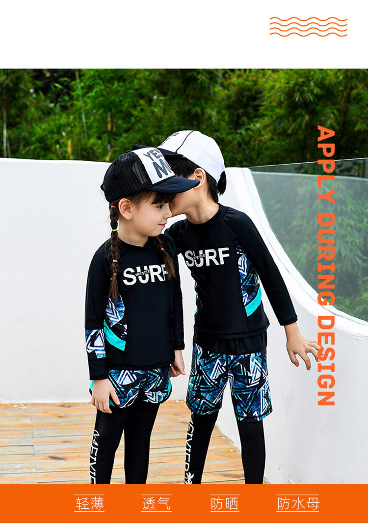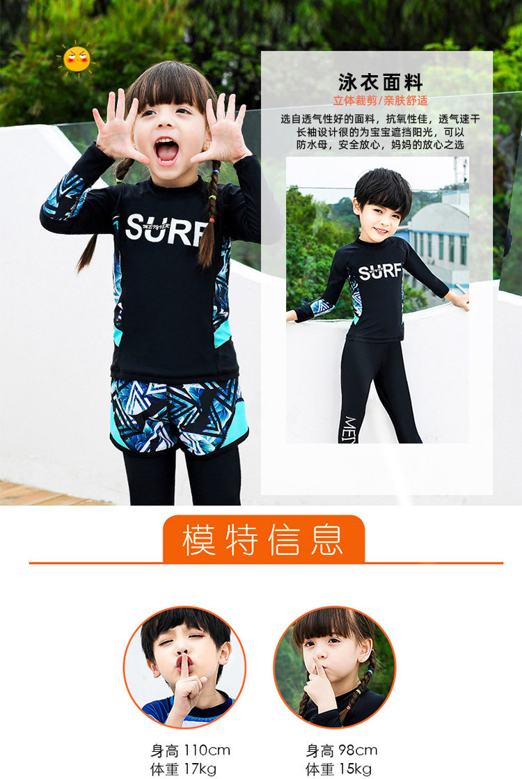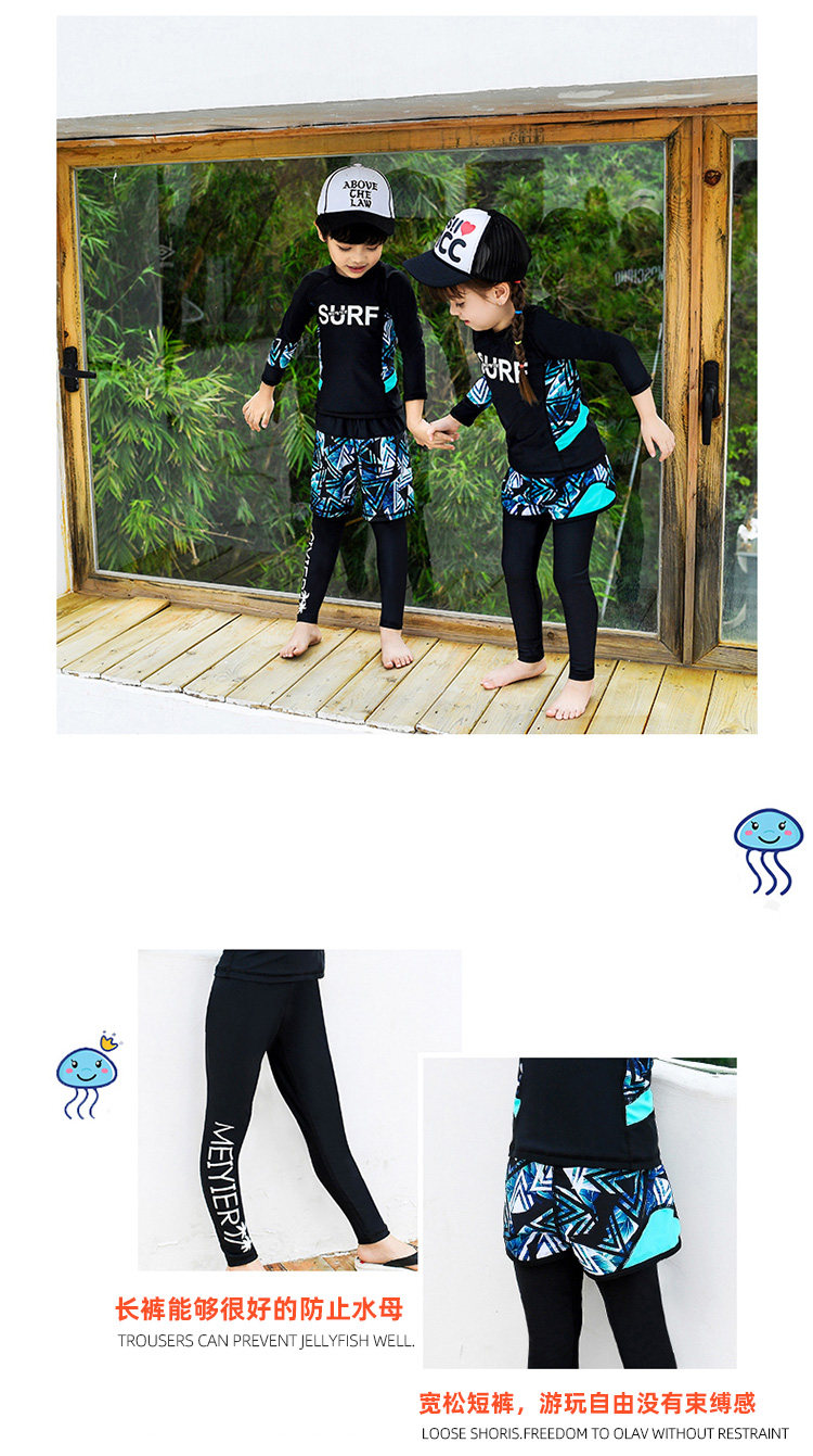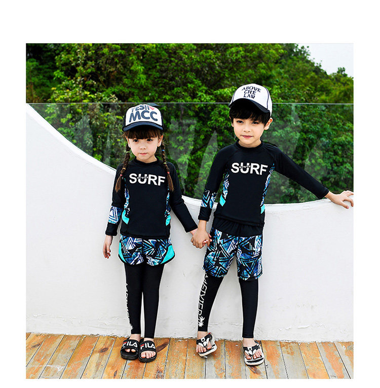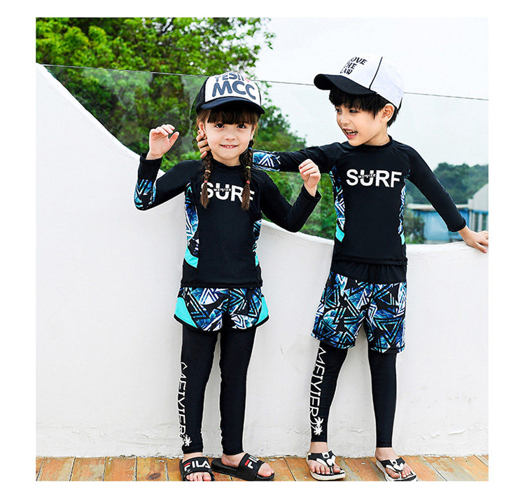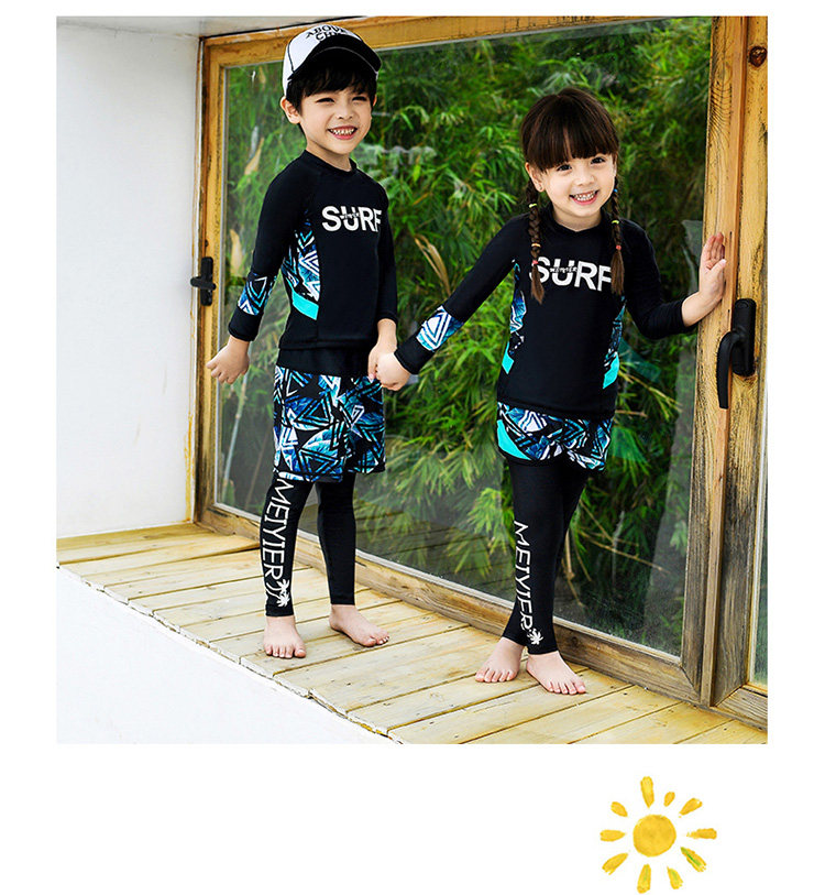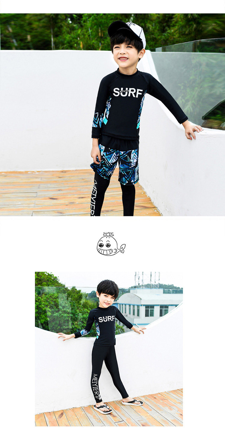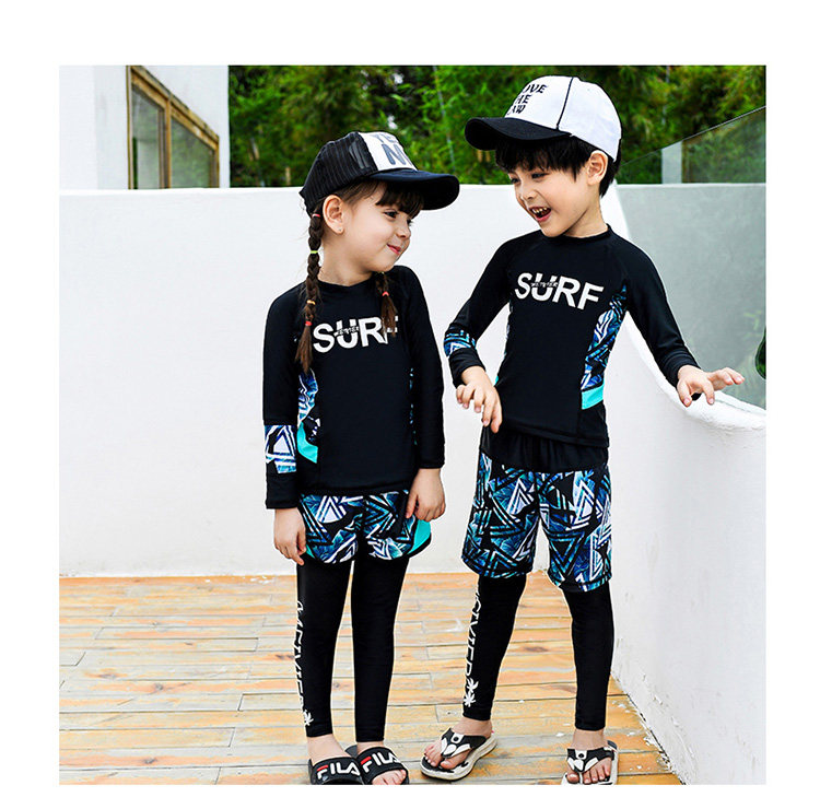 Детский купальник для мальчиков, водонепроницаемый комплект, раздельный лонгслив, штаны для школьников и студентов, 3 предмета, подходит для подростков
