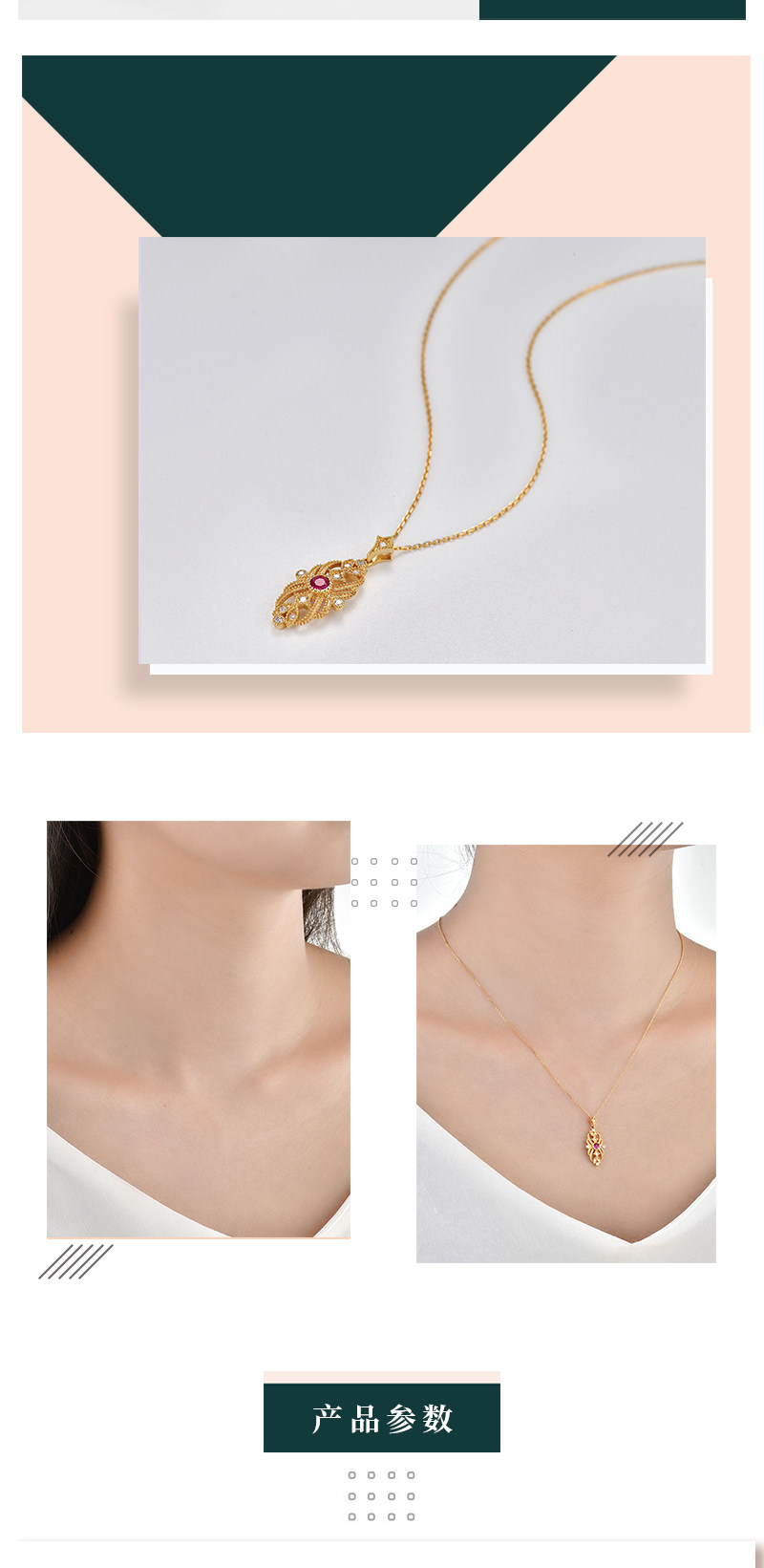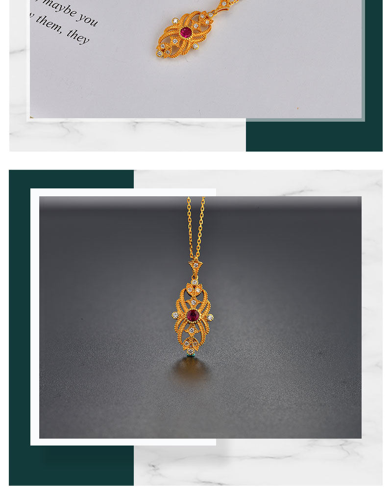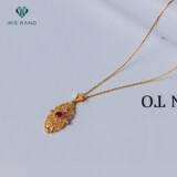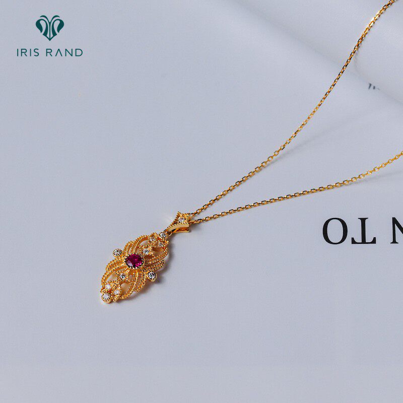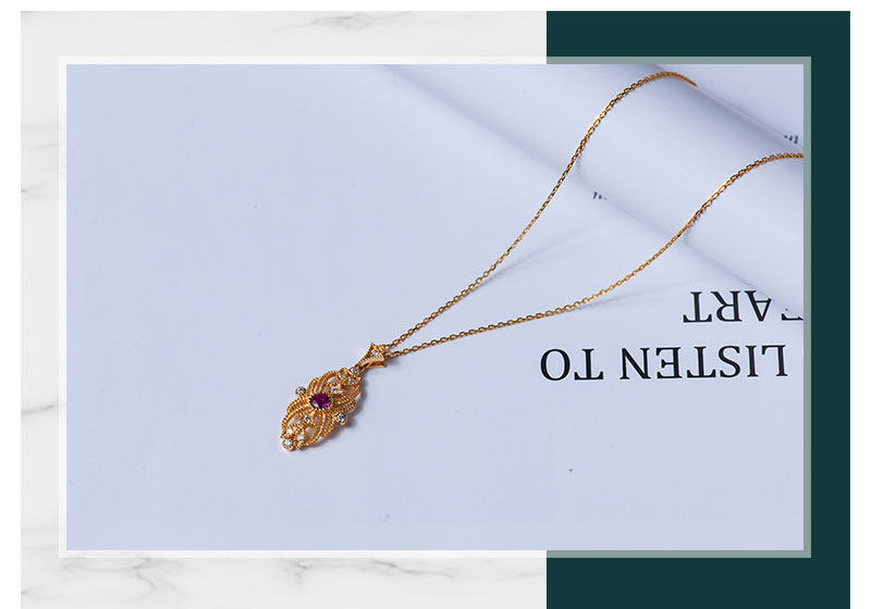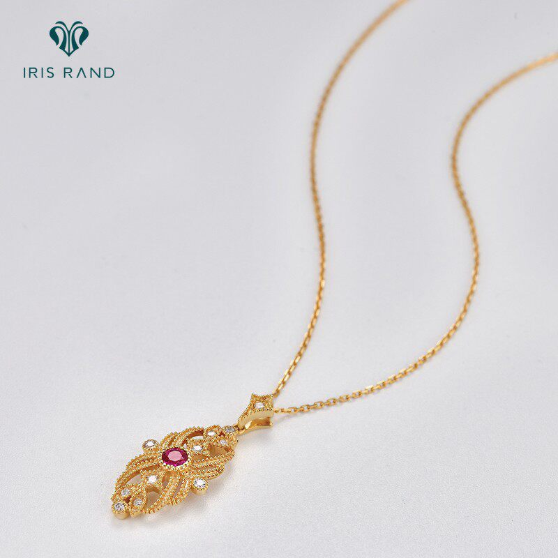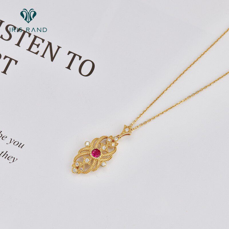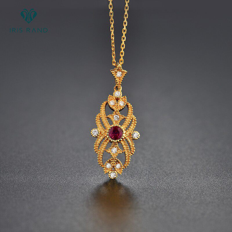 Золотая рубиновая бриллиантовая подвеска, ретро цепочка до ключиц, 18 карат, (в наличии на складе), Италия
