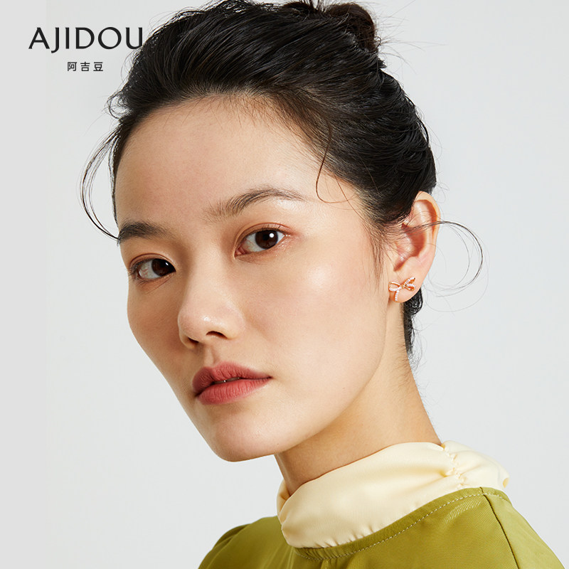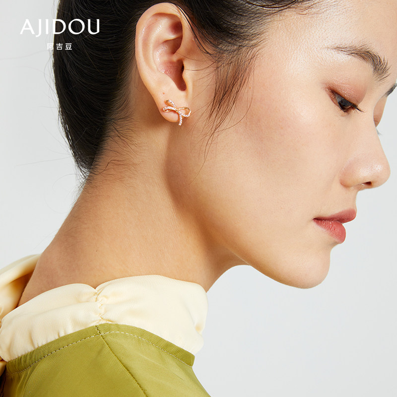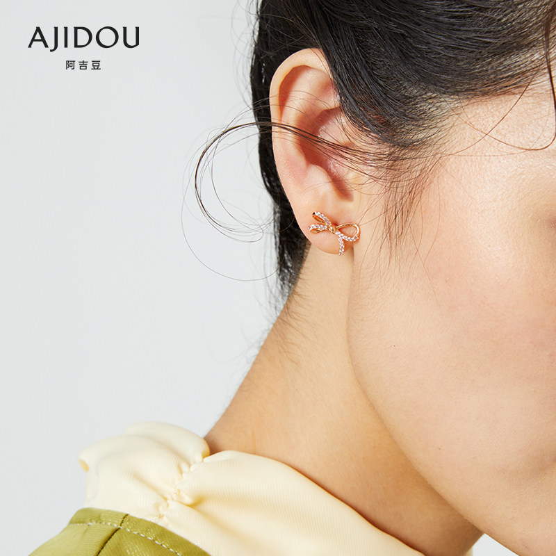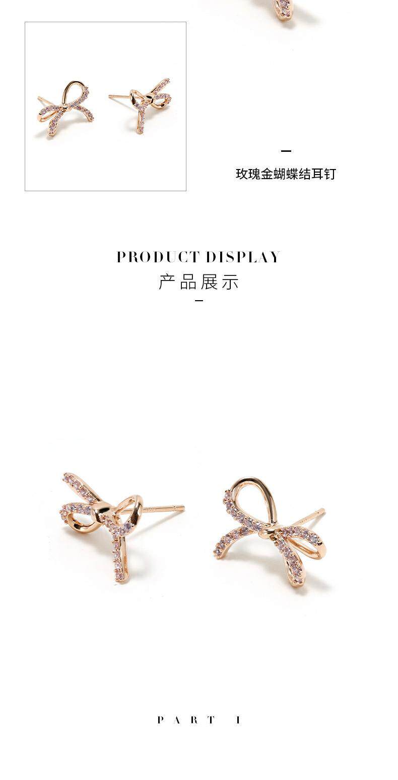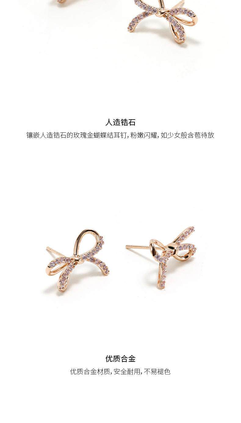 Золотые серьги с бантиком с цирконом, розовое золото