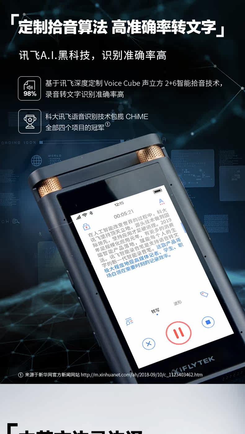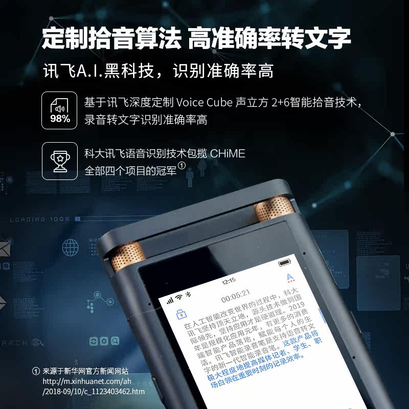 科大讯飞 SR501 Запись ручка Xunfei Recording Pen на текст Профессиональный перевод HD Шумовой курс Портативный класс учеников Специальная запись Pen Super Long Restby Light емкость