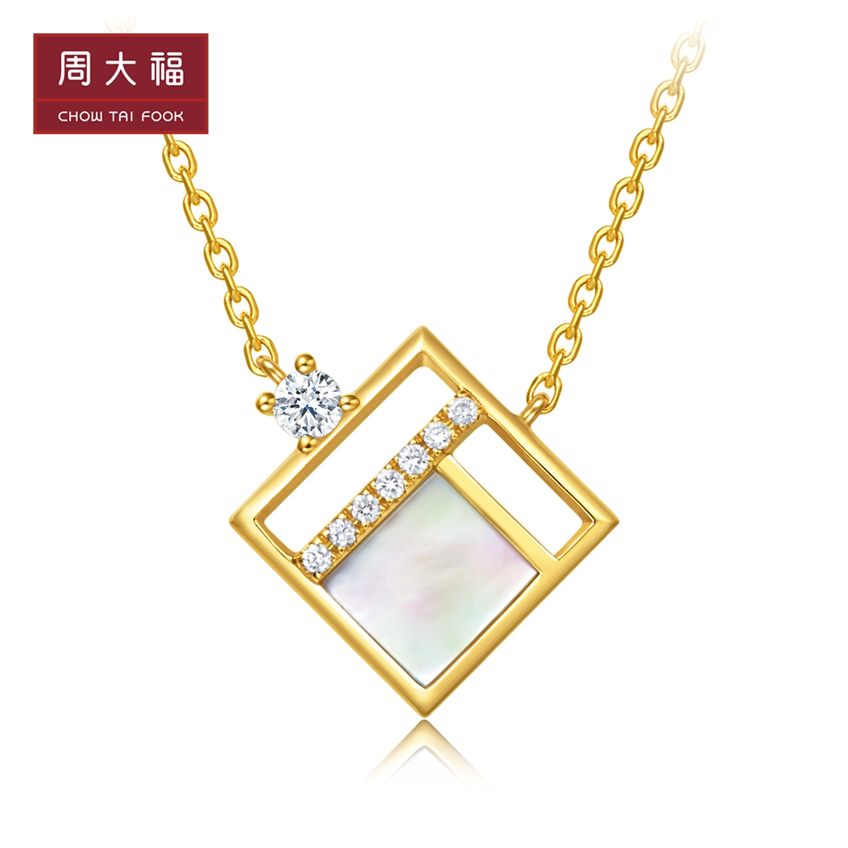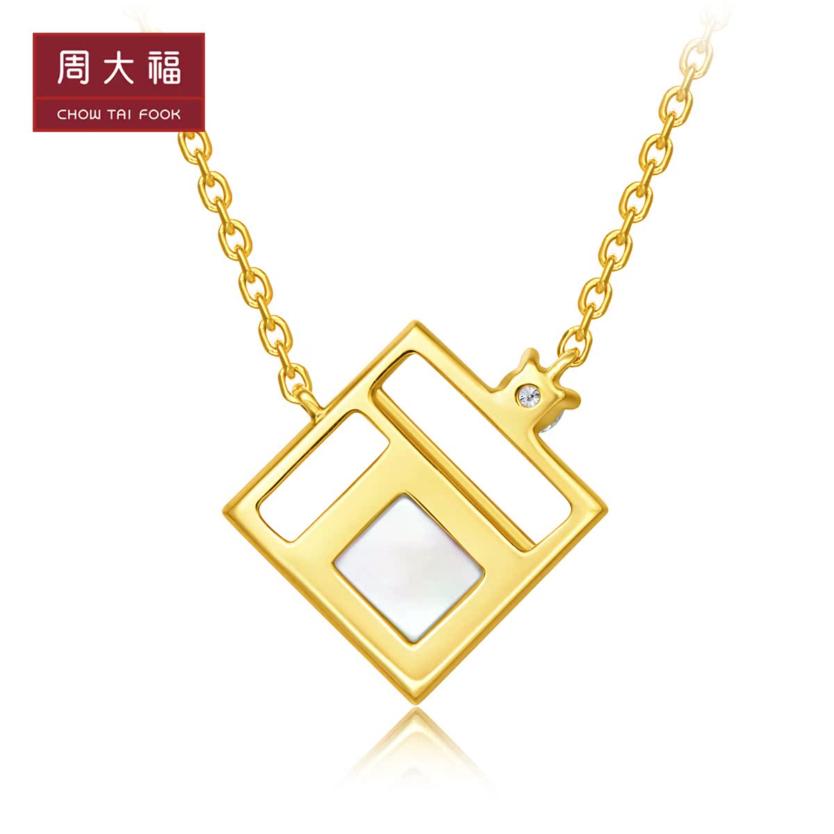 周大福 Квадратное ювелирное украшение, бриллиантовая подвеска, золото 750 пробы