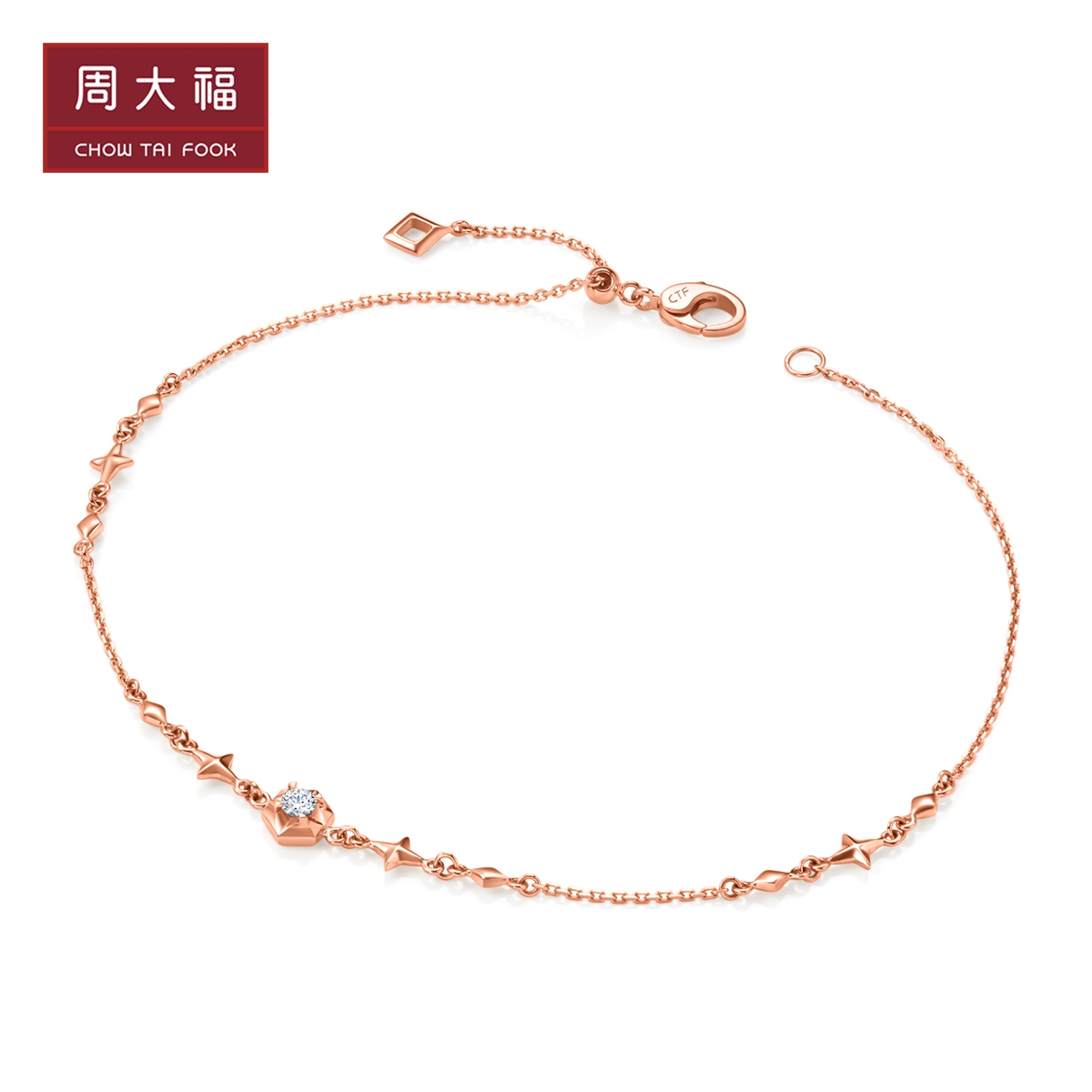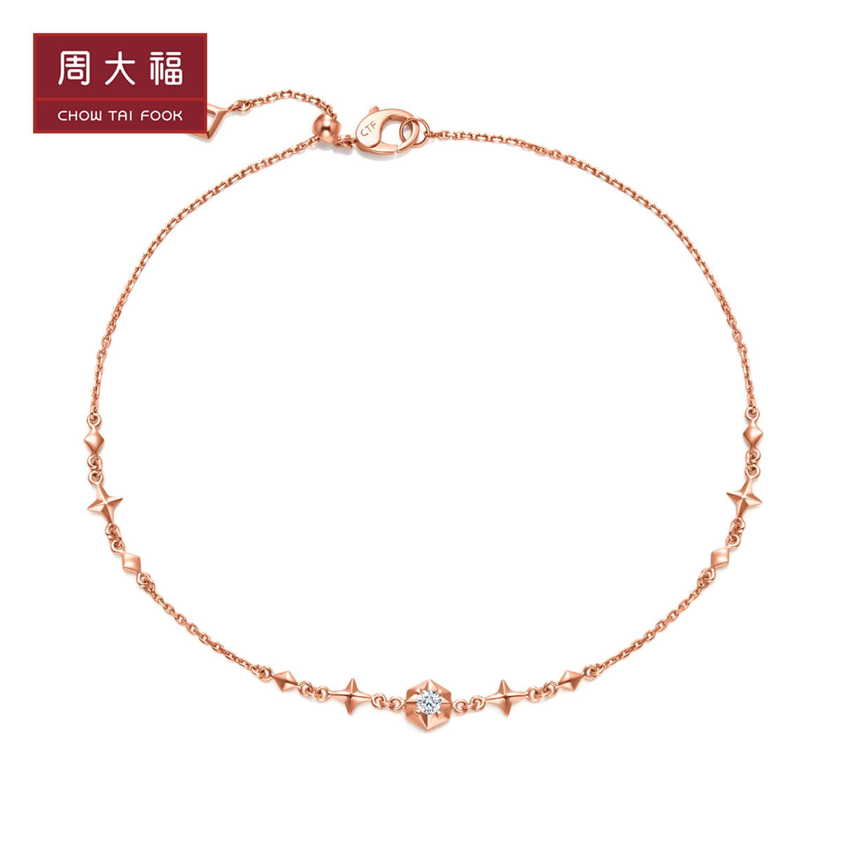 周大福 Модное ювелирное украшение, бриллиантовый браслет из натурального камня, простой и элегантный дизайн, золото 750 пробы