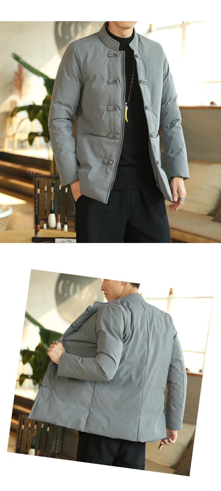 Ретро зимняя куртка, мужской пуховик, китайский стиль, большой размер