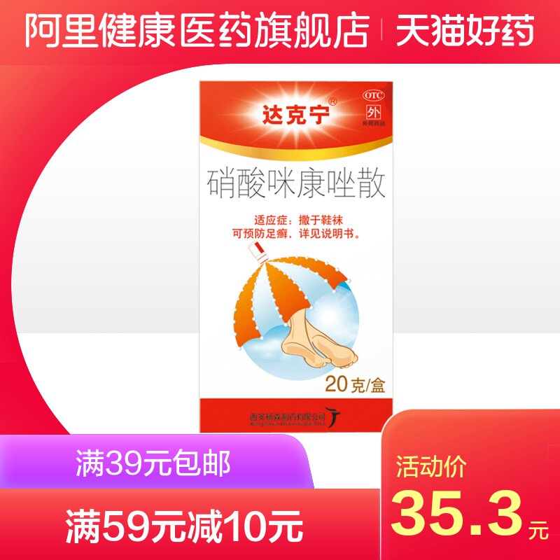 达克宁 Нитрат нитрат 20 г бактерицидного антипраритового газообразного газа порошок для ног лекарства от грибковых пузырей и сыпь с подгузником