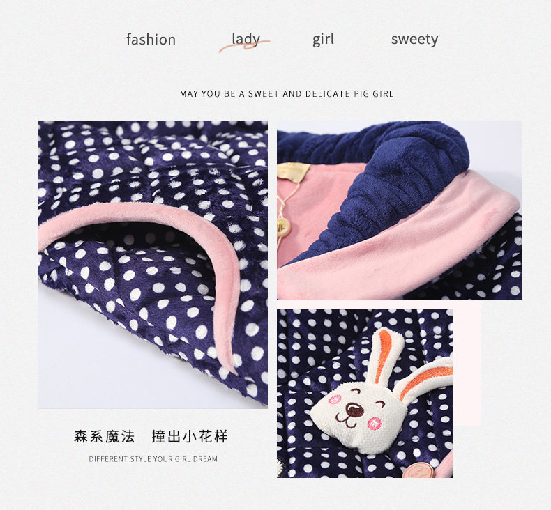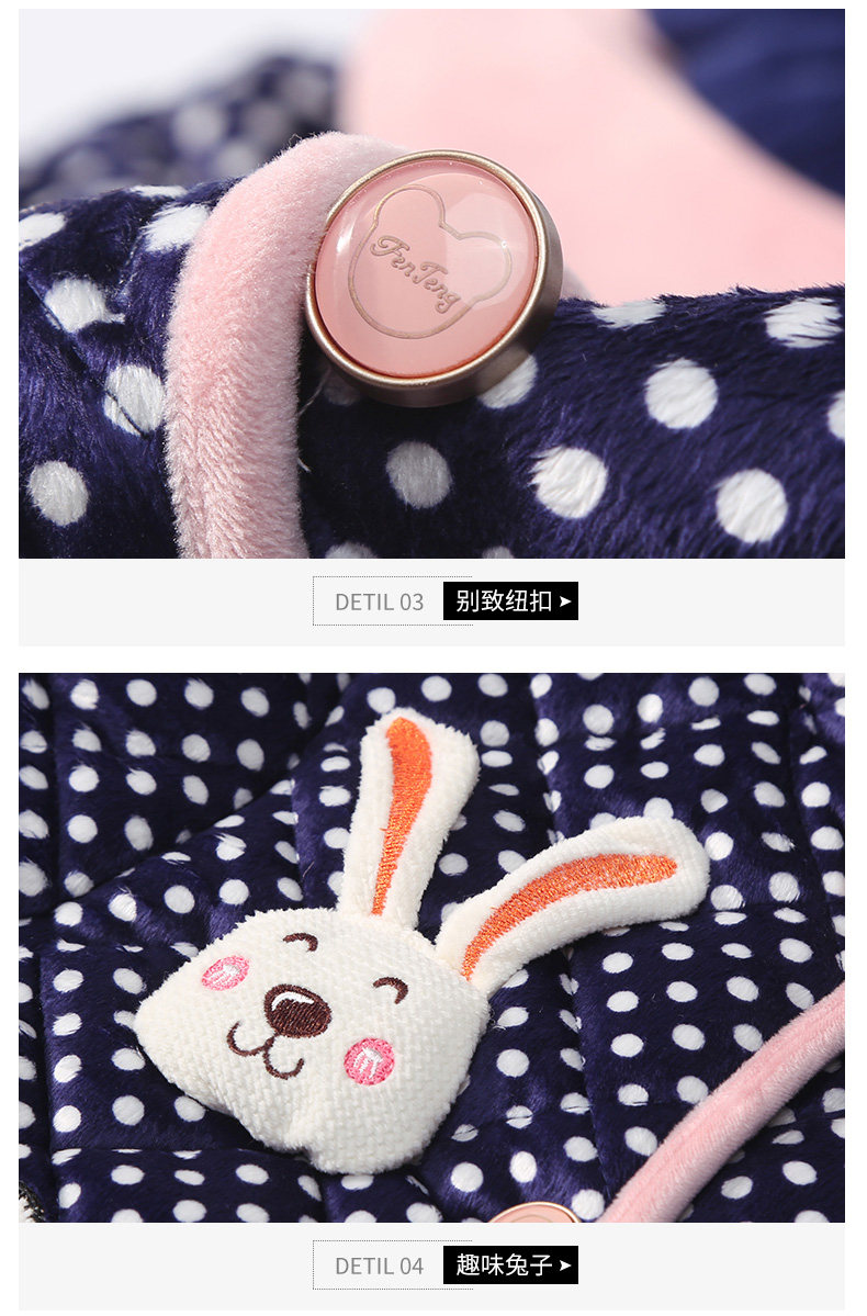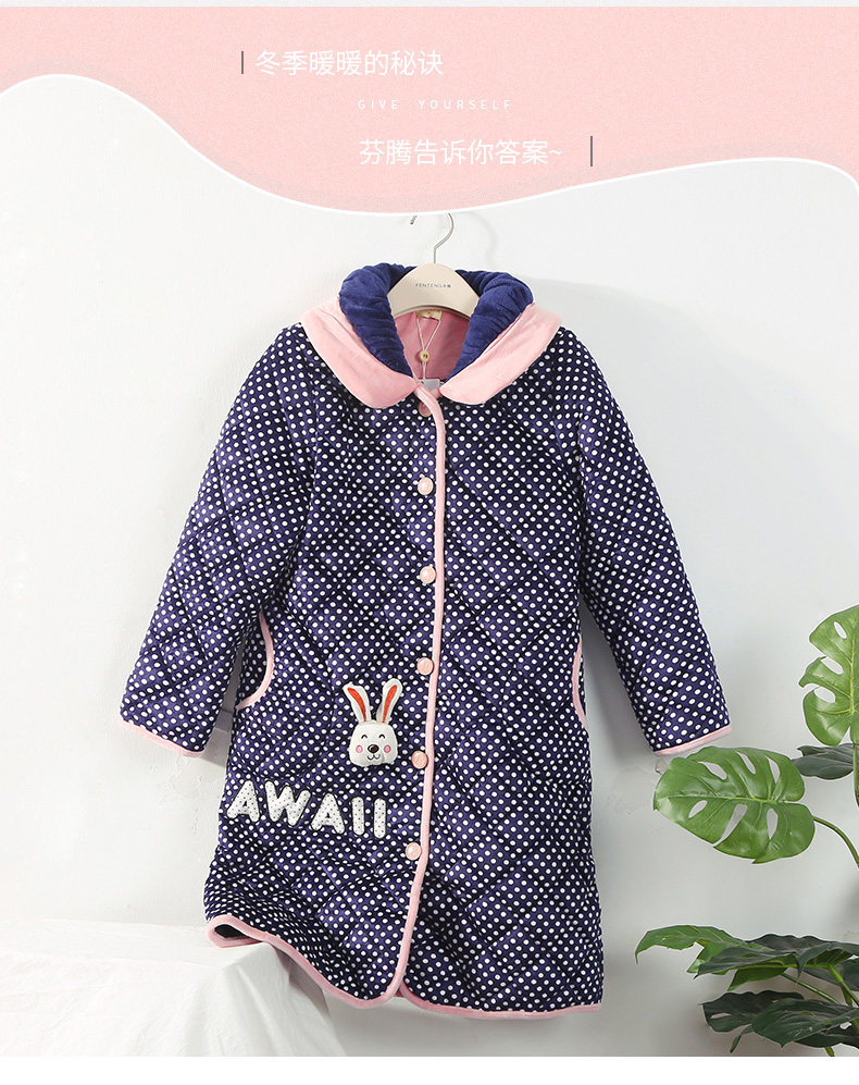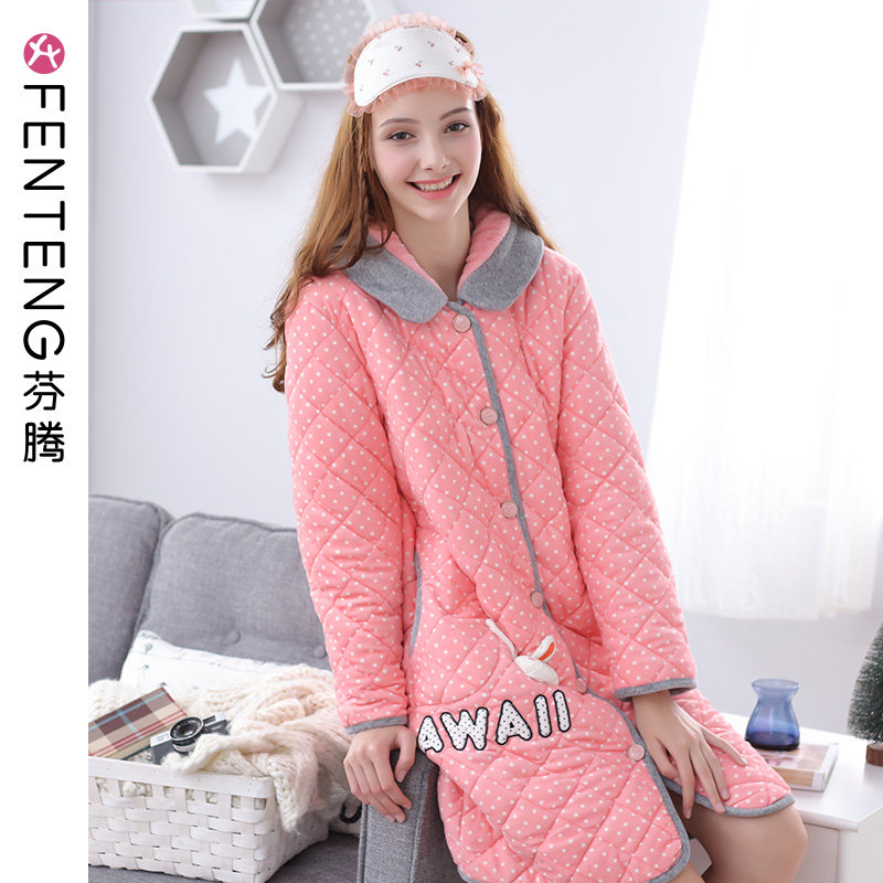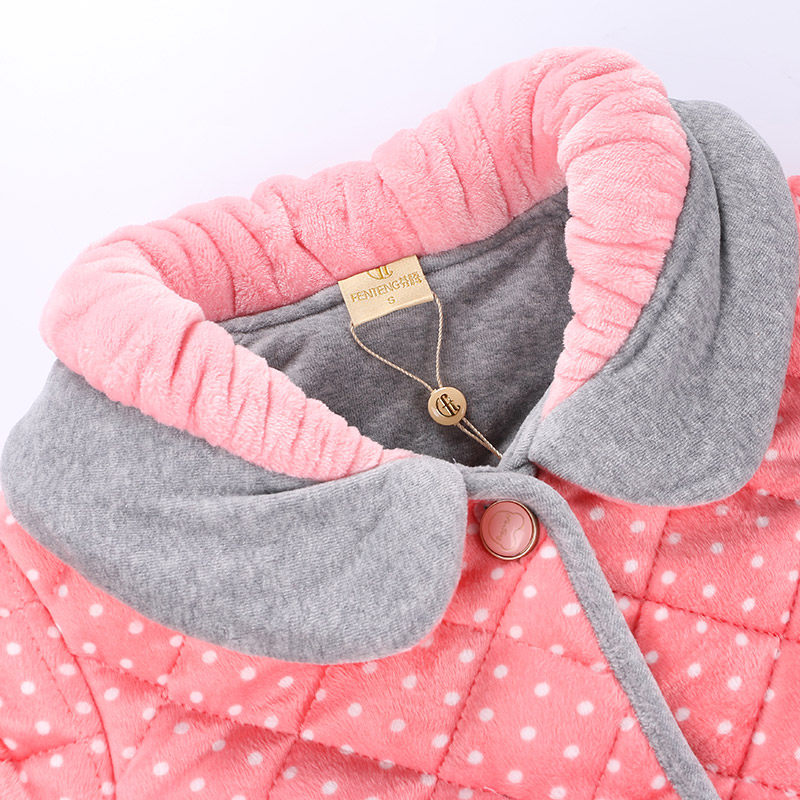 芬腾 Коралловая бархатная стеганая пижама, зимний милый кардиган, куртка, банный халат