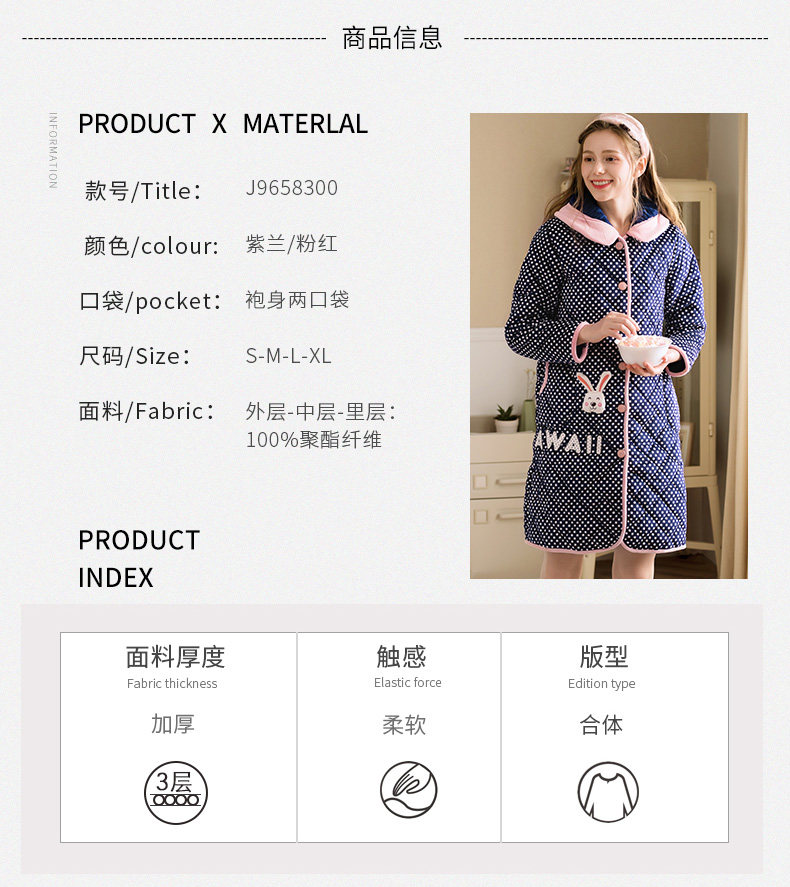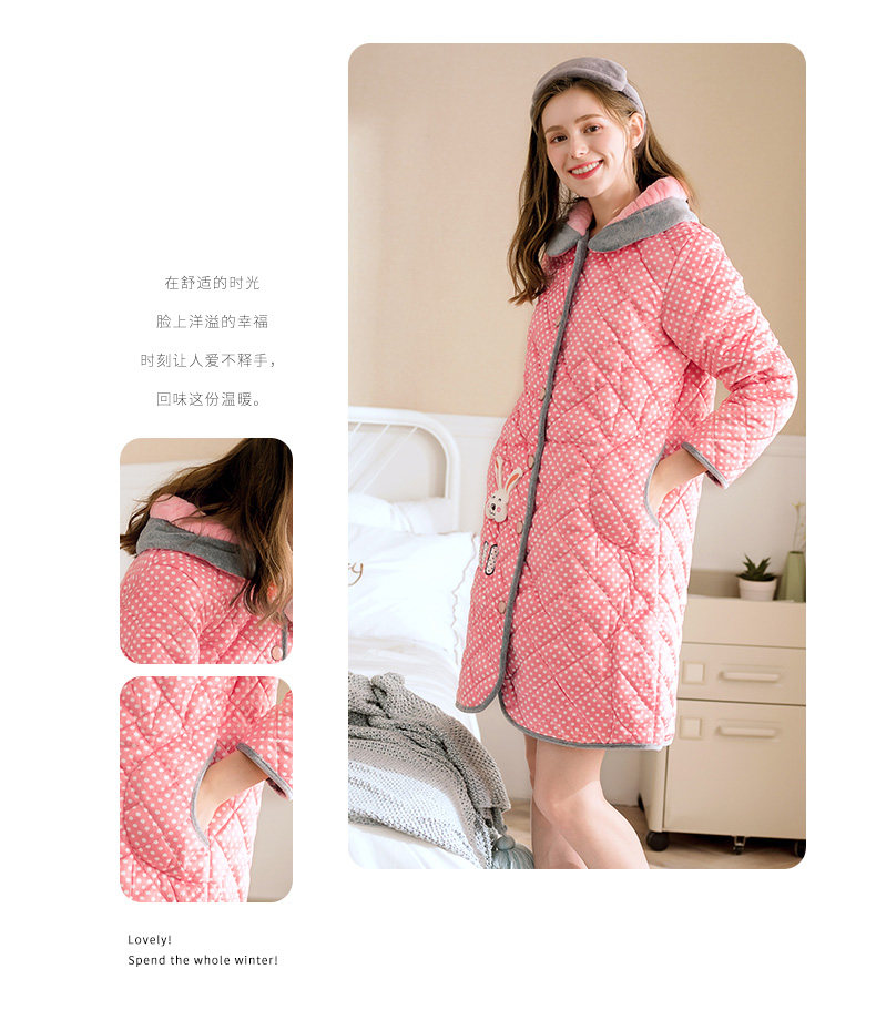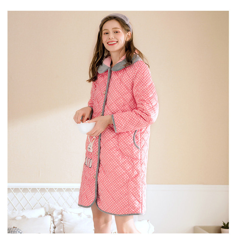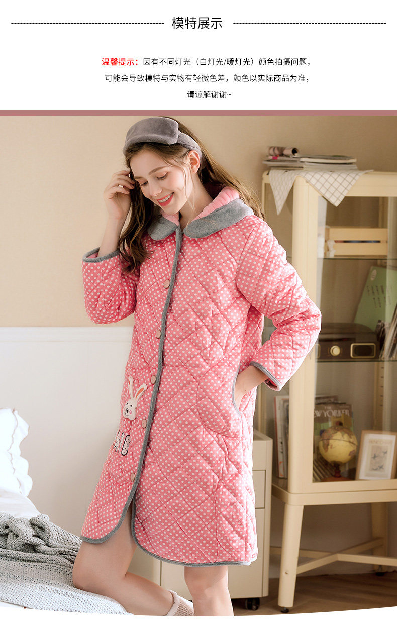 芬腾 Коралловая бархатная стеганая пижама, зимний милый кардиган, куртка, банный халат