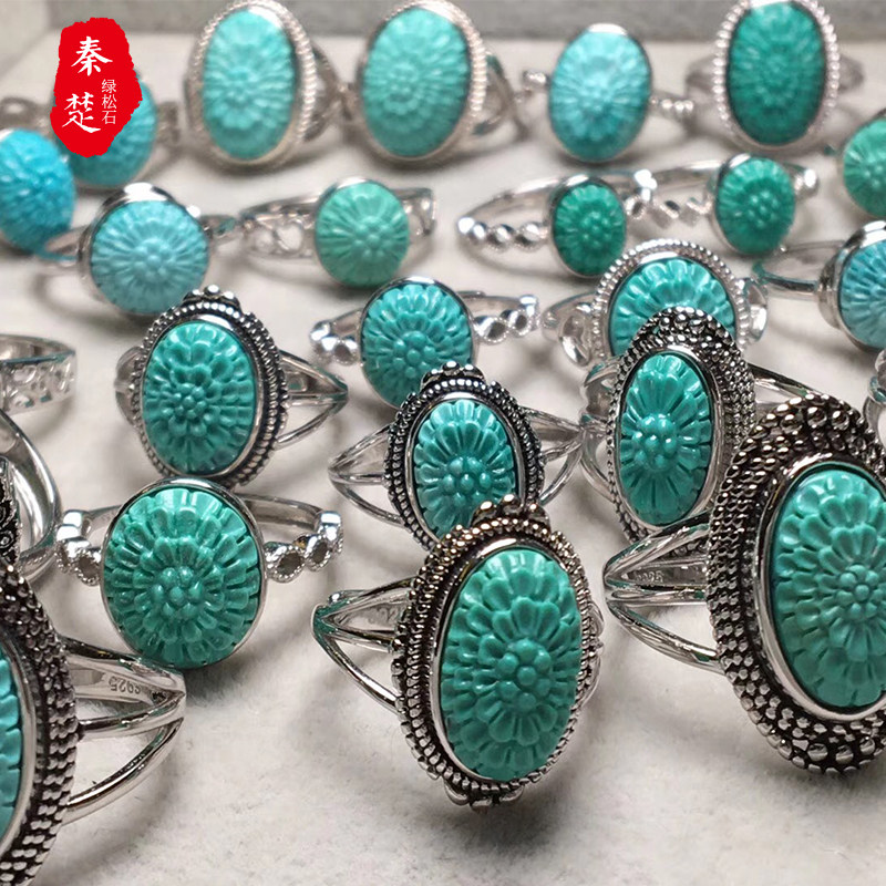 Бирюзовая природная руда, кольцо с камнем, бусины, драгоценный камень для кольца, инкрустация камня, аксессуар, женский стиль, серебро 925 пробы