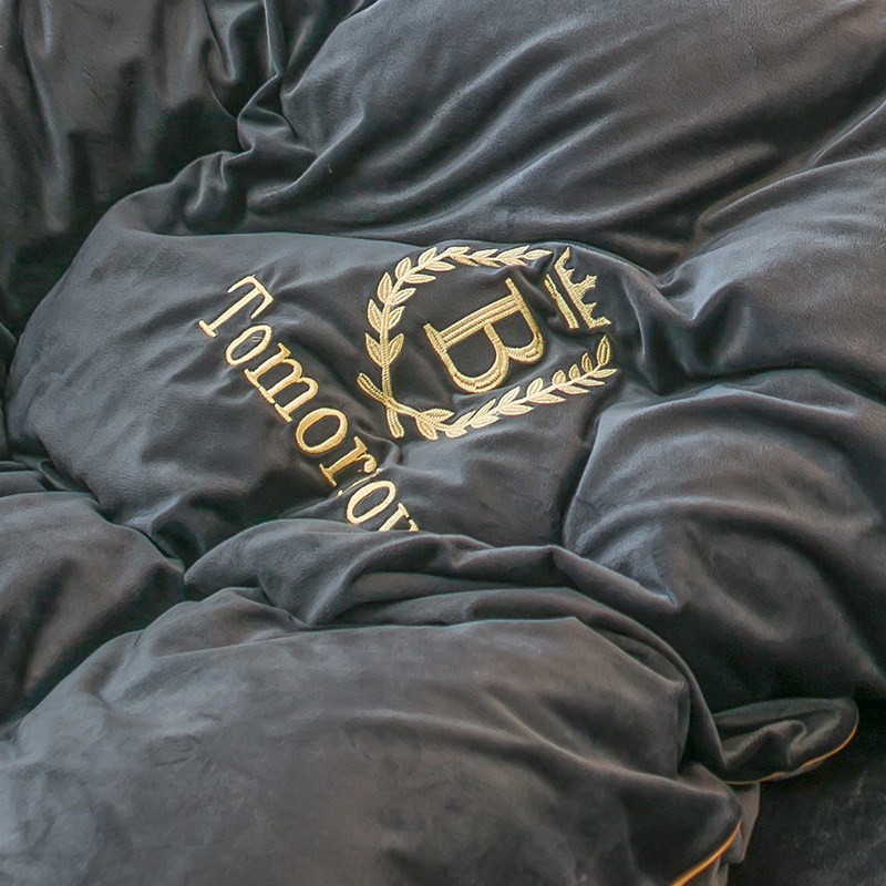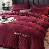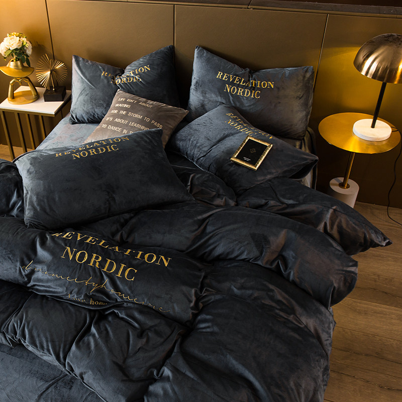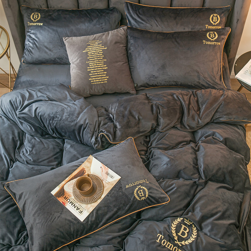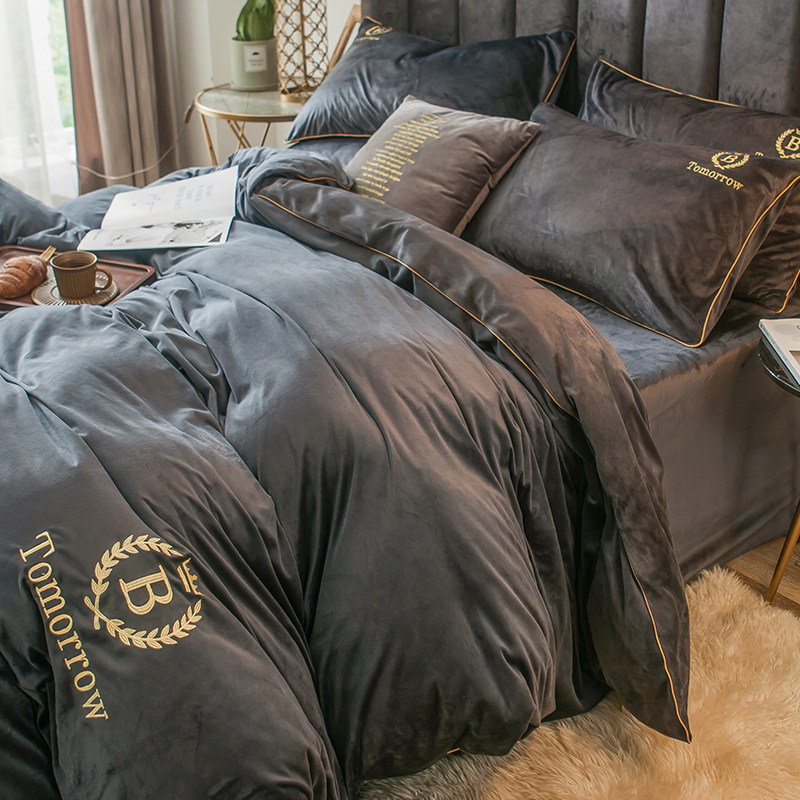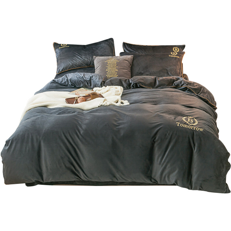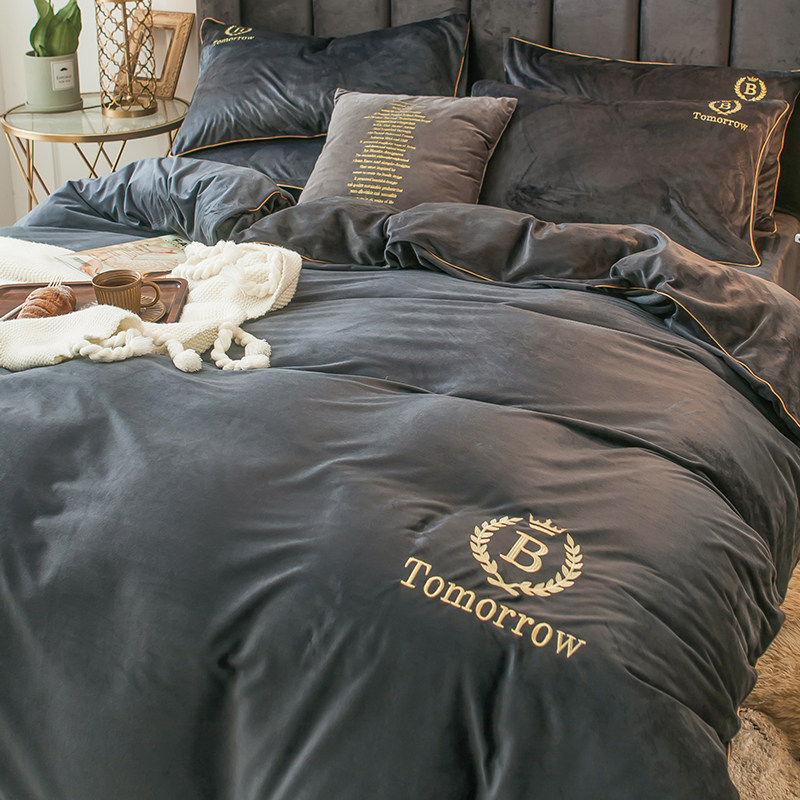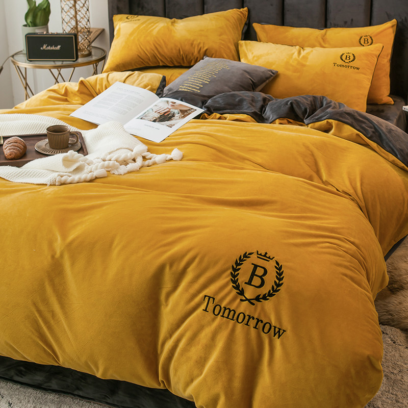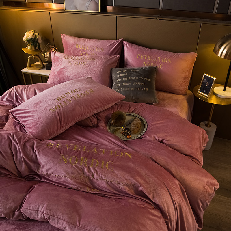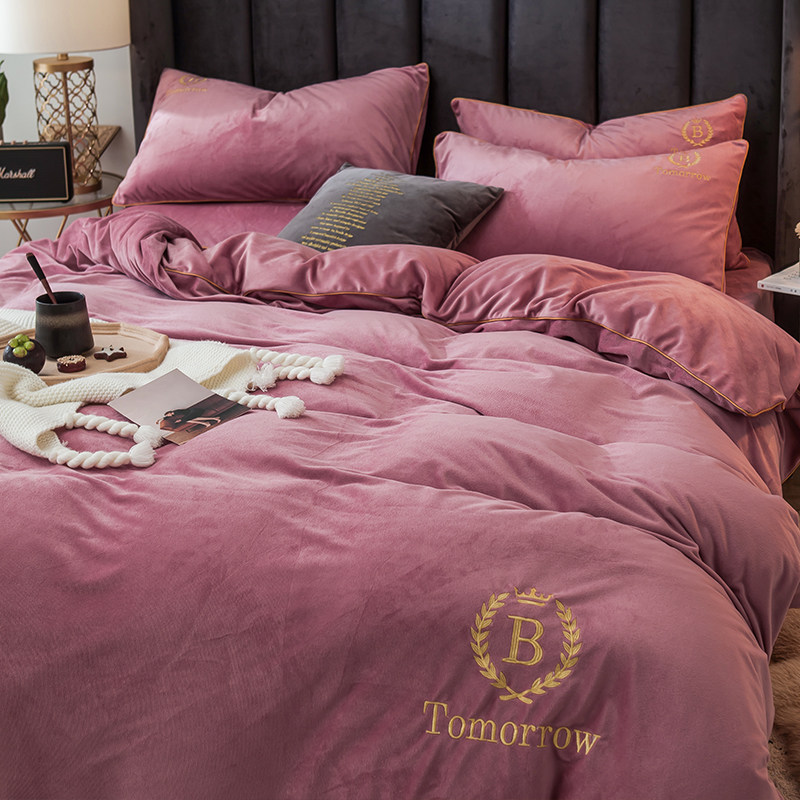 Коралловый комплект, двусторонний пододеяльник, фланелевая простыня, 4 предмета, с вышивкой, увеличенная толщина, 3 предмета