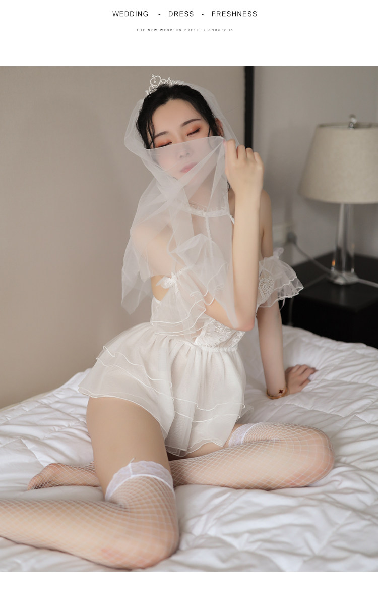 - Набор чистой белой соединительной одежды+вуаль+белые носки сети