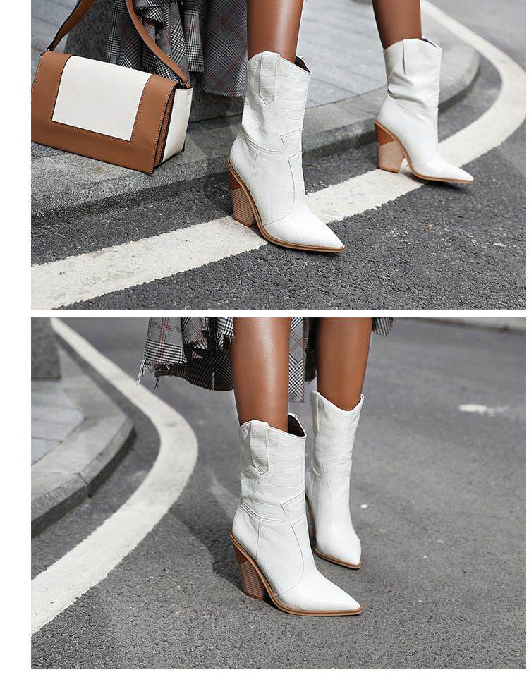 - Белые бутик -одиночные ботинки