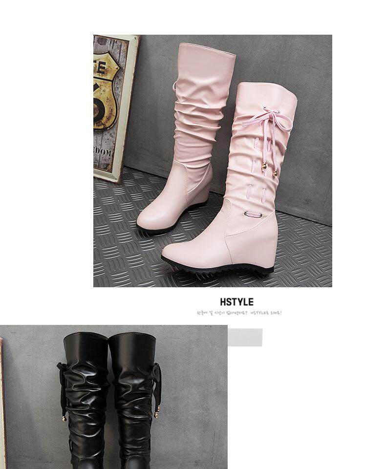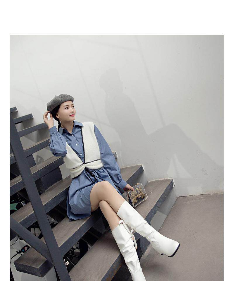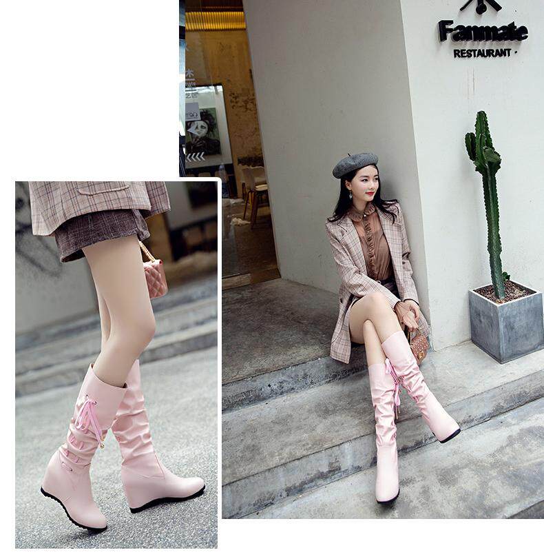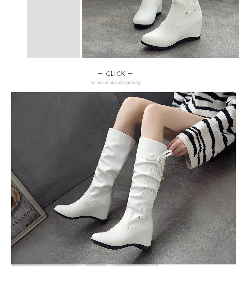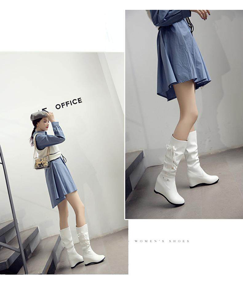 Осенние зимние белые высокие сапоги, 2019, в корейском стиле, средней длины