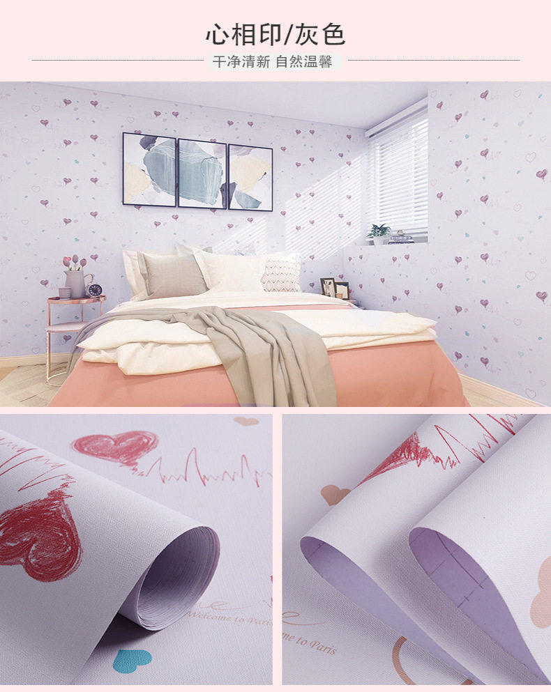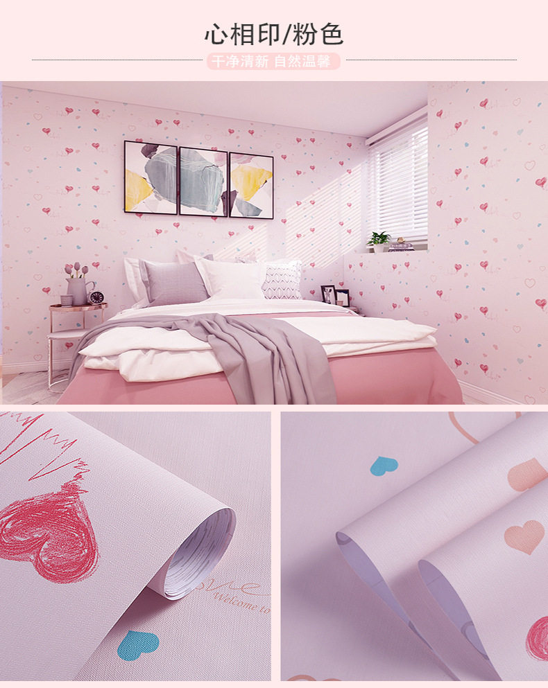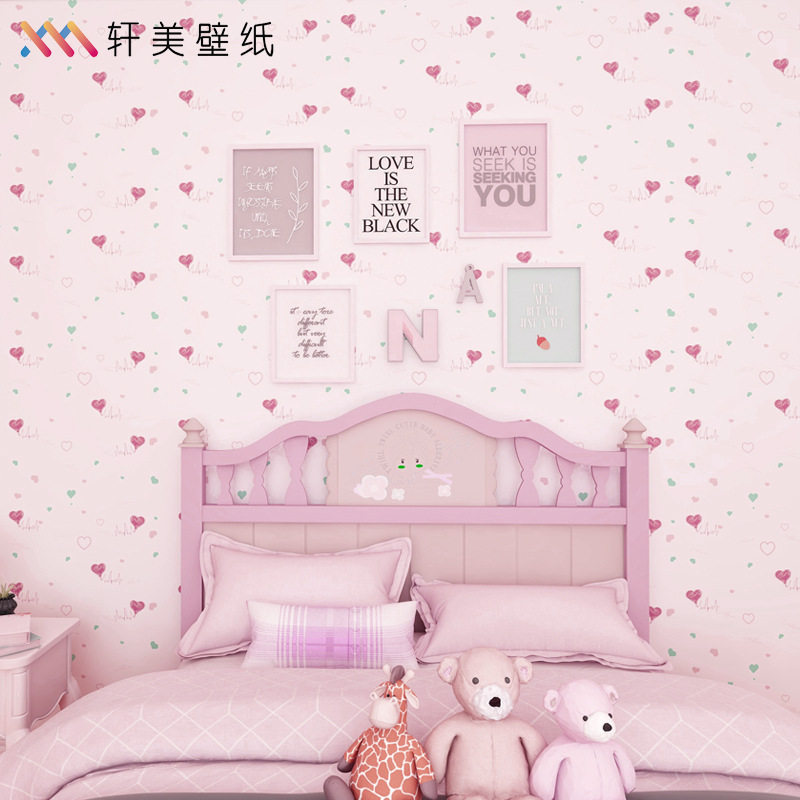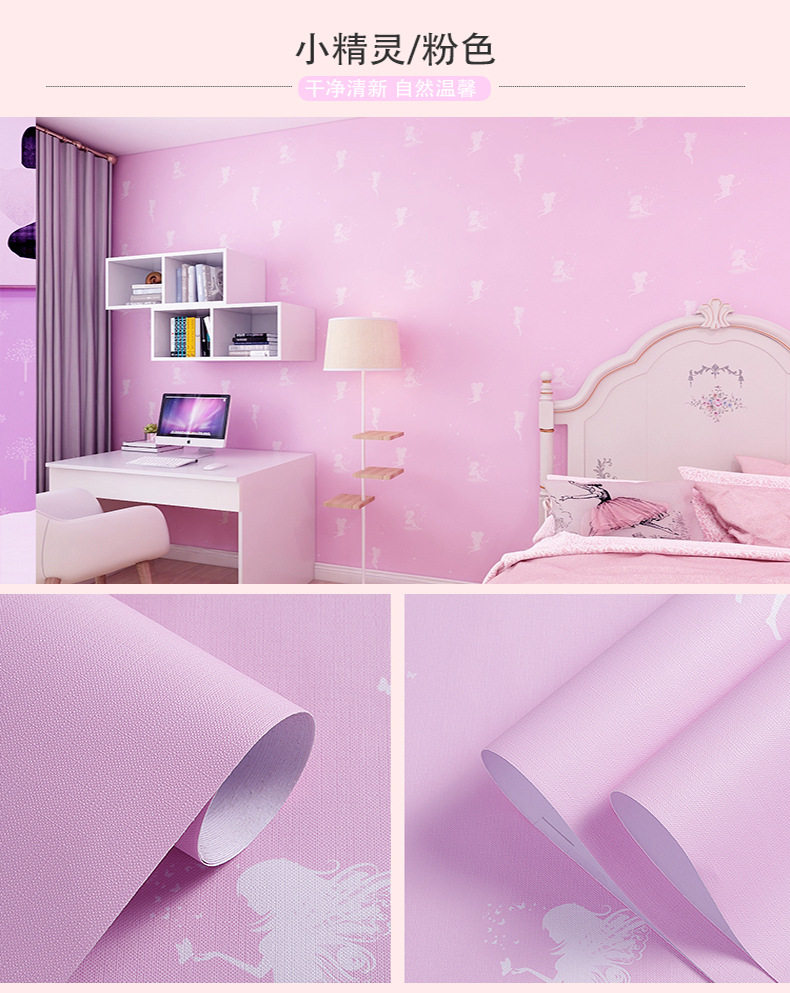 Водонепроницаемые и влажные -защищенные девушки спальня комната, меблирующая теплые обои, мультфильм Студент Девушка общежитие розовые сами -стильные обои