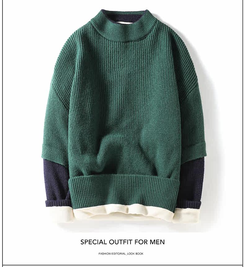 Зеленый утепленный зимний трендовый удерживающий тепло свитер, высокий воротник, коллекция 2021, в корейском стиле