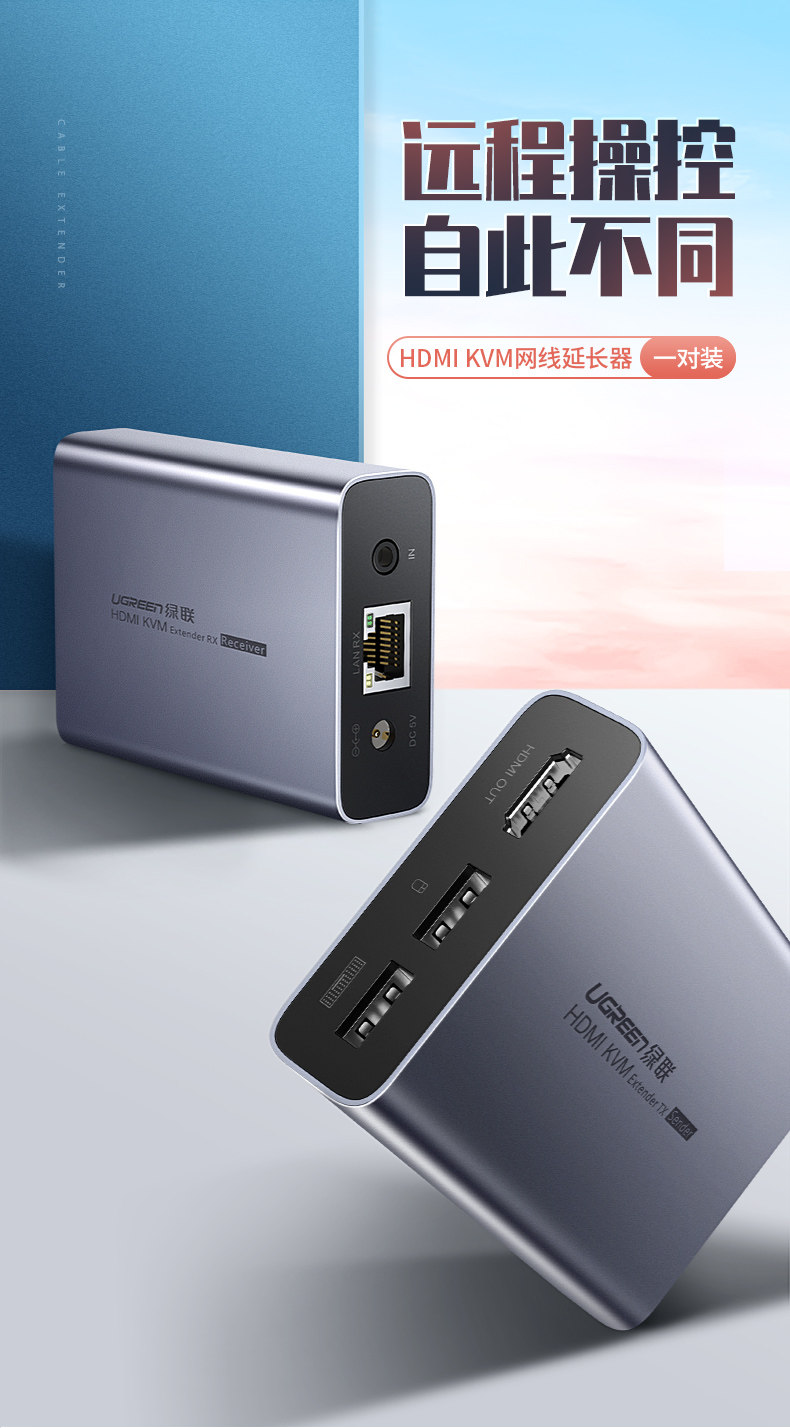 Зеленый союз HDMI KVM Extender Однопроводная сеть трансмиссии 150 метров с USB -портом -клавиатурой передачи мыши передача передачи сетевого порта 1080 Высоко -активизионное видео Усиление сигнала конверсии RJ45