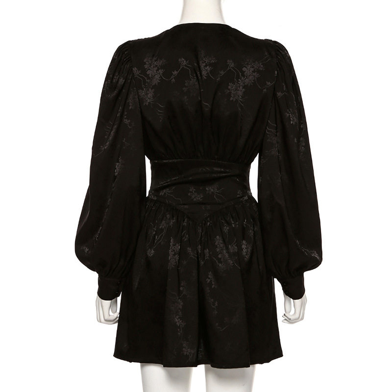 Ретро сексуальный корсет, платье, французский стиль, V-образный вырез, рукава фонарики