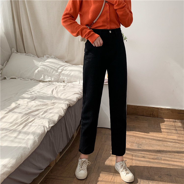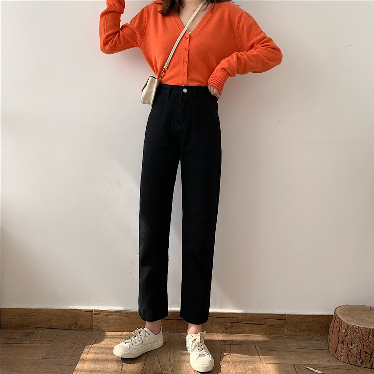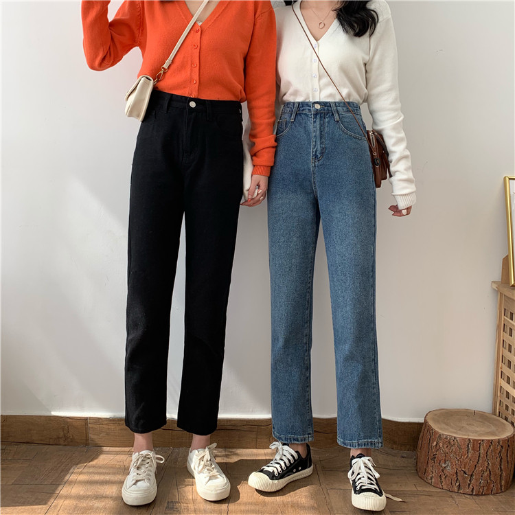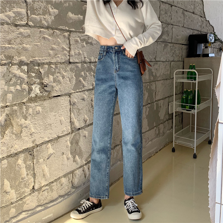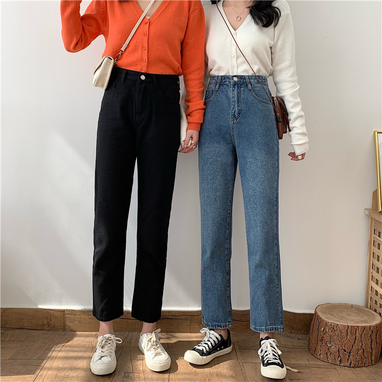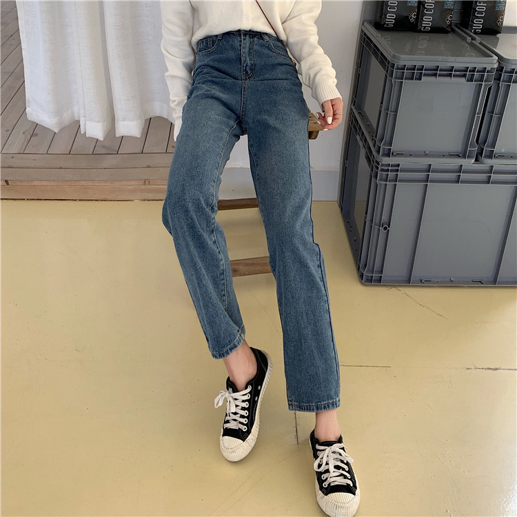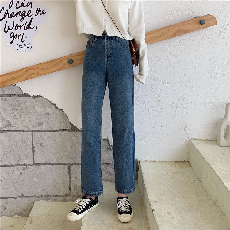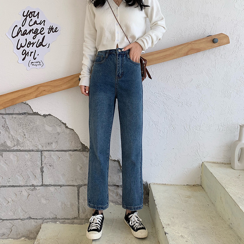 Tide, ретро джинсы, приталенные штаны, повседневные брюки, высокая талия, свободный прямой крой, в корейском стиле