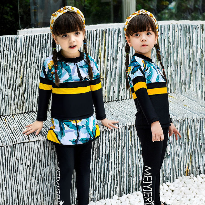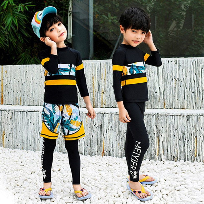 Детский купальник, лонгслив подходит для мужчин и женщин, пляжный раздельный комплект для плавания, 2019, защита от солнца, 3 предмета
