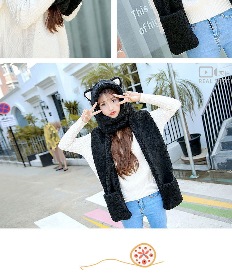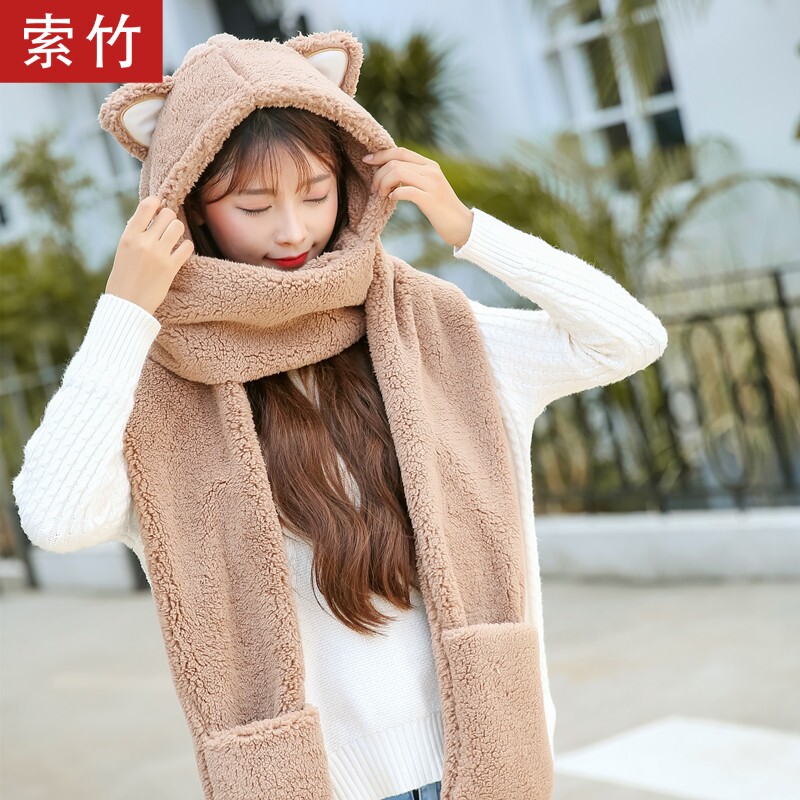 Зимняя милая удерживающая тепло шапка, шарф, перчатки, комплект, в корейском стиле, «три в одном», 3 предмета