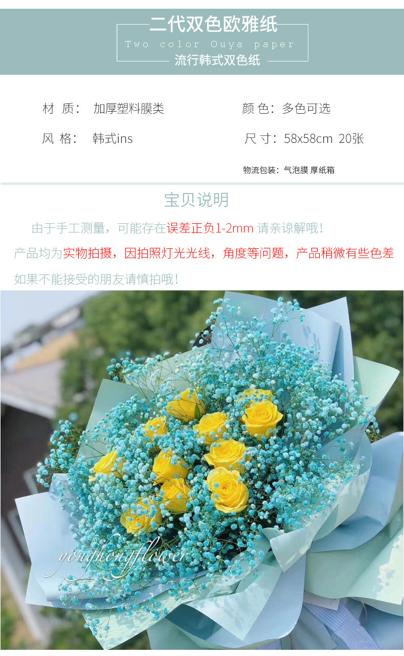 Новая водонепроницаемая бумага для бумаги с двойной плохим цветочной бумагой Корейская корзина цветочная корзина Цветочная корзина цветочный материал