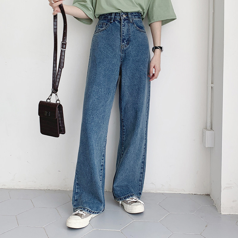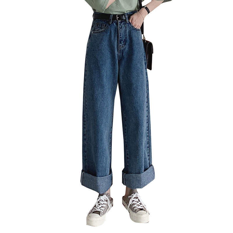 Джинсы, приталенные осенние штаны, высокая талия, большой размер, свободный прямой крой