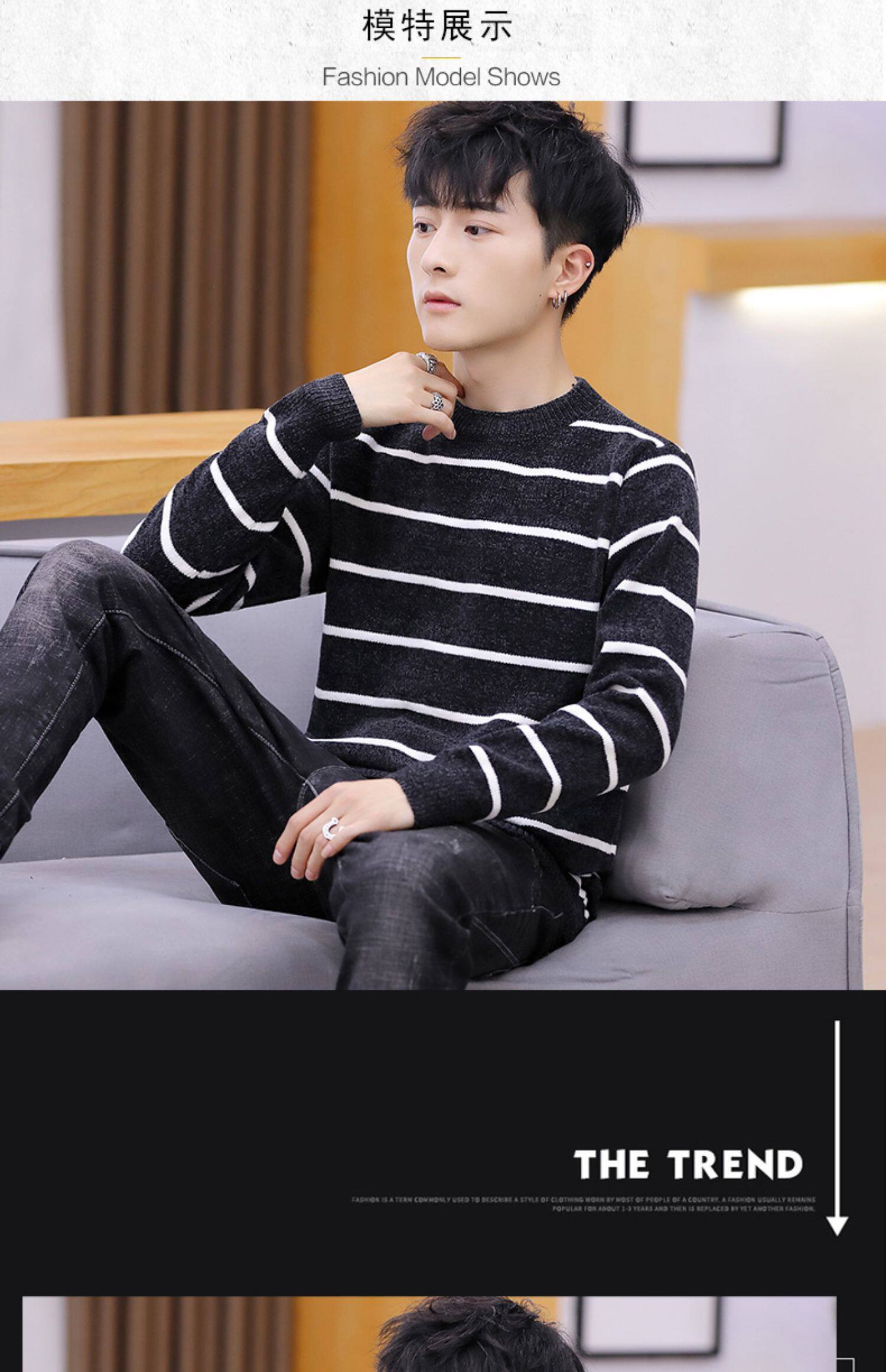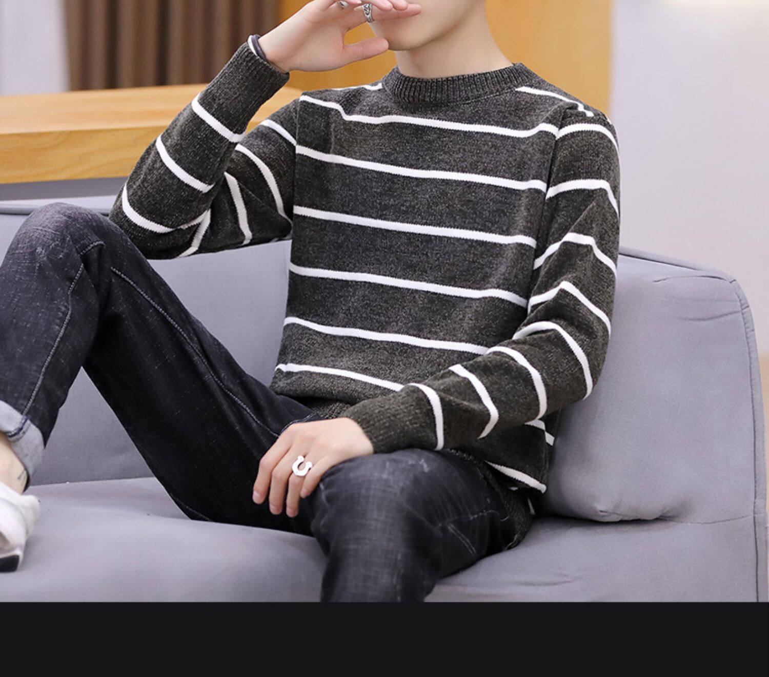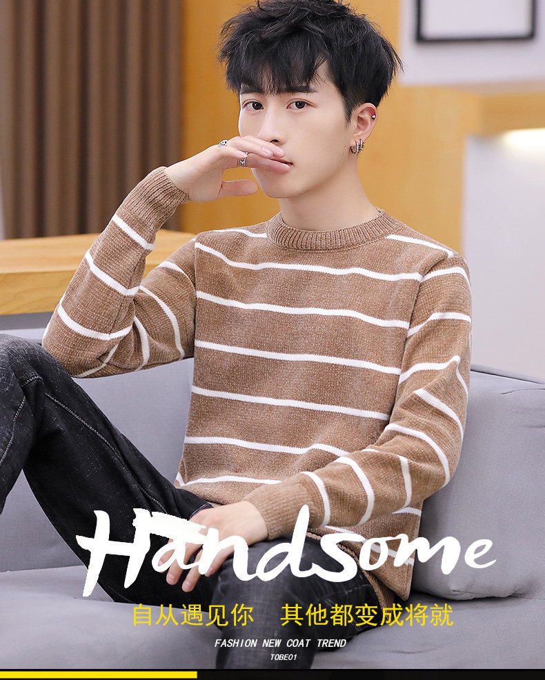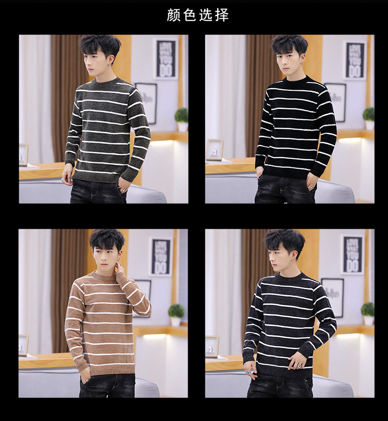 Мужской пуховик, трикотажный трендовый базовый приятный телу свитер с круглым воротником, в корейском стиле