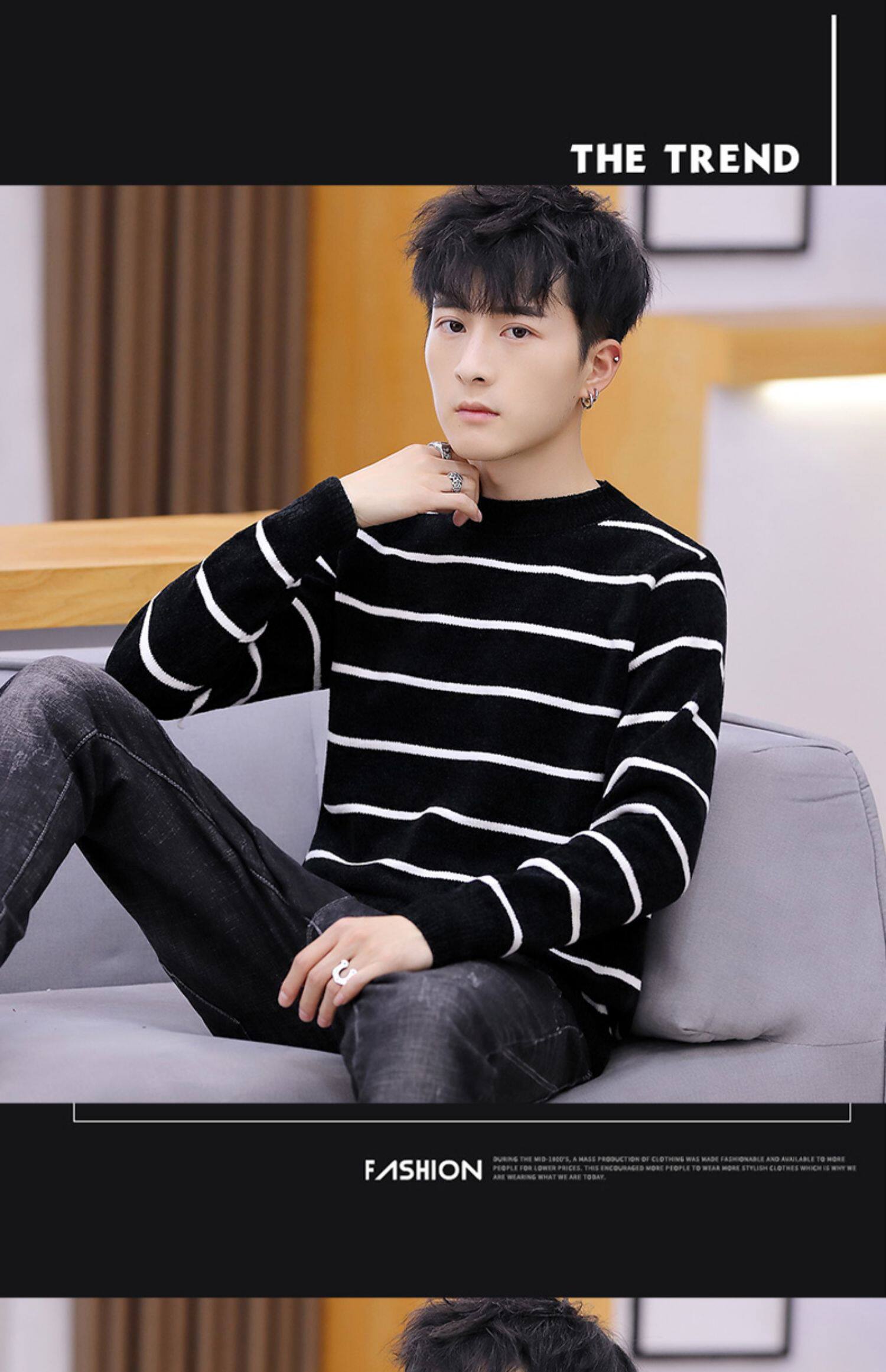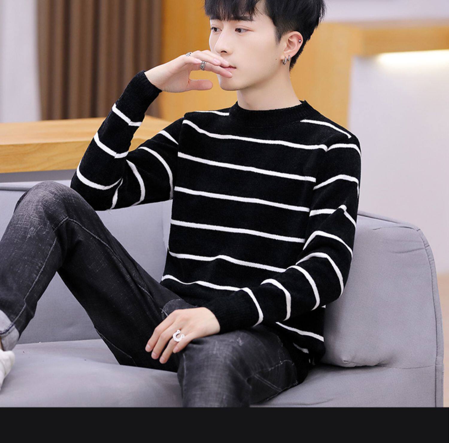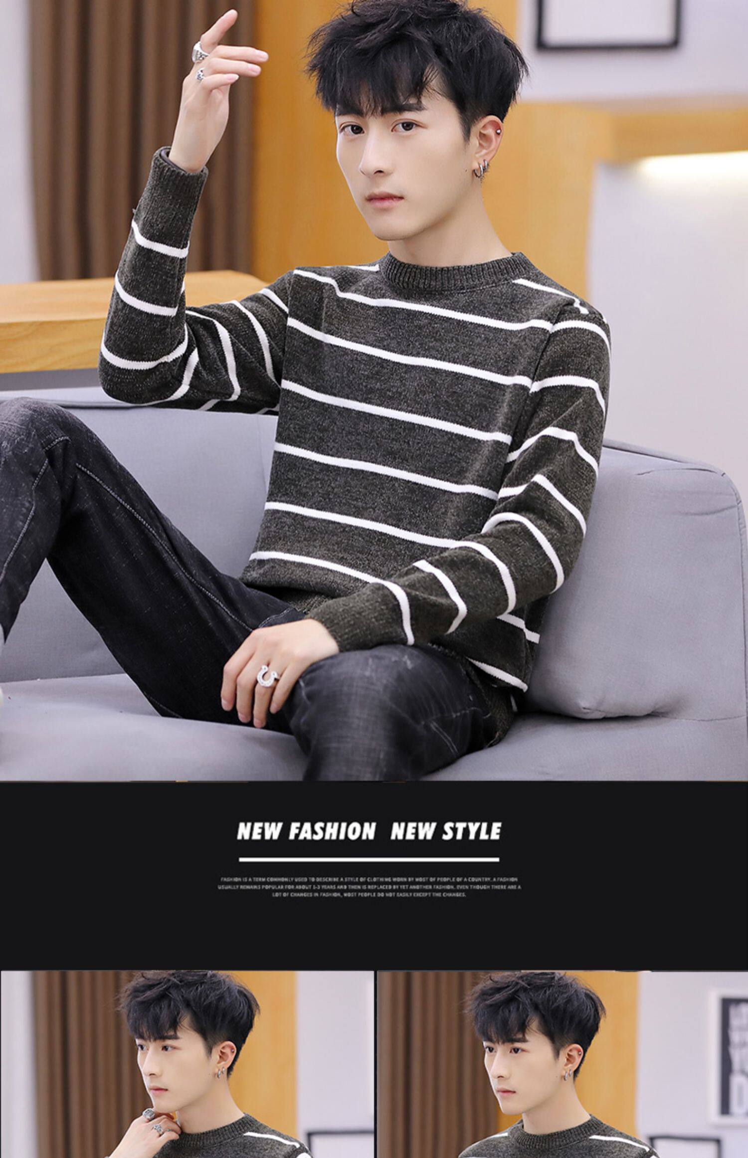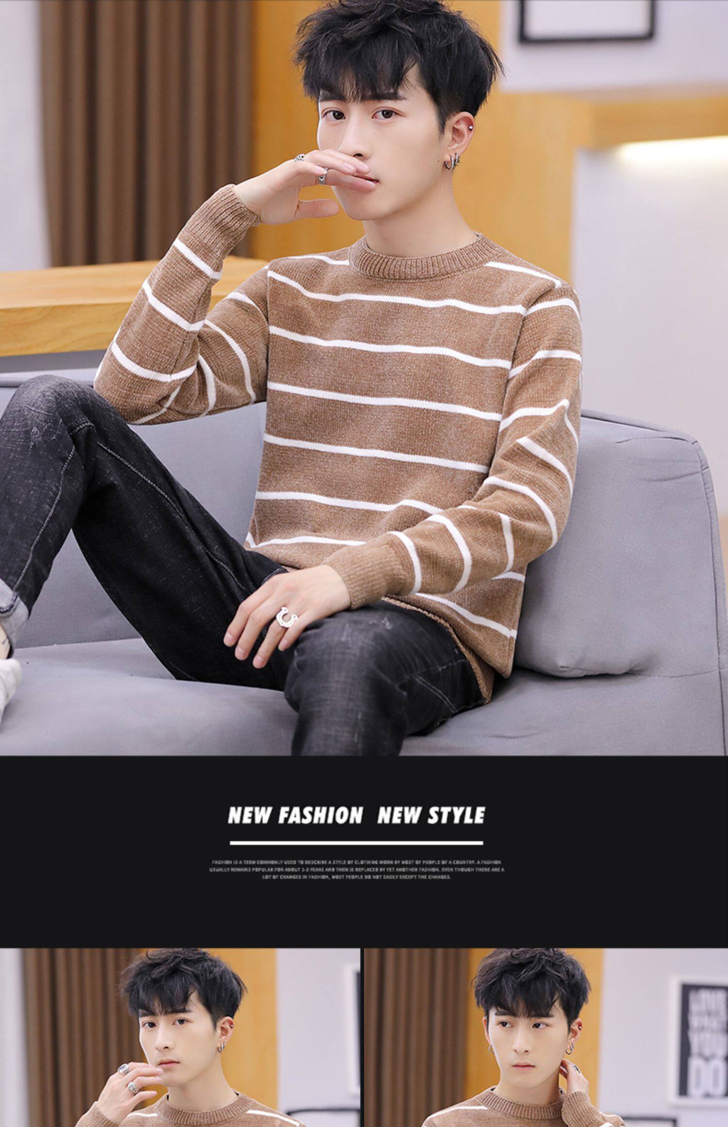 Мужской пуховик, трикотажный трендовый базовый приятный телу свитер с круглым воротником, в корейском стиле