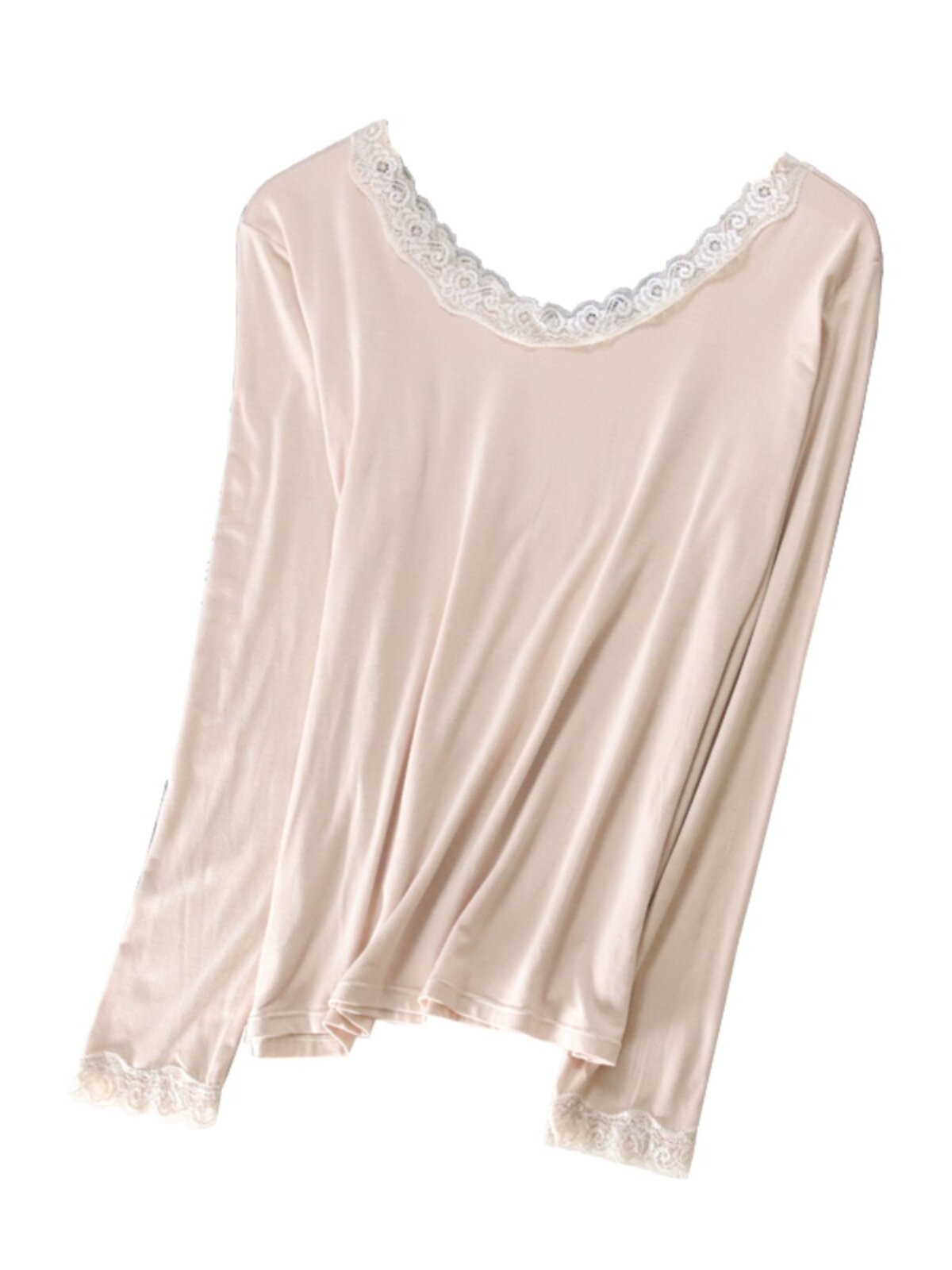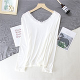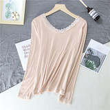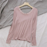 Кружевной базовый лонгслив с круглым воротником, приятная телу футболка, тонкое термобелье, кружевное платье, большой размер