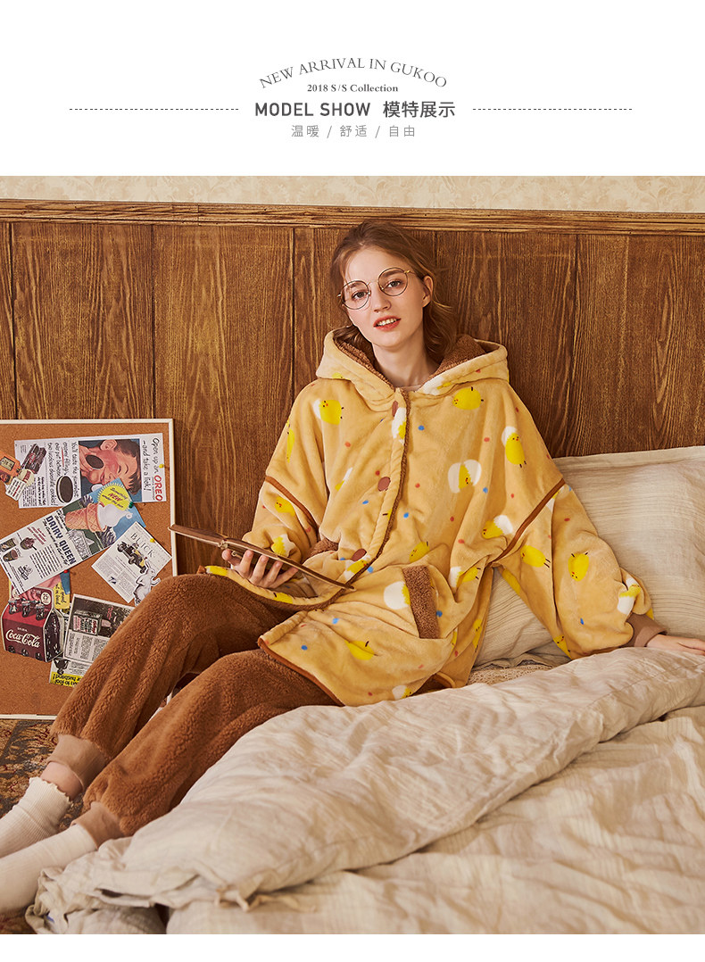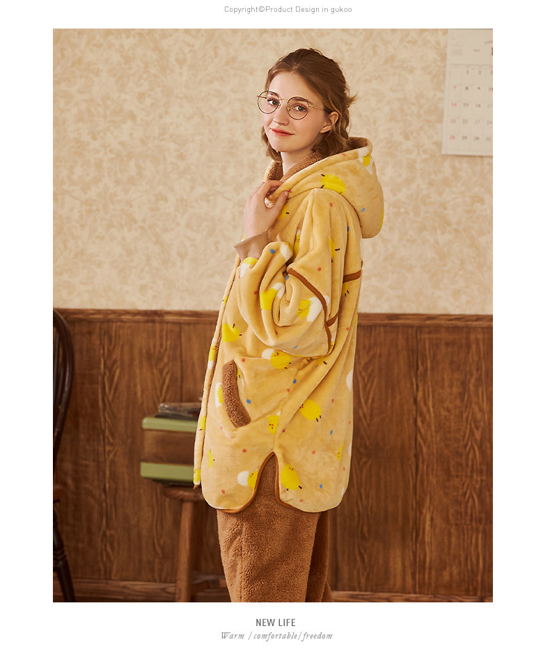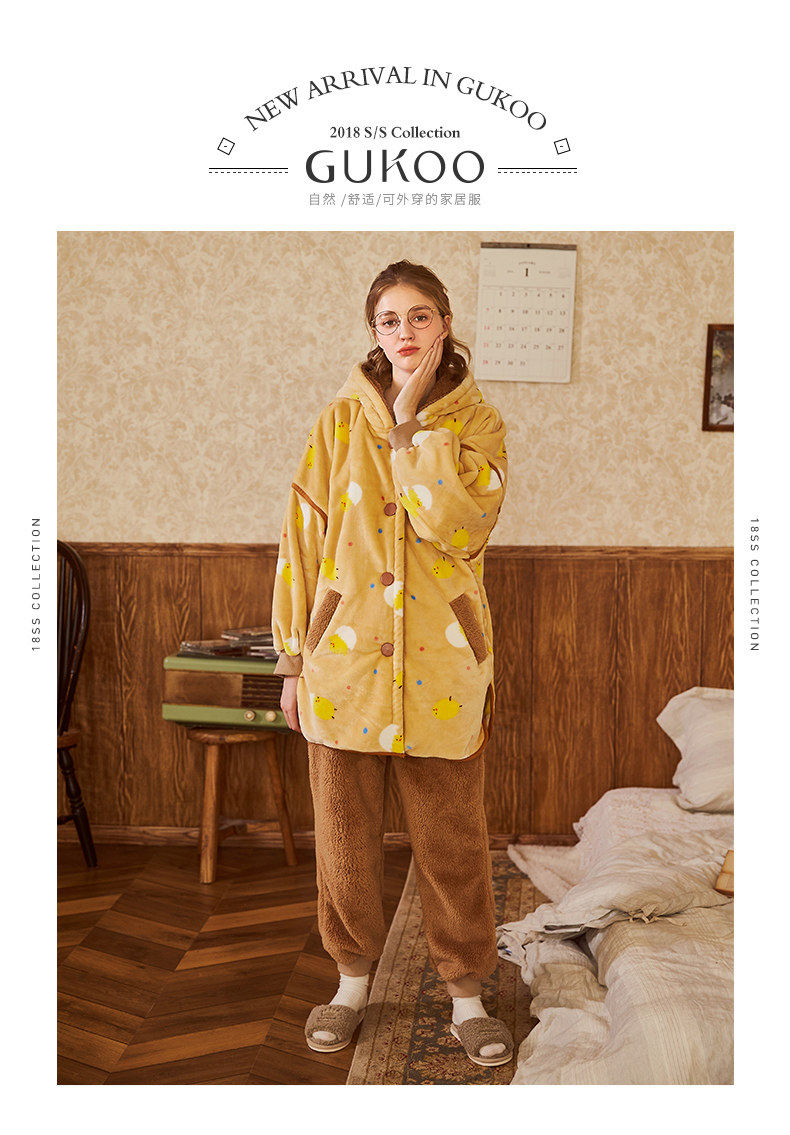 Gukoo/果壳 Пижама, милый демисезонный зимний комплект с капюшоном