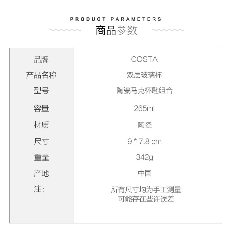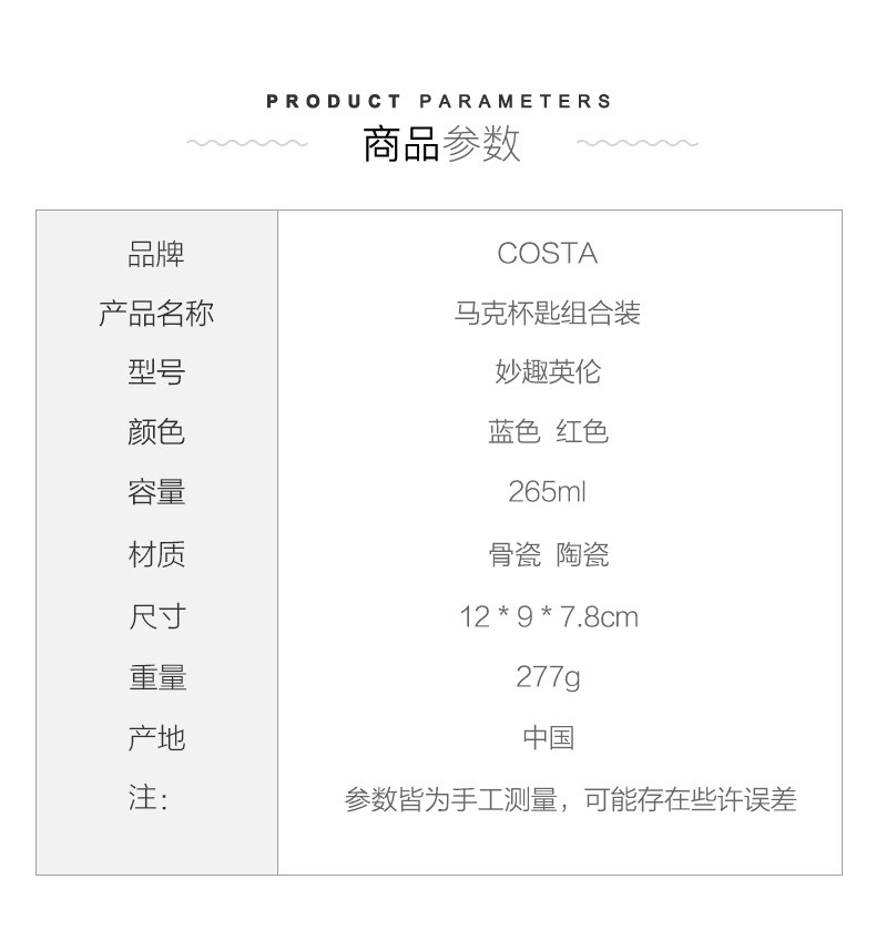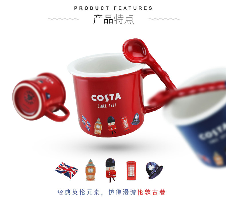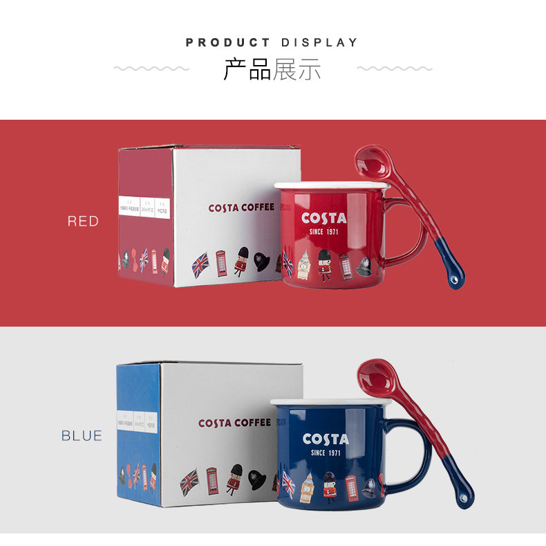 Семья Коста Британская чашка чашки чашки чашки кофейня молоко чашка молока принесите ложку водяной чашки офиса