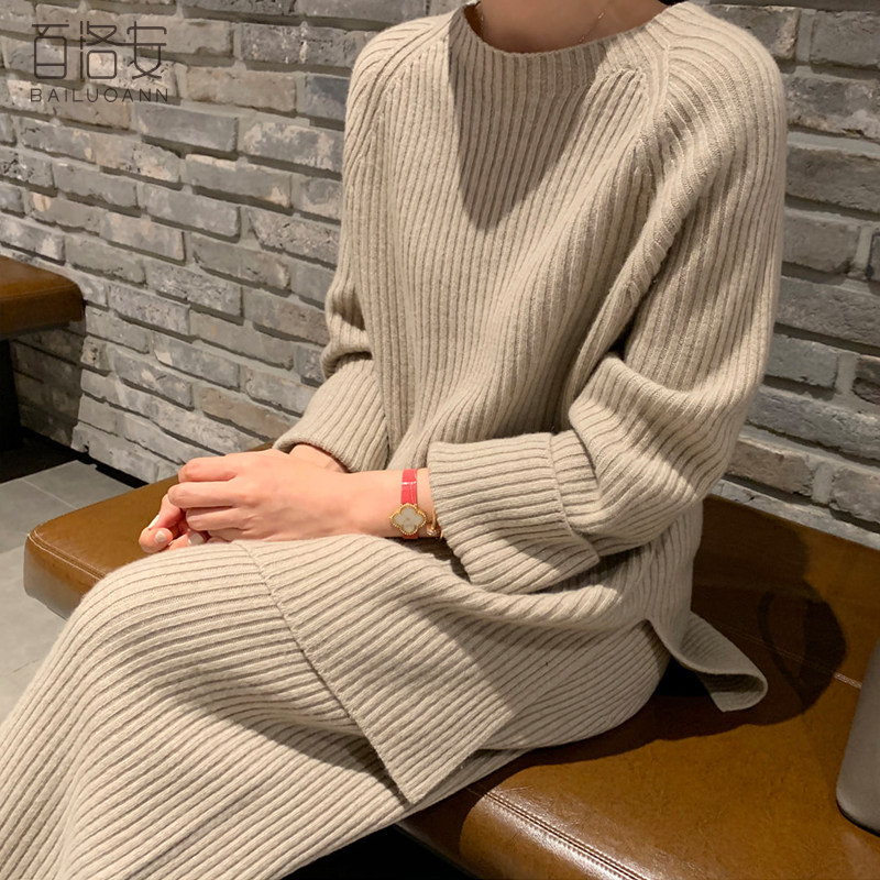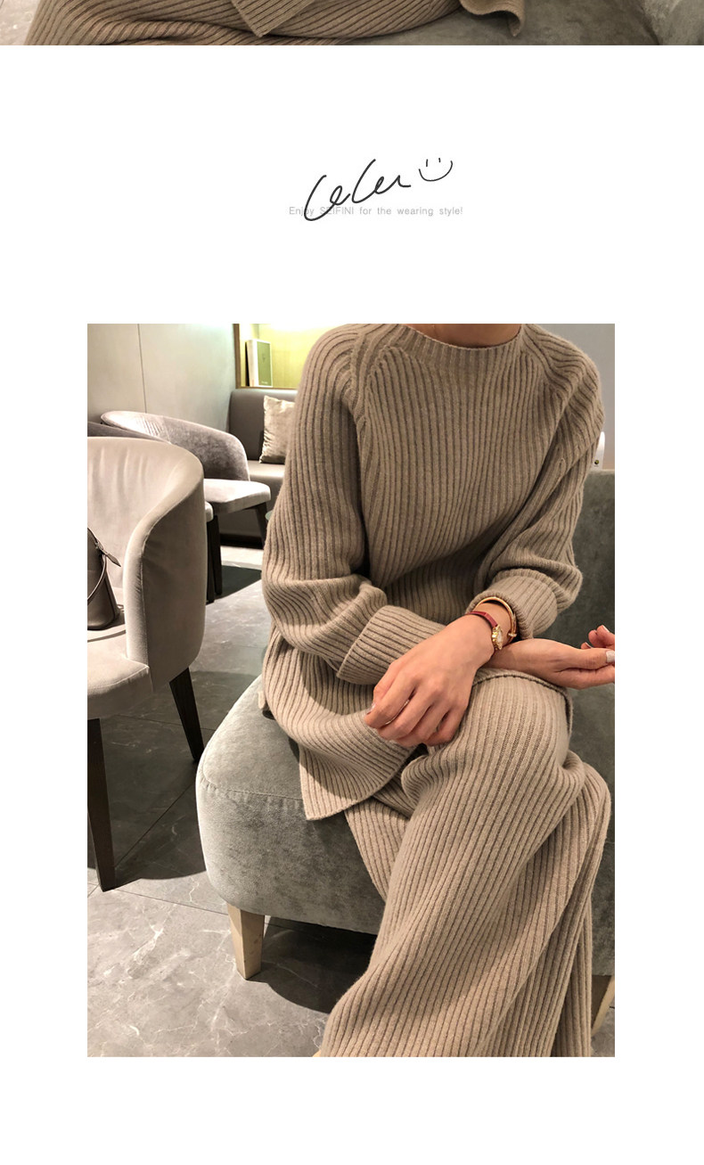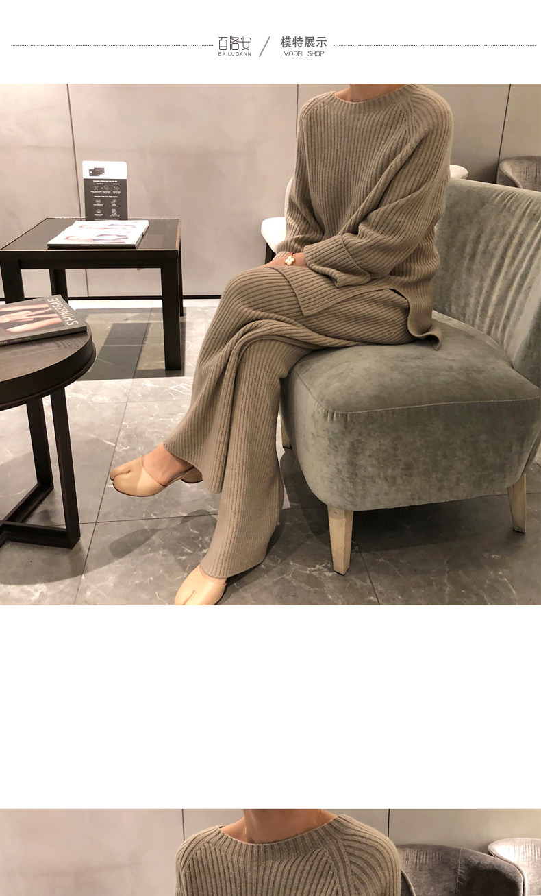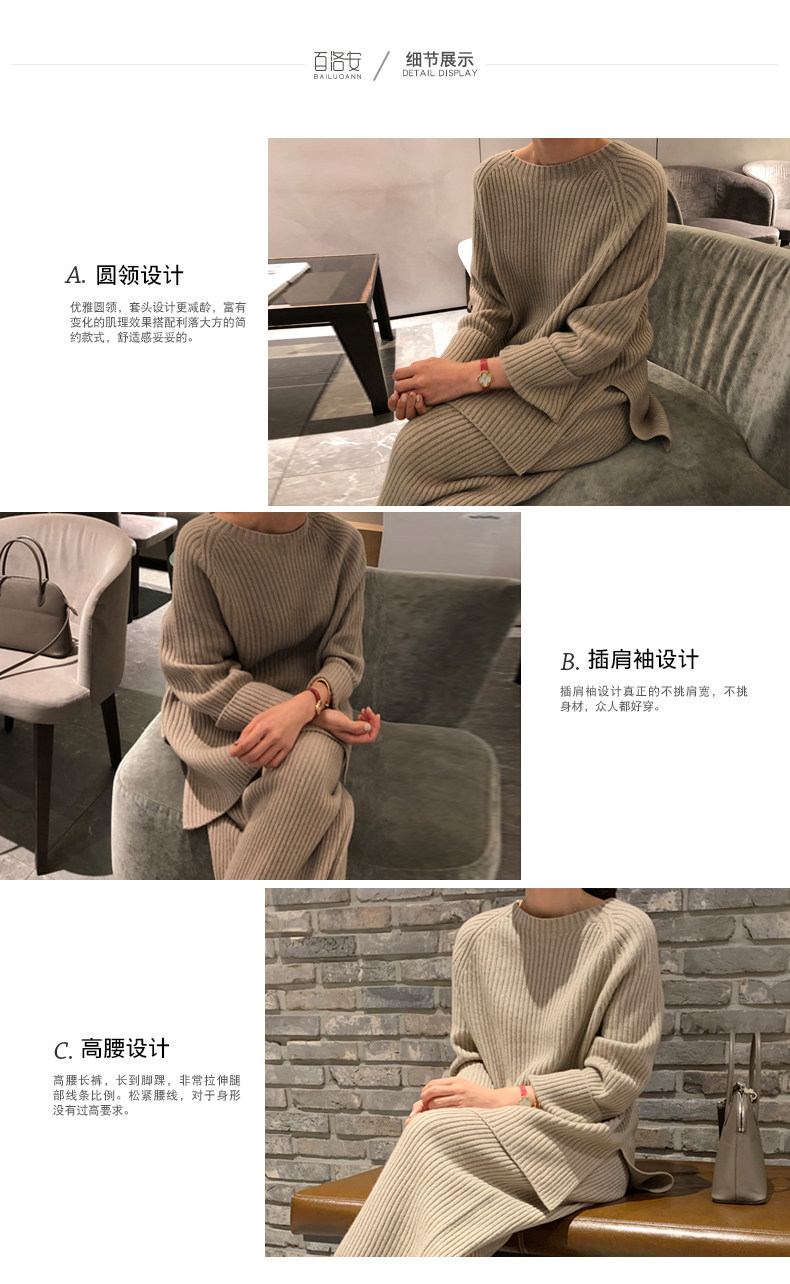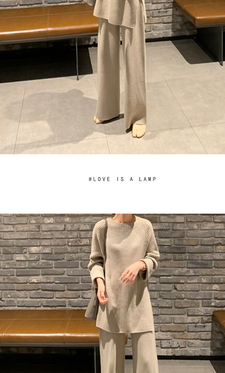 百洛安 Модный трикотажный комплект, осенние леггинсы, свитер, штаны, в корейском стиле