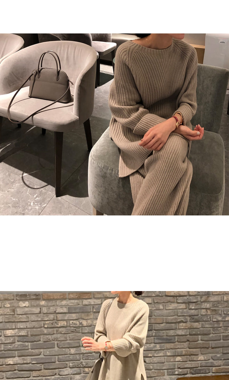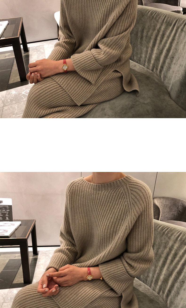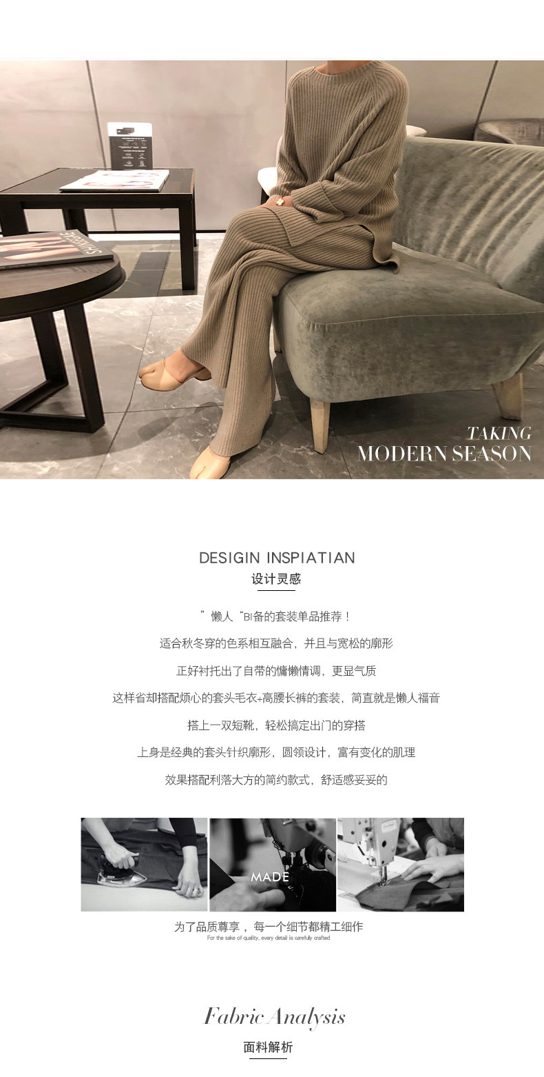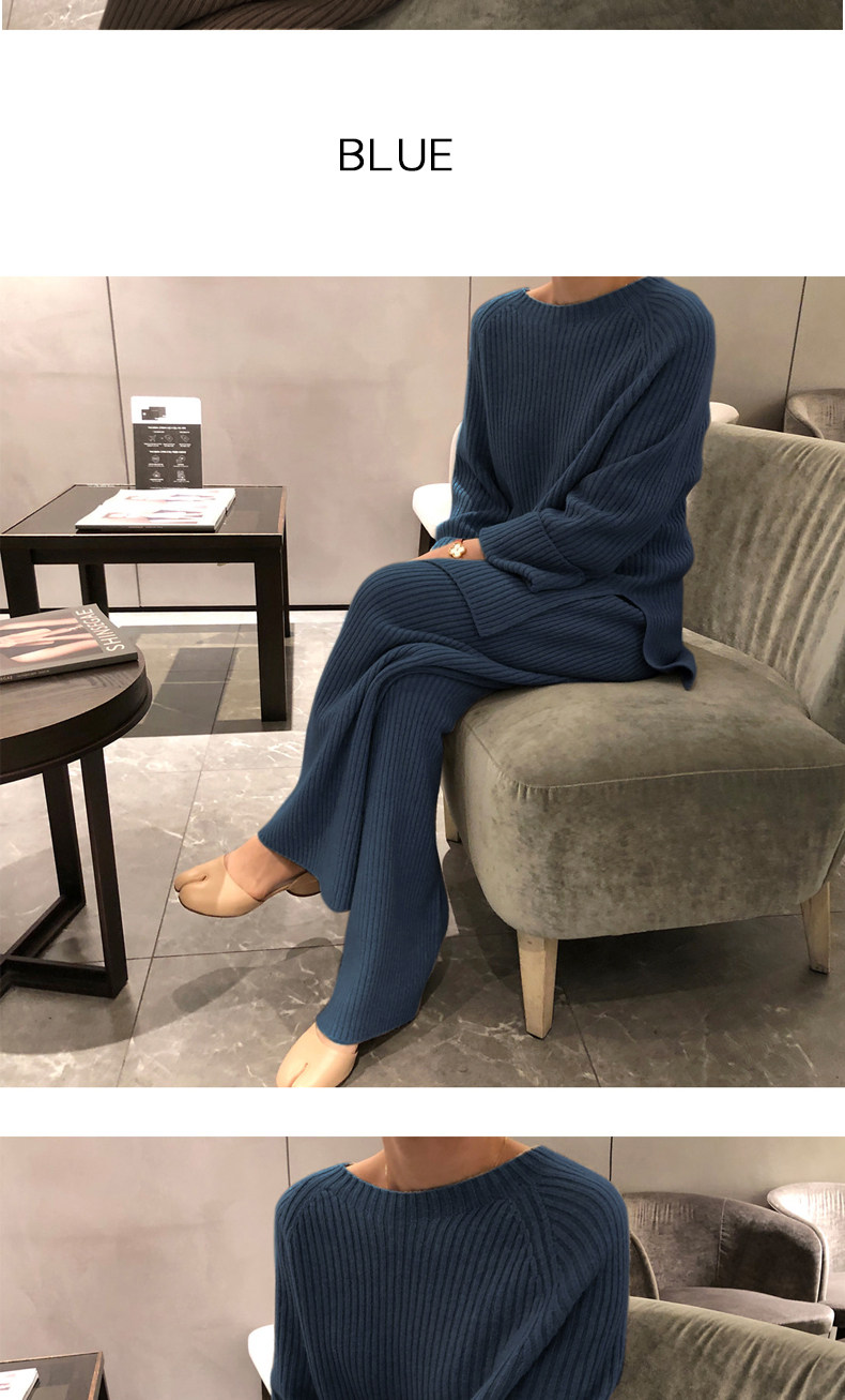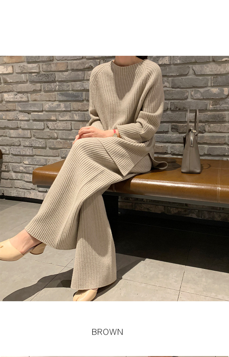 百洛安 Модный трикотажный комплект, осенние леггинсы, свитер, штаны, в корейском стиле