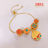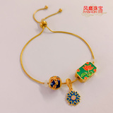 Браслет с одной бусиной, бусины, регулируемая цепочка, 18 карат, большой размер, 3D