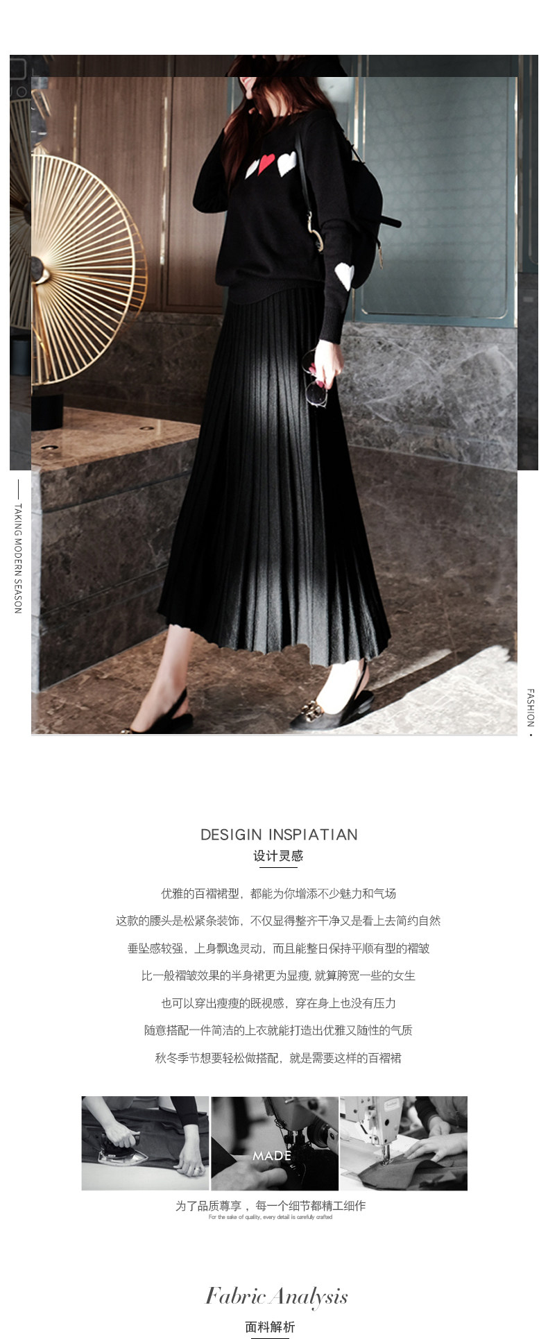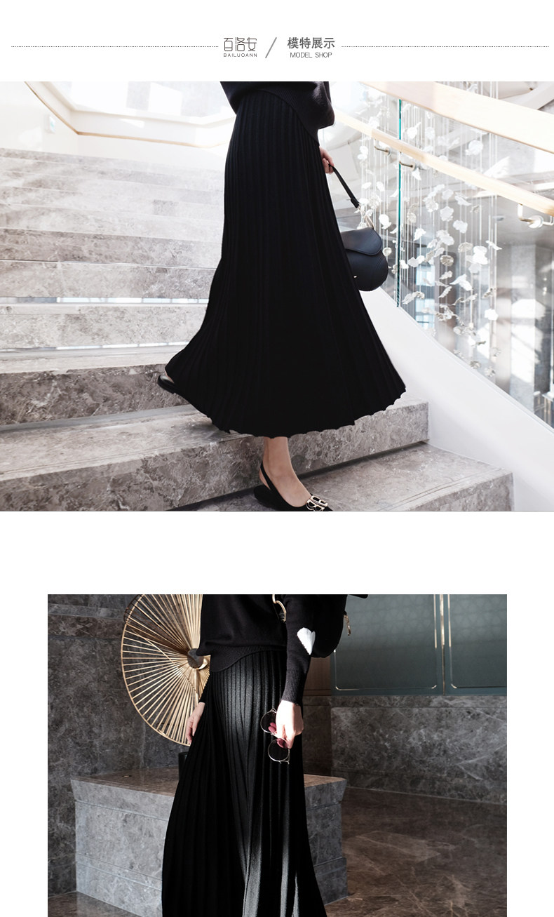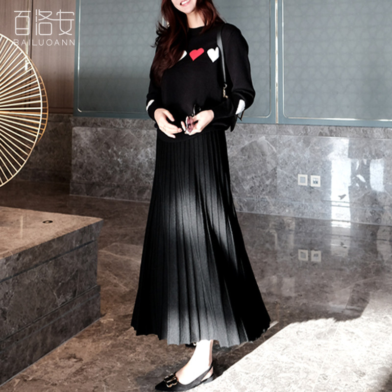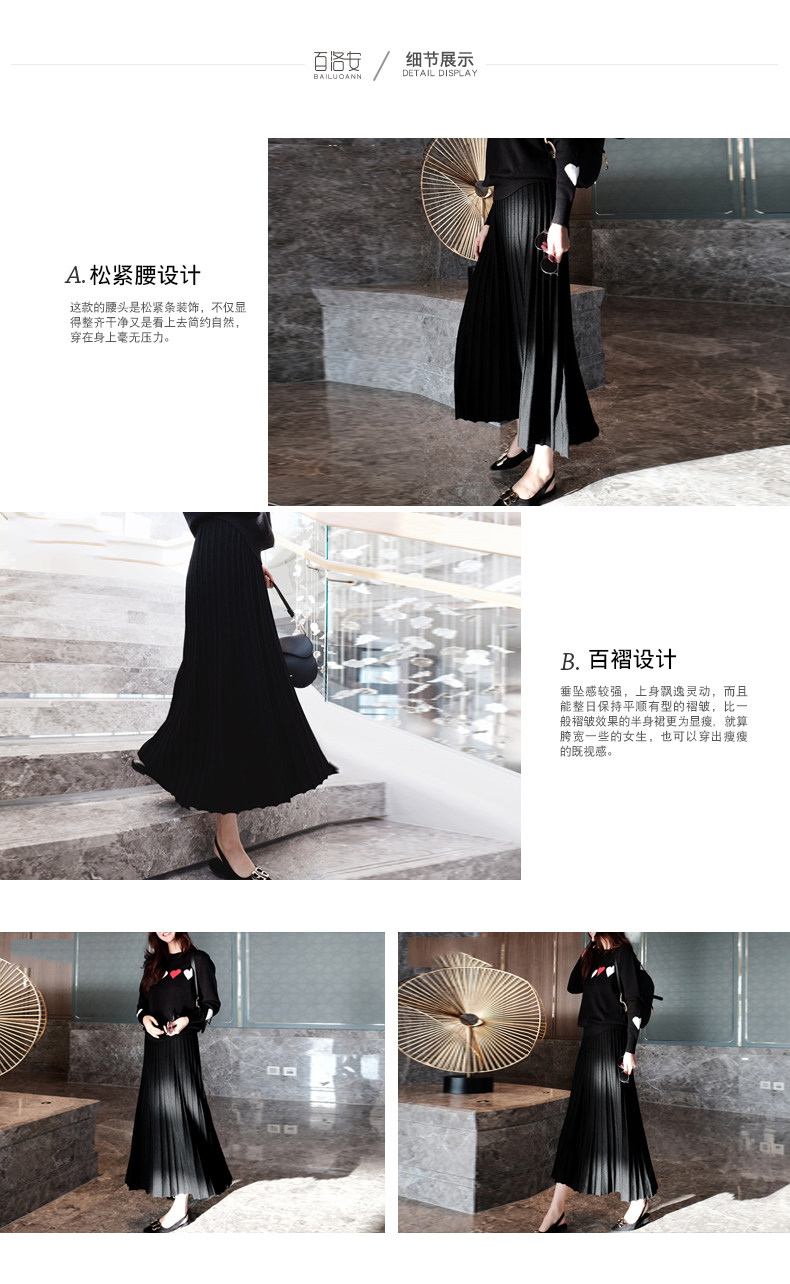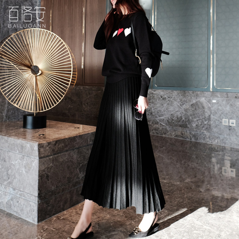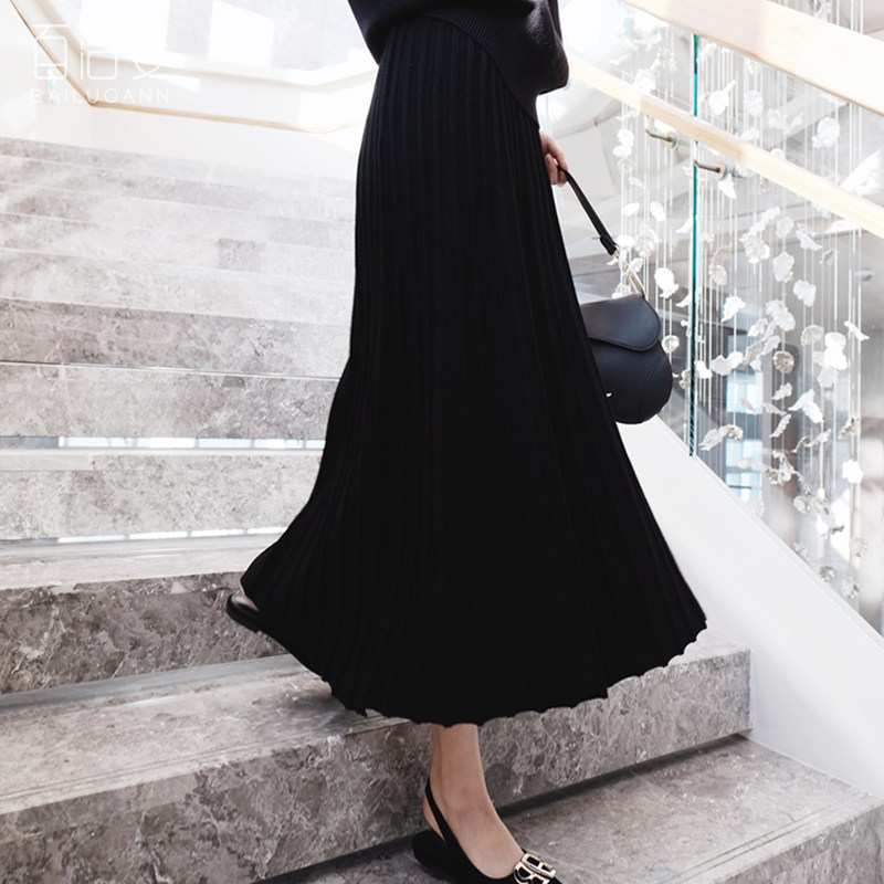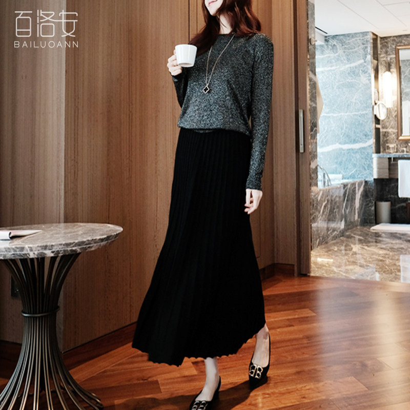 百洛安 Длинная осенняя приталенная юбка в складку, длина макси, плиссированная юбка, в корейском стиле, яркий броский стиль