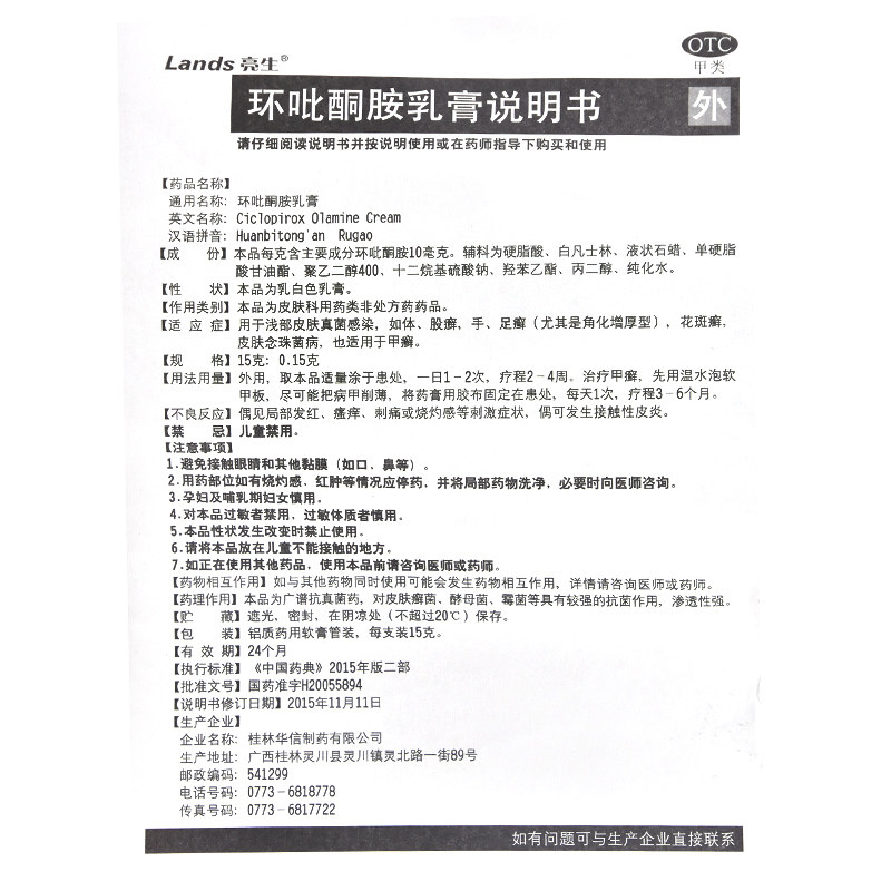 Lands/亮生 Циклор пироминовый крем 1,5%*15G*1 кусок/коробка ашкин кожа гриб
