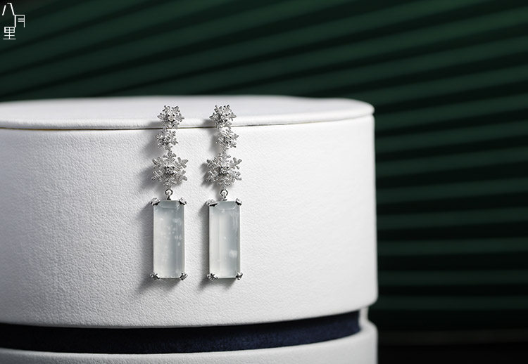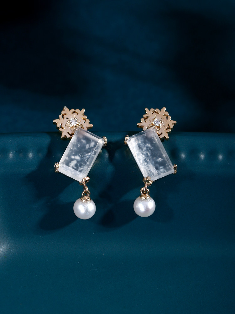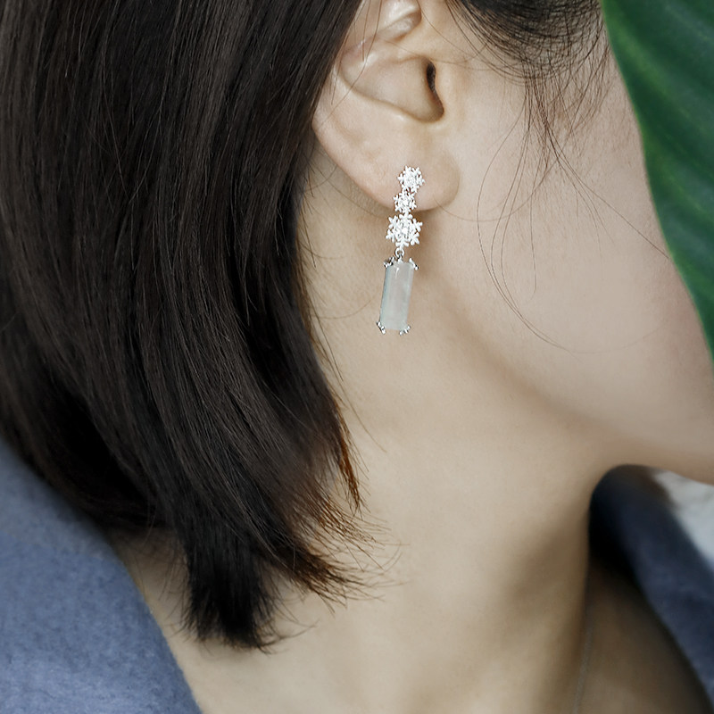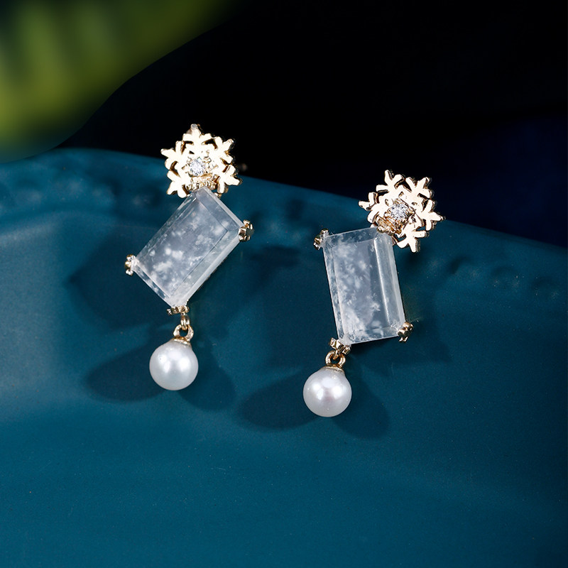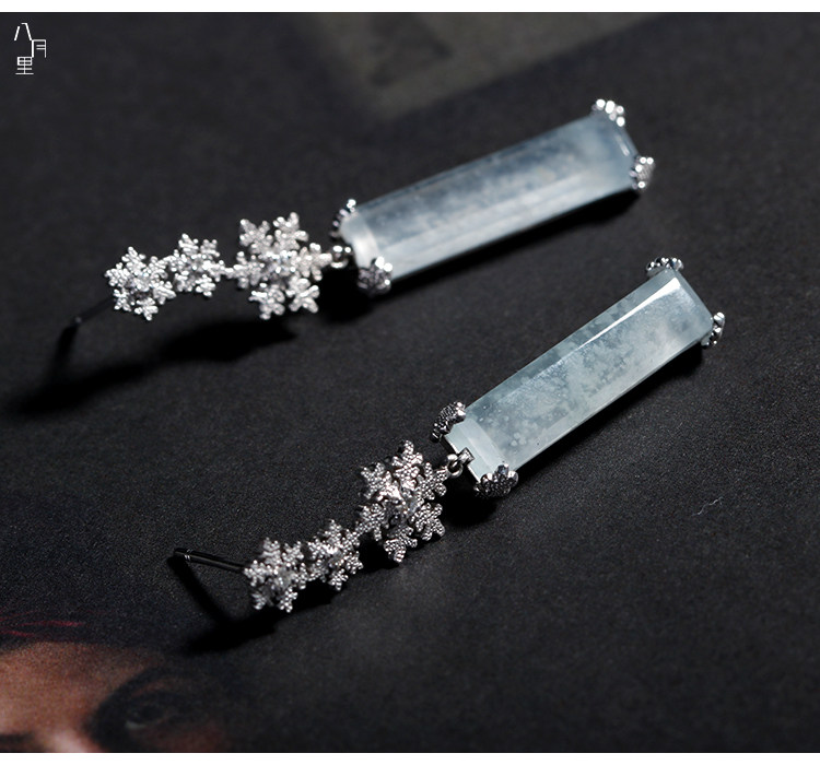 Натуральная изумрудная реплика, стеклянные бриллиантовые платиновые оригинальные серьги, со снежинками, белое золото 18 карат
