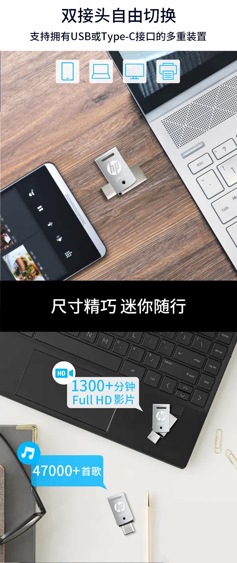 HP, мобильный USB-флеш-накопитель, вместительный и большой высокоскоростной ноутбук, 256G