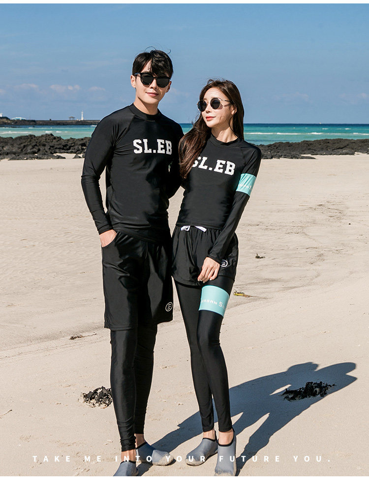 Комплект, лонгслив, раздельные штаны с молнией, купальник, для влюбленных, защита от солнца