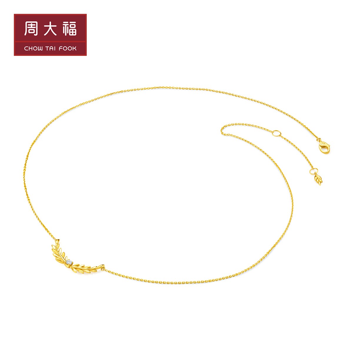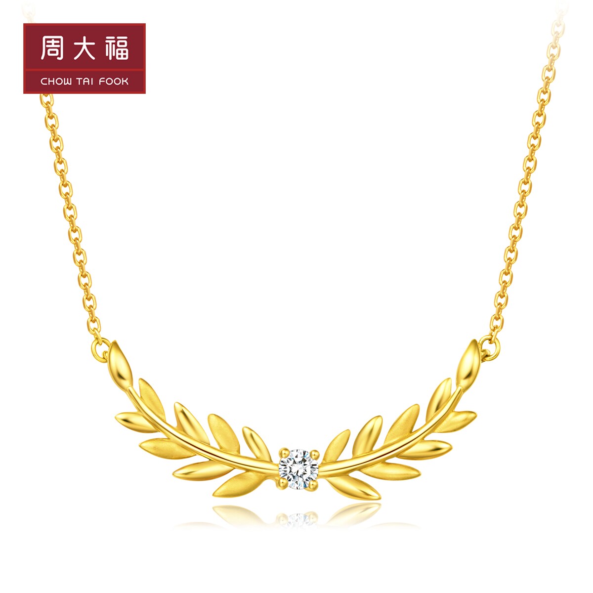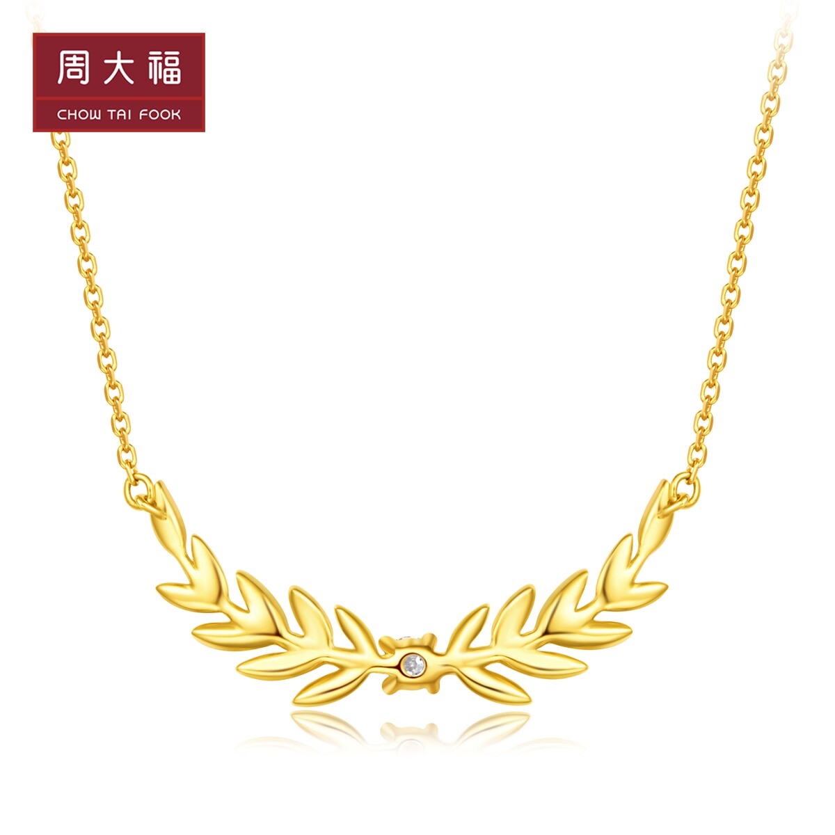 周大福 Серебряный папоротник с серебряным папоротником 18K Золотой колье колье с бриллиантами U178458 Выберите хорошие товары