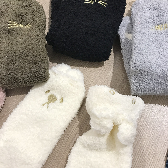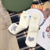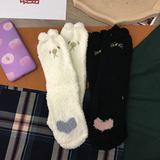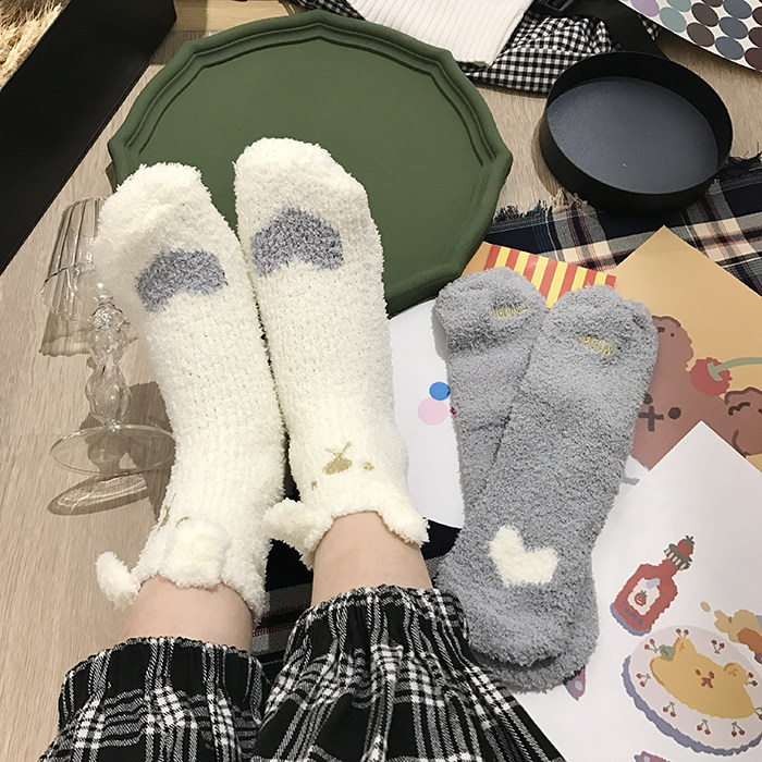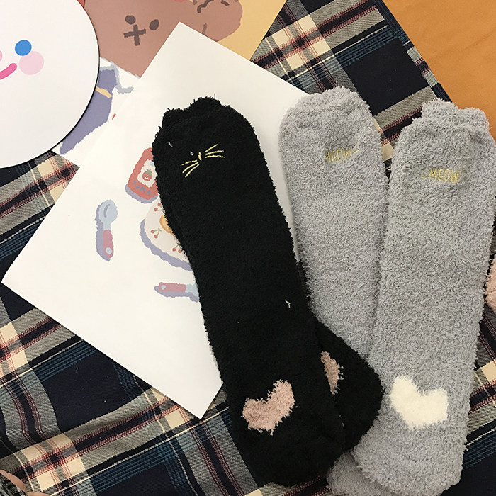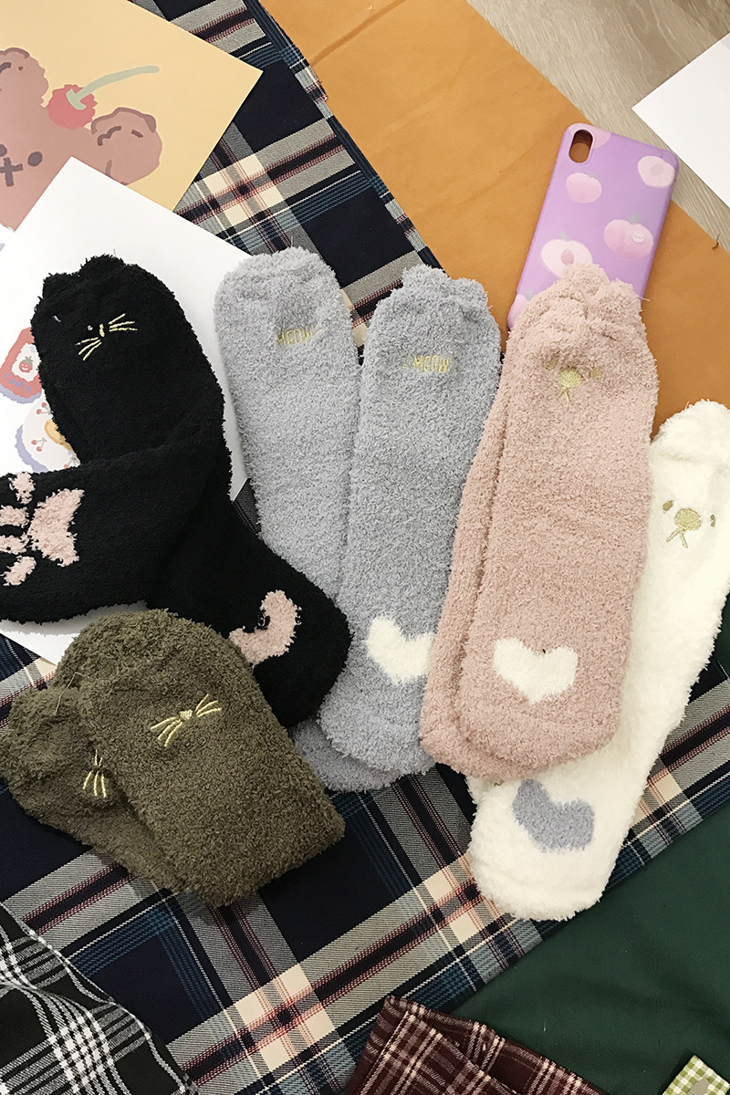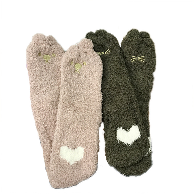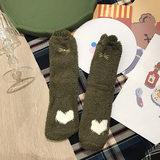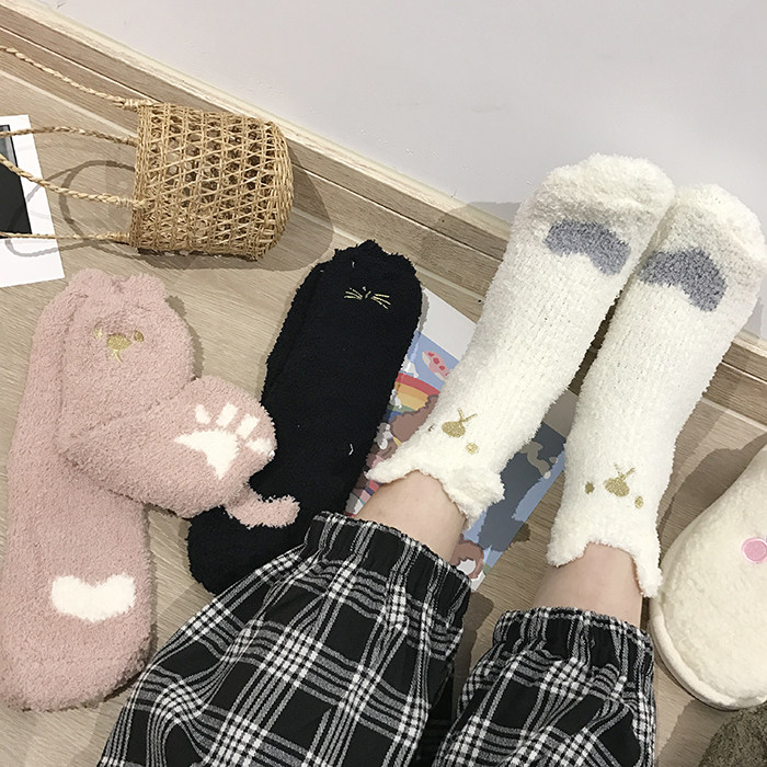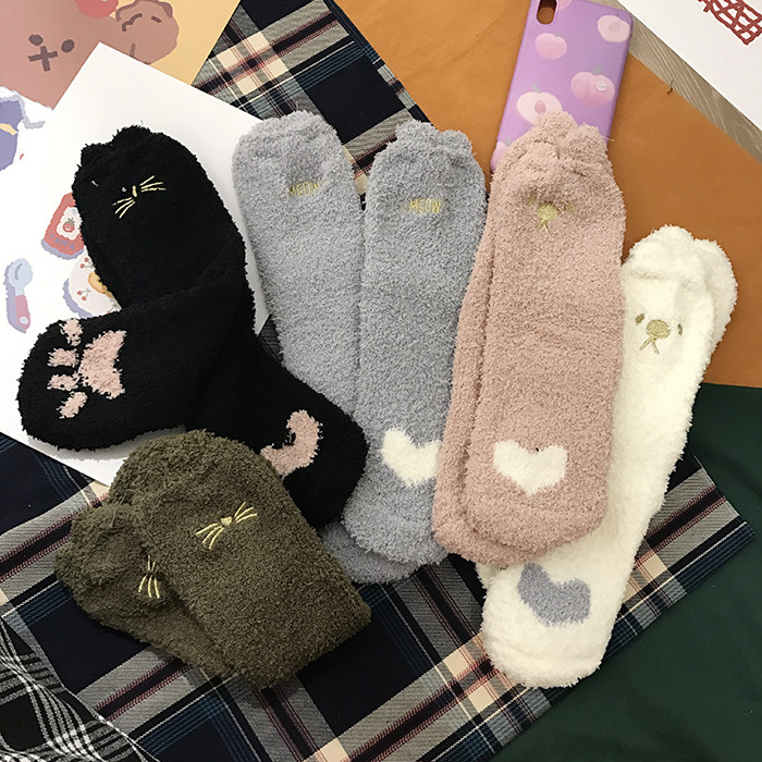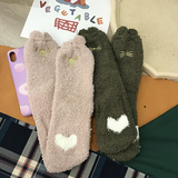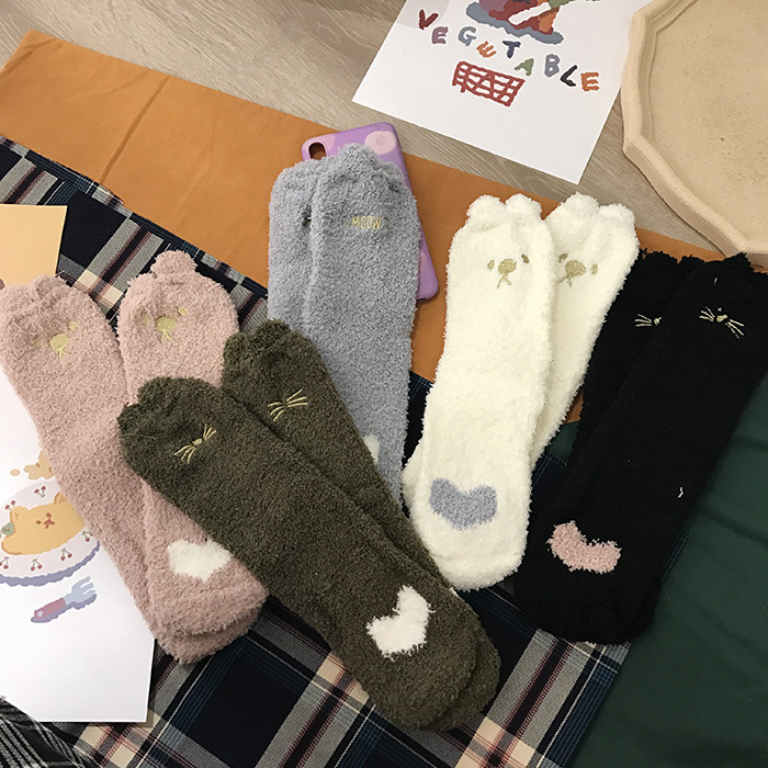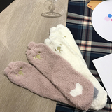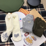 Милые демисезонные удерживающие тепло коралловые бархатные мультяшные гольфы, с вышивкой, увеличенная толщина, средней длины